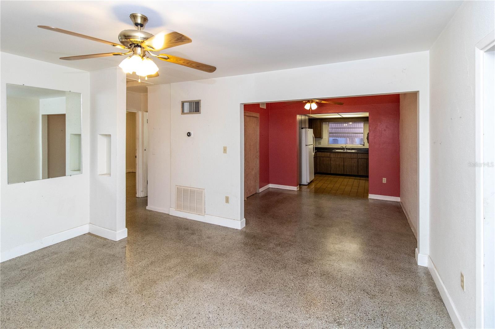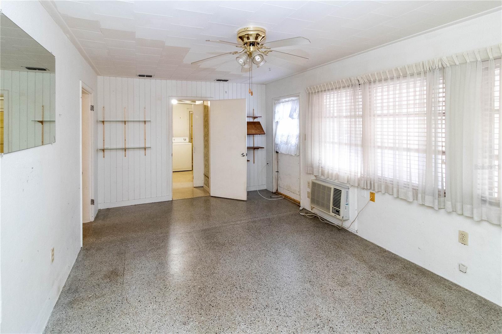 If you are in the market for a FIXER UPPER , you might want to consider this one. Living/Dining Room combination, 2 Bedrooms 1 Bath, Plus a Florida Room/Family Room that could be converted into a third bedroom. There is a one-half bath room steps away. This is a older home in town, needs roof and total remodeling down to the floor. The Air conditioning is newer. All Floors have Terrazzo - plus there is a Sun Room, inside laundry. There is a circular driveway for parking, and large private backyard . This is a older home, but has many possibilities, and within a mile or two from downtown. Elevation Certificate is available . Please do not ask for repairs, it is totally As Is. This will not pass a 4 point with the older roof . Totally As Is. House had 2 inches of water during the first storm.