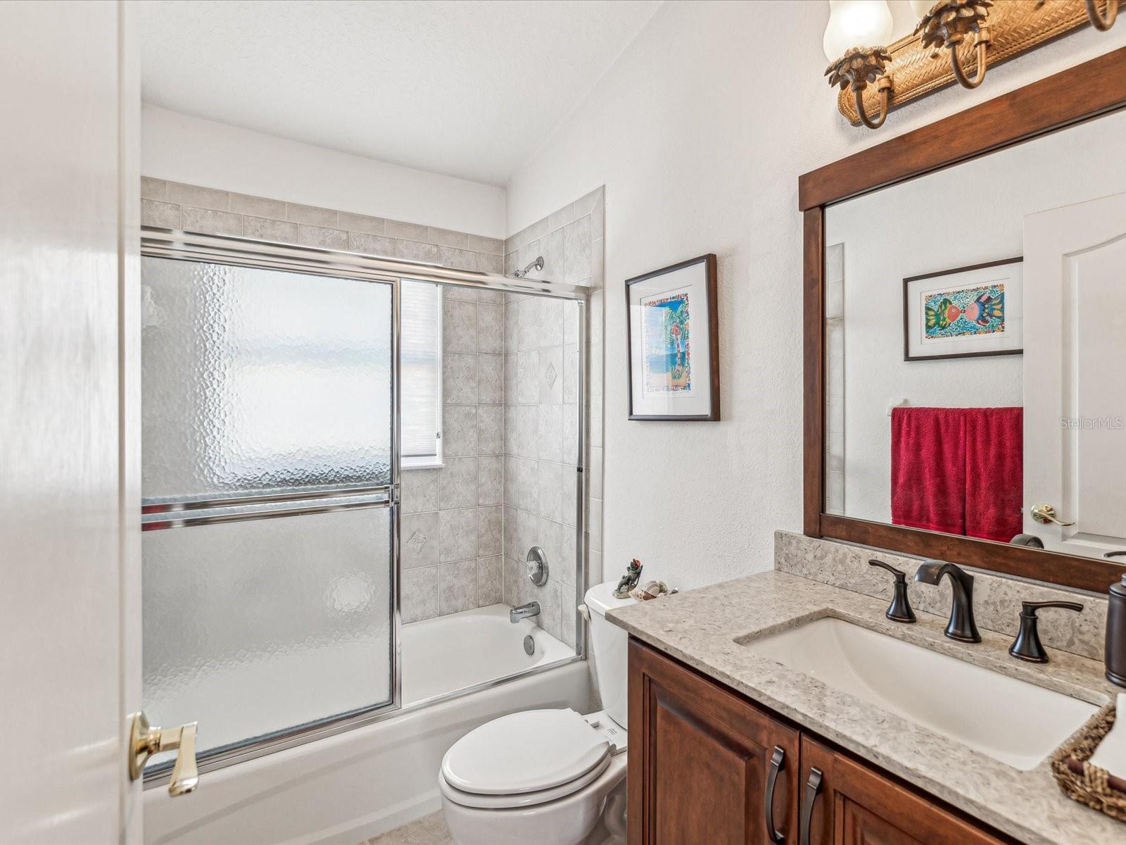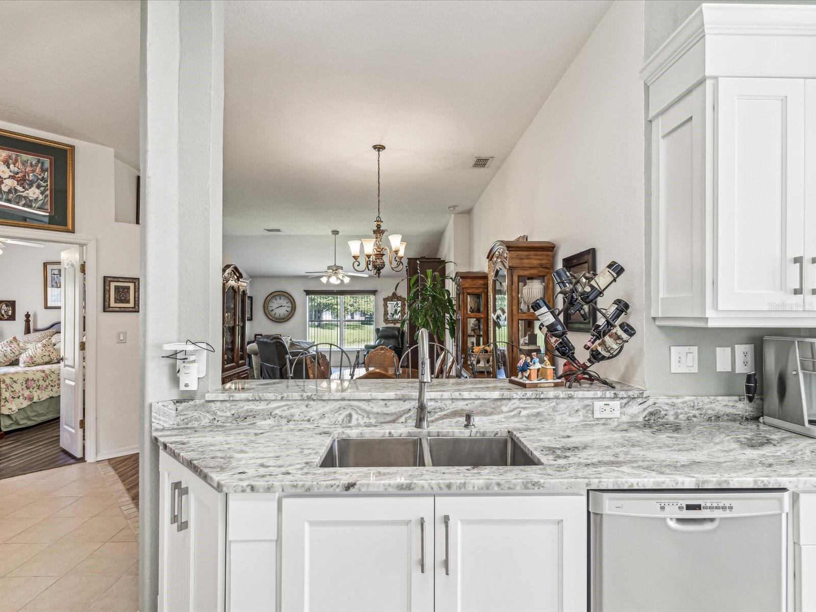 WANT A HOUSE WITH A BRAND NEW ROOF? SELLER WILL INSTALL PRIOR TO CLOSING SO HONEY, STOP THE CAR AS THIS WILL BE YOUR LAST STOP! Stunning 3-Bedroom Home in 55+ Active Community with Resort-Style Amenities! Welcome to retirement living at its finest! This drop-dead gorgeous 3-bedroom, 2-bath home with a 2-car garage is nestled in one of Pasco County's best-kept secrets. Located in a serene 55+ active community, you'll enjoy both luxury and convenience in this move-in-ready gem. Step inside and be wowed by the gourmet kitchen, remodeled in 2024, featuring custom cabinetry, stone countertops, and newer stainless steel appliances, including a double oven—perfect for the home chef. The open floor plan includes an inviting enclosed lanai, ideal for relaxing with no rear neighbors for added privacy. Situated off the kitchen is office space for work at home. The main areas boast elegant tile flooring, while the guest bedrooms feature warm wood laminate. The primary bedroom has beautiful, maintenance free tile and the ensuite boasts a custom double vanity, custom hamper cabinet and custom commode cabinet with a spacious walk in shower. Outside, the open front porch invites you to sit back and take in the beauty of this community, with its charming backdrop of large shade trees where deer roam and graze. Beyond your front door, this vibrant community offers a clubhouse brimming with amenities, including a heated pool, billiards, card rooms, arts and crafts, pickleball, and regular events like dances and planned trips for many social outings with new friends. For the golf enthusiasts, enjoy the convenience of the 9-hole public golf course. Plus, you're just minutes from Hudson Beach, the Suncoast Parkway, restaurants, and shopping. And the best part? This home is in an X zone for flood, offering peace of mind. Don't miss out on this opportunity to live the lifestyle you've been dreaming of!