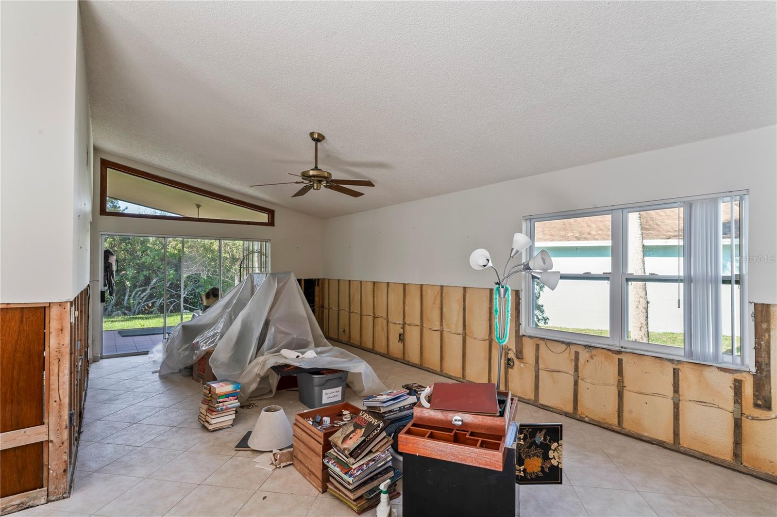 This home, located in Gulf Harbors Woodlands, was affected by flooding during Helene but has since been dried out and is ready for restoration. A fantastic chance to own an affordable property in this highly sought-after waterfront community! The home features an open floor plan with soaring cathedral ceilings and is set on a peaceful, private conservation lot at the end of a quiet cul-de-sac. Surrounded by lush tropical landscaping with no rear neighbors, you’ll enjoy serene views of the Jackson Creek preserve through large, sunlit windows. The spacious kitchen, equipped with a breakfast bar, flows seamlessly into the open living room and is brightened by glass sliders leading to the screened-in patio. The master suite includes walk-in closets, a private full bath, and double sliding glass doors that open to the large enclosed porch. Two generously sized guest bedrooms are filled with natural light and share a full guest bathroom. Residents of the Woodlands enjoy a wealth of amenities, including a heated pool, tennis courts, a clubhouse, and a boat ramp. The nearby Yacht Club offers dining, a lounge, and stunning Gulf sunset views, just steps from the recreation center. An exclusive private beach is also available to homeowners. Don't miss this incredible opportunity to restore and customize a home in this exceptional community! Cash only, Sold As-Is, Buyer Required to Carry Flood Insurance per FEMA