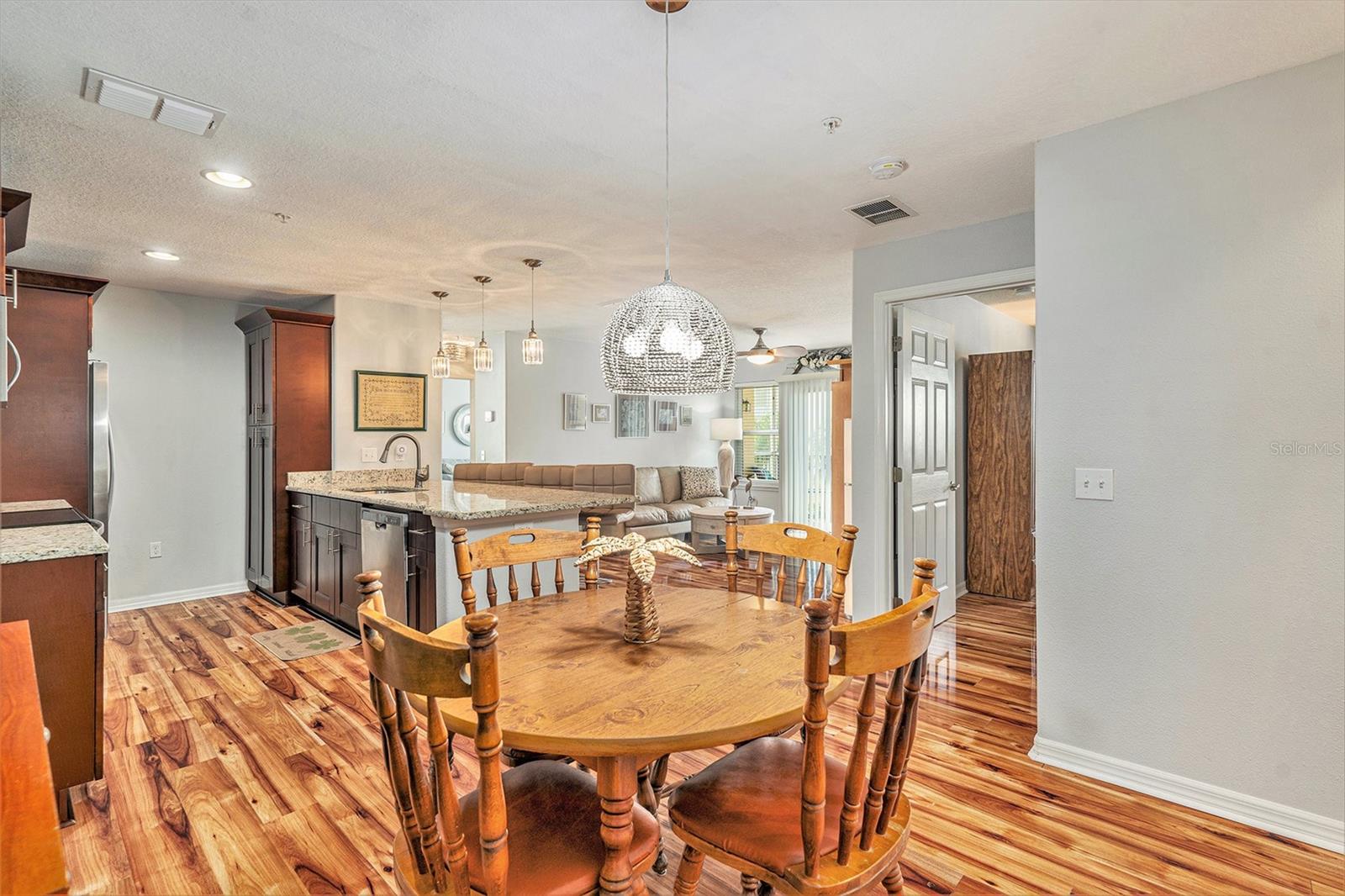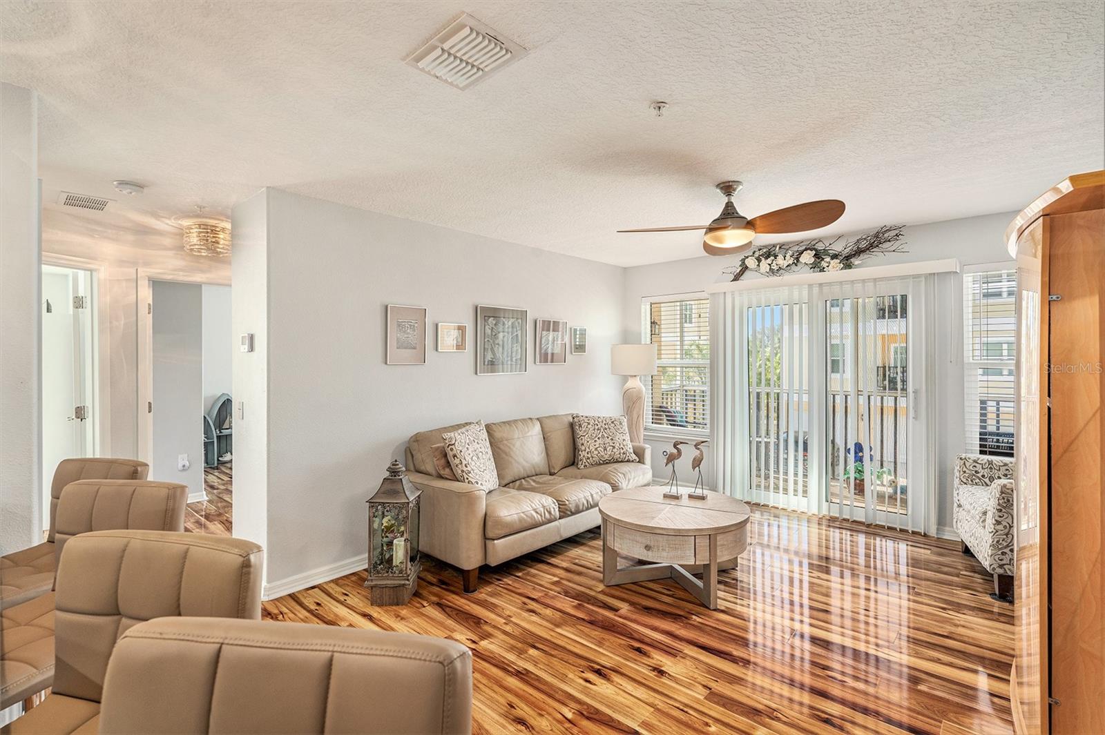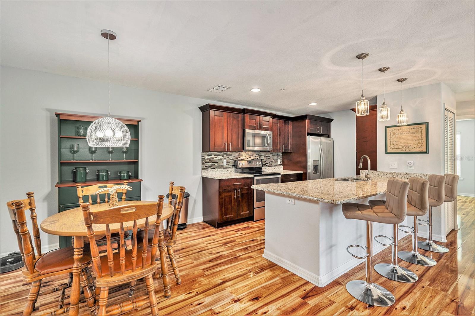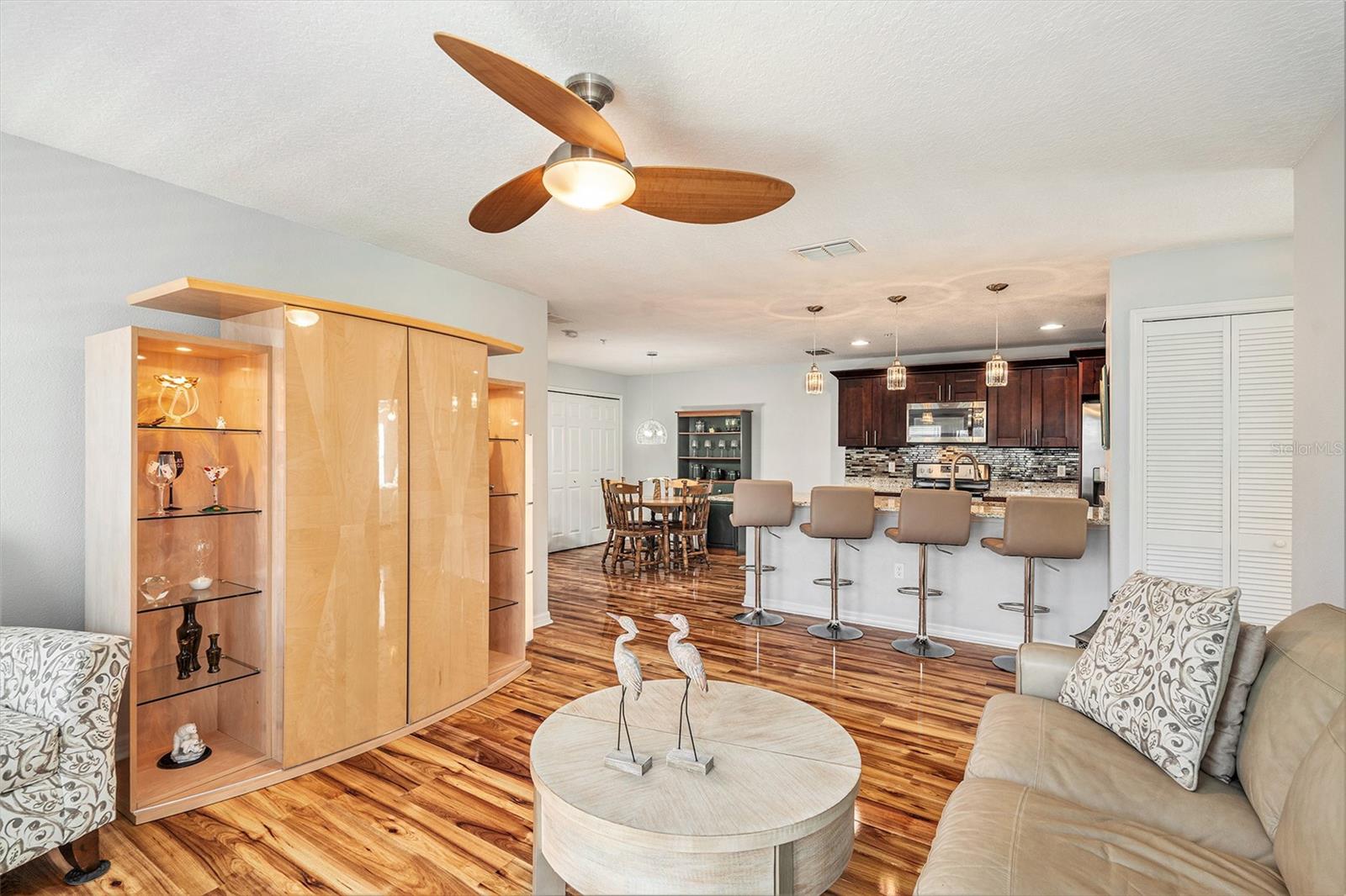This is a must see! Price reflects owner’s willingness to sell this newer condo with only three stories (garage and storage on first floor). Regency Palms is conveniently located close to downtown New Port Richey. Open floor plan with split was bedrooms. Master bedroom offers walk in closet and ensuite bathroom. Spacious living area has plenty of windows and sliding glass door leading to screened in balcony. Shining laminate flooring through-out offers easy care. Kitchen has beautiful espresso cabinets with granite countertops, pantry, glass tile backsplash, stainless steel appliances, large island that can accommodate four bar stools. Laundry in-unit includes front load washer/dryer, bar to hang clothes and shelf for supplies. Storage area next to front door houses large hot water tank and new water softener system. Take your elevator down to garage with auto opener and your storage area with separate A/C. The pool area has covered table area, grills, hot tub and bathroom. Two small pets are permitted and there is a fenced in dog park. Association fee covers your cable TV, internet, water/sewer, trash, escrow reserves fund, community insurance, and exterior building and ground maintenance, and has not been raised for 2025. Owners in Regency Palms have the option to join private Gulf Harbor Beach Club. Come and see this amazing Regency Palms condo today at this amazing low price.