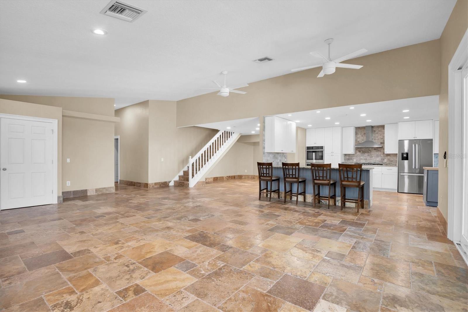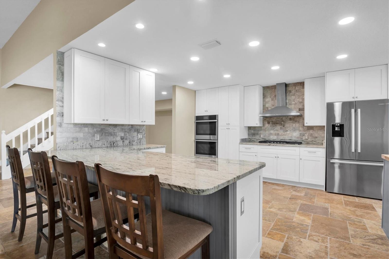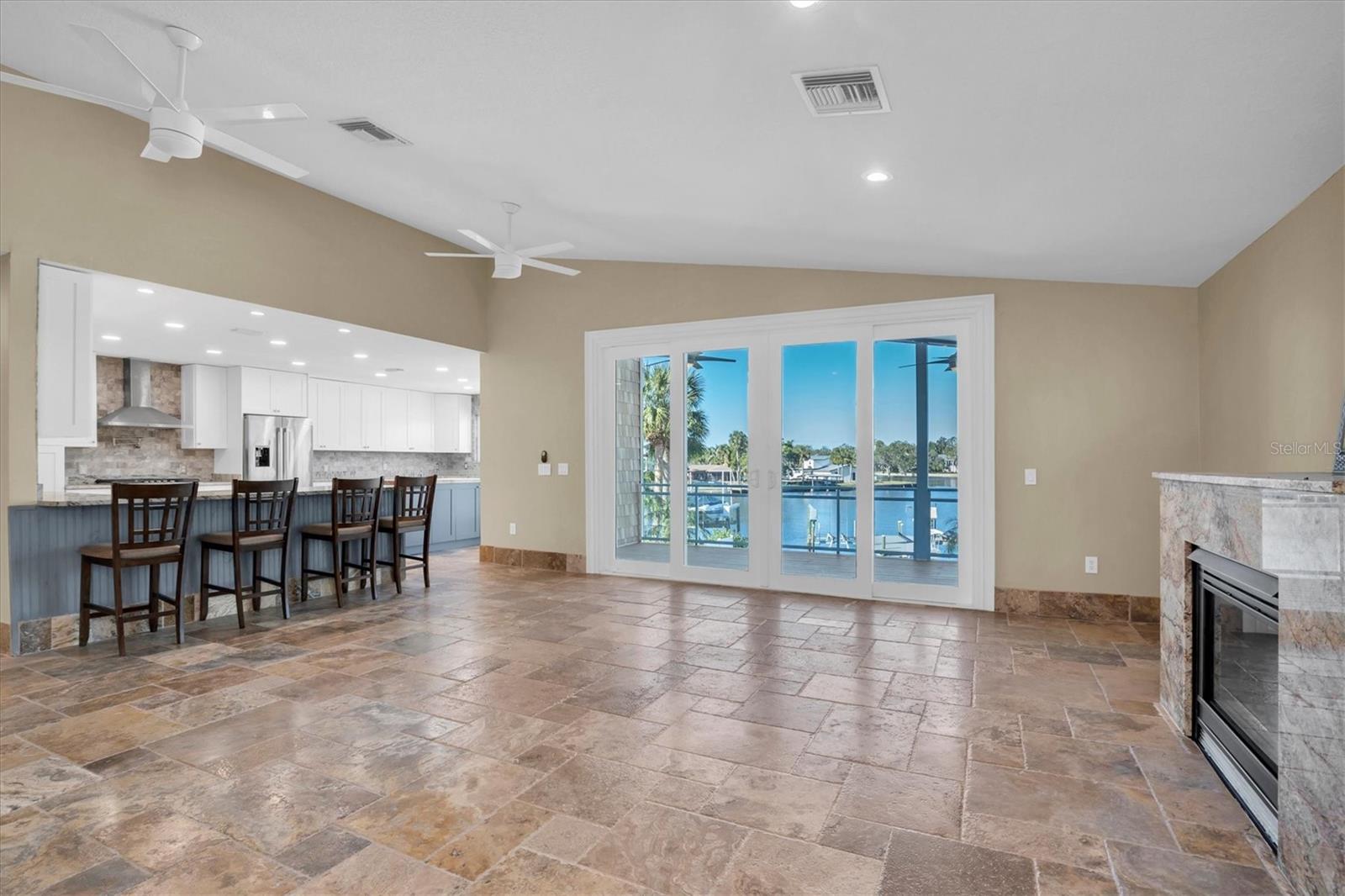 One or more photo(s) has been virtually staged. *****IMPROVED PRICE PLUS A NEW ROOF REPLACEMENT IN THE WORKS****** Fully renovated with tastefully done finishments to please all. 4 Bedroom 3 Bath home located on a wide river front canal located under just past the US HWY 19 bridge away from the Gulf of Mexico. New composite dock with two electric boat lifts. One lift rated for 16,000lbs and the second lift rated for 7000lb boat lift. Dock has water and electric. Open floor plan to include the oversize kitchen, dining room off the kitchen and Great Room with large balcony overlooking the inground pool and large water views. This home was carefully designed, luxury though out the entire spaces. Kitchen/Great Room is separated by a large breakfast bar. Kitchen accommodates a large center butcher block island, gas cooktop range with pot filler, double ovens with ball bearing slides, beverage refrigerator, built in microwave, shaker wood cabinets with lots of storage, high end granite countertops. All new appliances to include washer and dryer. All flooring is new travertine. Ground level offers plenty of parking, storage and work shop combination, newly installed vinyl fenced in yard. Bring you water toys, golf cart friendly community. City of New Port Richey offers great community living with shopping, restaurants, waterfront parks with boat tie ups, playgrounds, amphitheater, lots of free concerts and Friday evening movies for the family, fireworks...there is always something going on in the town. This luxury home certainly checks all the boxes, please see for yourself!