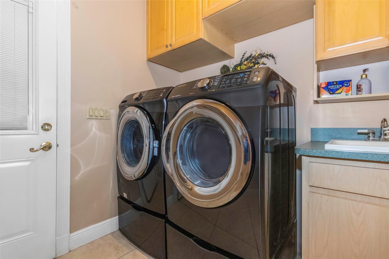 This amazing estate, almost 4,000 sq. ft. brick concrete home, with a huge 41x43ft. hanger, is set on a lush nearly 1.4 acre, which is overlooking a private pond, in a gated airpark community. (You do not have to be a pilot to live in there), it is filled with all types of professions. As you walk up the travertine walkway and pass through grand front entrance, the expansive foyer of the great room will take your breath away. It states "I am home". This great room, encompasses the living room and dining room, and is enhanced with the pool and pond view as a backdrop and is stunning. The absolutely huge, modern eat in kitchen (is next) which boasts Thomasville cabinets, granite counters, newer appliances and two huge stainless refrigerators. A large family room adjoins the kitchen, looks over the large pool and it has an open concept with cathedral ceilings, and has a fireplace and wet bar. Then there is the oversized primary bedroom, it's delightful, with large walk in closets and a fully complemented 5-pc. bath, with another great view of the pool through its sliders. The large screened pool, spa area has beautiful pavers with stone enhancements and also an outdoor kitchen. All full size baths have Jacuzzi tubs, granite counters and separate showers. There is an office, and possible 5th bedroom (currently set up as an in-law suite with separate kitchen), large laundry room, tubular skylights and a 3 car garage. There are newer dual A/C units, and a newer whole house water filtration system, tankless water heaters, built in vacuum and a high wind speed roof that lowers insurance costs. If this is not enough, the back yard it fenced, there are several decks, power, and fountain in the pond. The yard also has mature landscaping as well, the large hanger with extra tall hurricane rated doors accommodates most aircraft and huge motor homes. The hanger has a workshop and large storage closet as well. This property is a rare find, in a great fun neighborhood.
