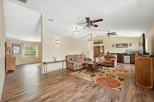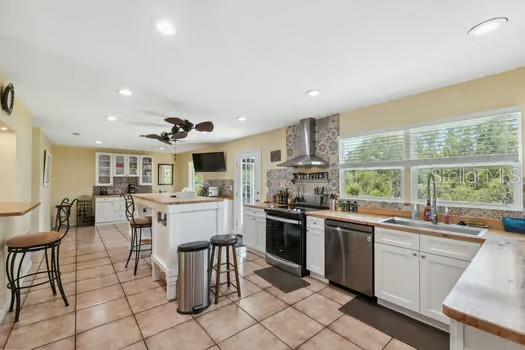 Looking for a Unique property or an investment! Look no further this property has plenty of opportunities, like a 3-4 Unit Air BnB, A Large family rental, 6 person or less care facility space, plus plenty of room for you or your manager to stay. This Property can be a private family retreat with an in-law suite or an apartment rental. Use your imagination with all the possibilities this property has to offer. All this sitting on an 1 acre with no rear neighbors. As you enter through the double gates that lead you into the courtyard area, and a salt water pool and hot tub. Continue straight ahead to the new porch and stair case that leads you to the main house. Enjoy the porch to sit and over look your court yard and pool, enter the sliding doors which can bring your outdoor and indoor space together to a great area for sitting and relaxing. This starts the main part of the home that was built in 1977, it has a large kitchen, Dining room, Living room, 3 Bedrooms, 2 full baths, a sunroom or a Florida room. As you are looking out at the court yard to the right is a great room, that is light and bright with high ceilings, this area has a wet bar, full bathroom with access from the pool area, This living space has a wood burning fire place, this area would be great for family gatherings, holiday parties, a game room, a home theater, Gym, Library, or add more bedrooms. Just use your creativity for this space. This was built in 2007/2008. The opposite side of the this property is another Enormous space with a separate entrance that leads to an unbelievable primary suite, in -law suite or use as a Rental income. This space built in 2007/2008 and is about 1900 sq ft, it has a large living room, kitchenette, a large bedroom, a huge bathroom with dual vanity, separate toiletry room, large walk in shower with multiple shower heads, a new hot (WORKS BUT NEEDS THE STAIRS REBUILT AROUND IT) owners replaced old hot tub. This areas has dual room see thru gas fireplace, which makes a nice area to cozy by the fire and read a book. This unit has a huge walk in closet to hold all your belongings. This space also has its own private 30ft balcony. A great place to hang a hammock and relax. Below this area is a SAFE room built of concrete, steel door and an area that has a sink and maybe make into a shower room/half bath. Just when you think what else could this property offer but a 5 car garage for that person looking for a work shop, or to store your cars and all your toys, their is plenty of room in this area. The current owners have done so much already, from fresh paint inside and out, new flooring through out, all new country style kitchen with new cabinets, butcher block counter tops, all new fixtures, appliances and large island, bathrooms have been updated, some windows have been replace with double Payne in the original portion of the home. New ceiling fans and light fixtures, Roof is 2008, 3 A/C units 3 zones 2008, Well replaced 2016, 2 water heaters 1 on demand and 1 regular, 2 septic's 1 on each side of the home, 1 redone 2008, and 1 redone 2021. The property has no HOA, No flood zone, and is zoned AR, so you can bring your animals. You feel like you are miles away from everything but you are close to Suncoast Pkwy, Starkey Park and Bike trail. Close to Tampa Airport, Orlando theme Parks, Beaches, Restaurants, stores and so much more.