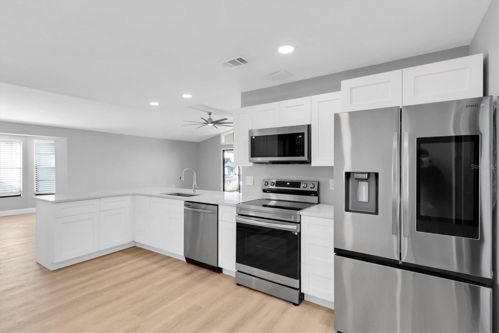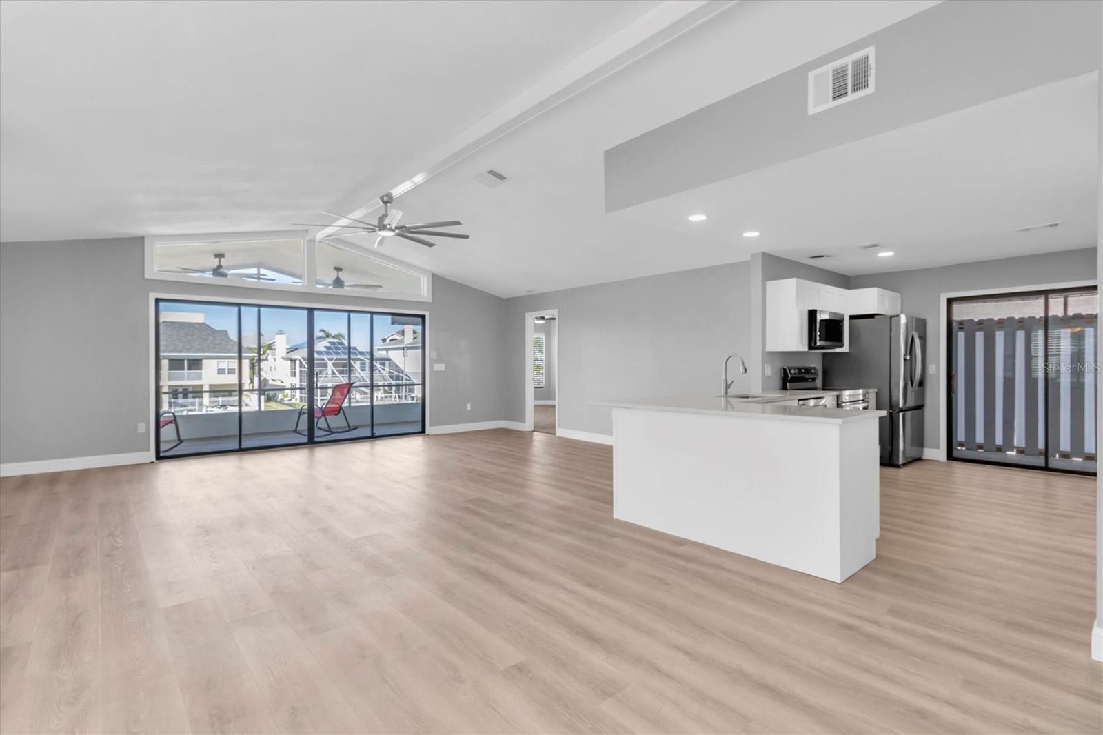 Welcome home to this STUNNING waterfront property! As soon as you step inside, you will fall in love with the open floorplan and vaulted ceilings. The modern kitchen boasts white cabinetry, stainless steel appliances, and a breakfast bar that opens to the family room. There you will find double sliding doors that open to the large screened-in deck; the perfect place for enjoying your waterfront view! The primary suite is a relaxing oasis with a private full bathroom and entrance to the deck as well. With a total of 4 bedrooms and 3 full bathrooms, there is plenty of space for your family or hosting guests. This home is located within a short boat ride to the open Gulf. The property is elevated and did not experience any flooding in the recent storms. Your waterfront dreams begin here! Total Square Footage of 3,124 includes 1,307 Square Footage of Partially Unfinished Air Conditioned Space on the Lower Level. Home size, room sizes, and garage size are measured estimates. Buyer and Buyer's Agent should verify exact room sizes and exact square footage of the entire home.