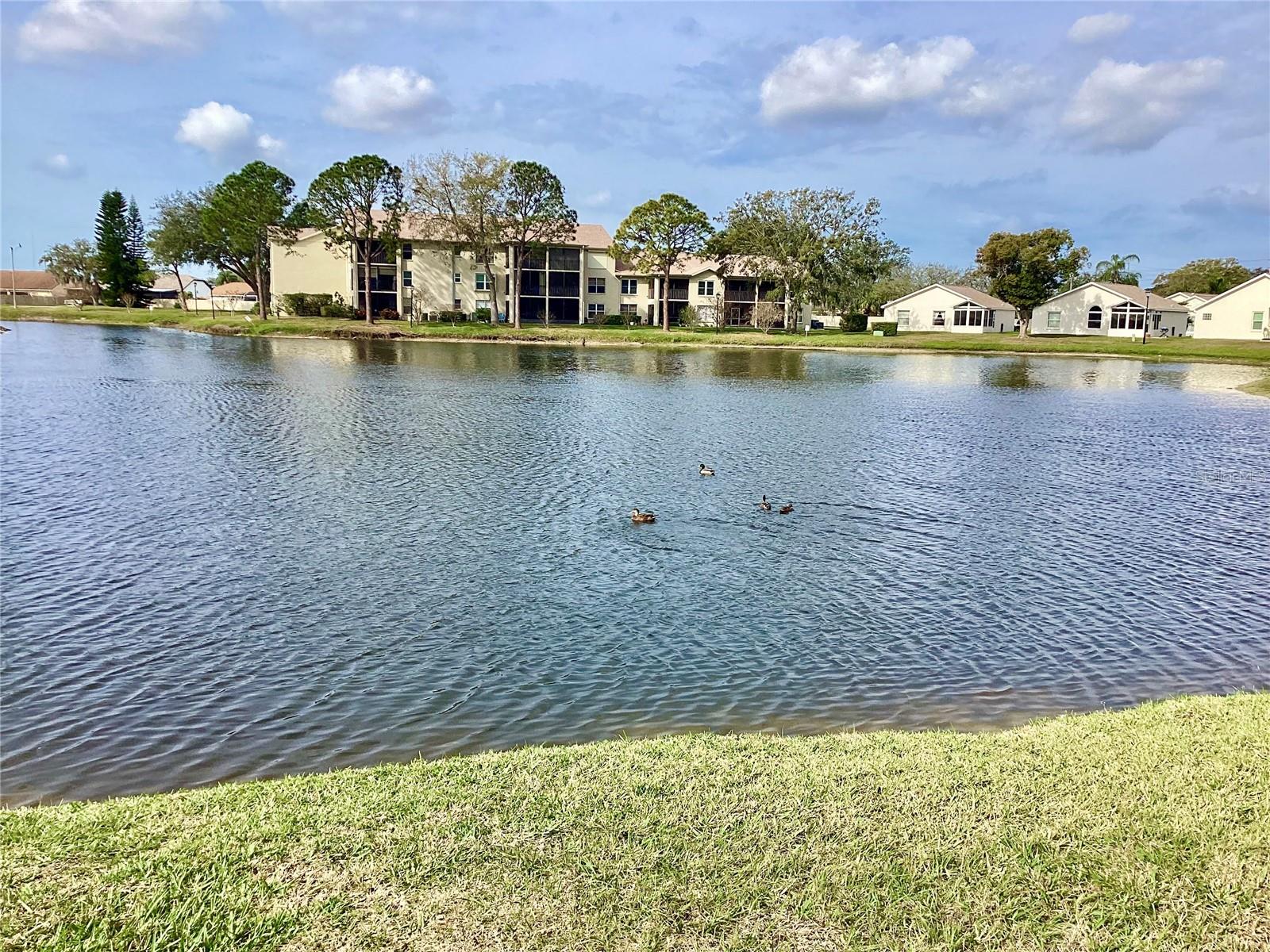 Turn key CONDO. Fully furnished! PRICE REDUCED! THIS IS IT! Just bring your toothbrush, and your clothes, and then settle right in! This first floor condo has been meticulously maintained. 1,233 square feet living space. A TRUE 3 bedroom with 2 full baths condo. Split plan. Master bedroom has en suite bath and huge walk-in closet. Pond view. This is a rare find! No age restrictions. Spacious, beautifully appointed and located in a gated area of the sought after Millpond Estates of New Port Richey/Trinity area, very near the junction of Pasco, Pinellas, and Hillsborough counties. This home boasts tile flooring throughout. The kitchen has ample cabinet space, a breakfast bar, a pantry, and is open to the dining area. Completely, and tastefully FURNISHED. This premium corner unit has room for a full time family, or winter residents who want guest space. Imagine relaxing mornings or evenings in your screened-in, breezy Florida room that overlooks the pond. All the comforts of a single family home without the headache of exterior maintenance. Newer a/c system, newer water heater, and newer Whirlpool washer and dryer in the spacious laundry closet. A private, fishable pond is right outside your back door. Enjoy the fitness facilities and TWO community pools at your disposal. Schools and hospitals nearby. 20 minutes to reach Tampa International Airport. Minutes away from shopping, dining, award winning beaches, and entertainment/amusement parks. One convenient HOA fee covers the building’s INSURANCE, all lawn maintenance, your 2 pools and fitness center, your trash removal, pest control, cable AND MORE. It’s READY for you!