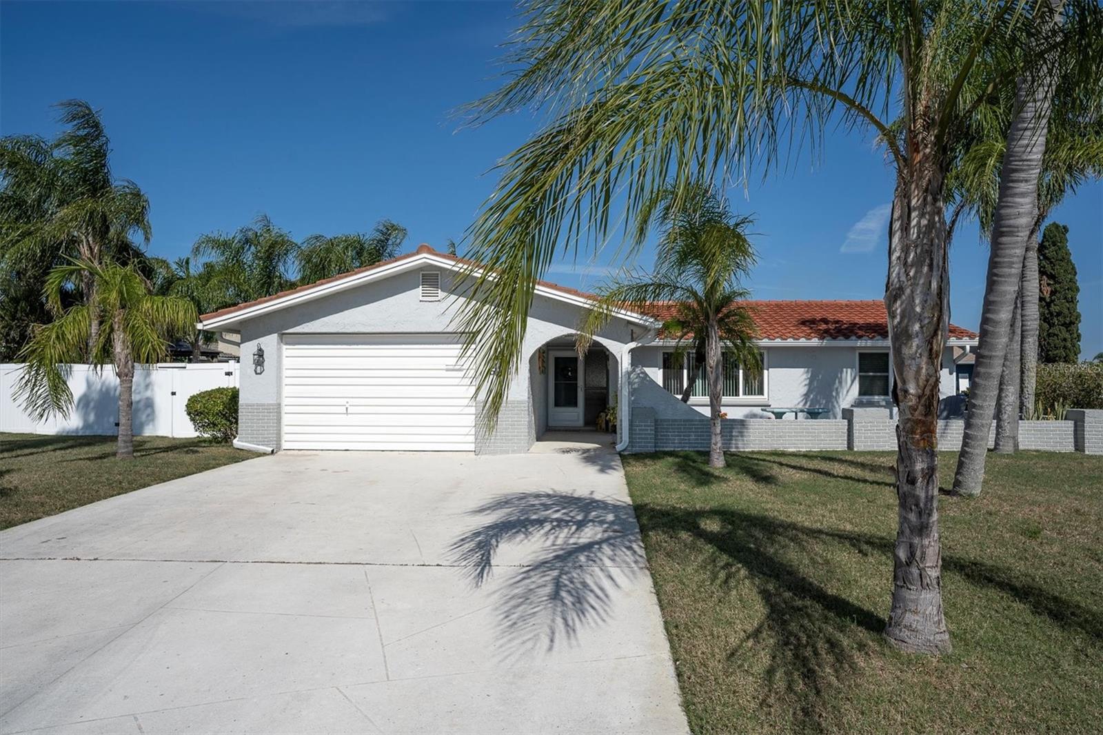 New Listing Price! Move In Ready! Beautifully appointed 3BR, 2BA, oversized 1 car garage, spacious, corner lot located in Gulf Harbors. Welcoming attractive, front patio area leads to the front entrance with several, picturesque palm trees. Kitchen is updated and designed with stylish, soft close cabinets, stainless appliances, expansive 12 ft breakfast bar, and eat in area with sliding glass door to the inviting yard. Kitchen opens to the gathering room for all your entertaining functions. Primary bedroom features walk in closet and ensuite, updated bath. 2 guest bedrooms and guest bath complete this open floorplan. Spacious, fenced yard with entertaining bar, will entice your guests. Some newer updates include epoxy floor in garage, panel doors, Reece windows, gutters, vinyl fence. Residents of Gulf Harbors also have the opportunity to join the Gulf Harbors Private Beach (Additional Fee) to enhance your Florida living! Gulf Harbors is conveniently located to a plethora of shoppes, restaurants, medical facilities, and major roadways to neighboring counties.