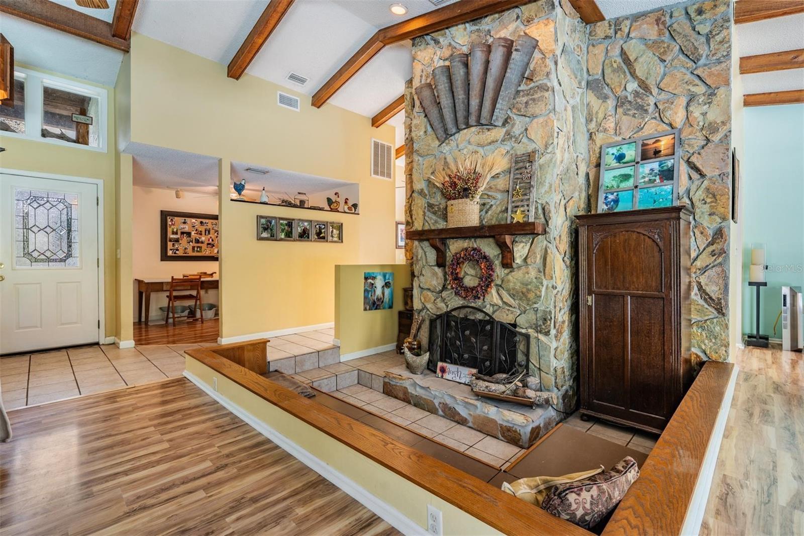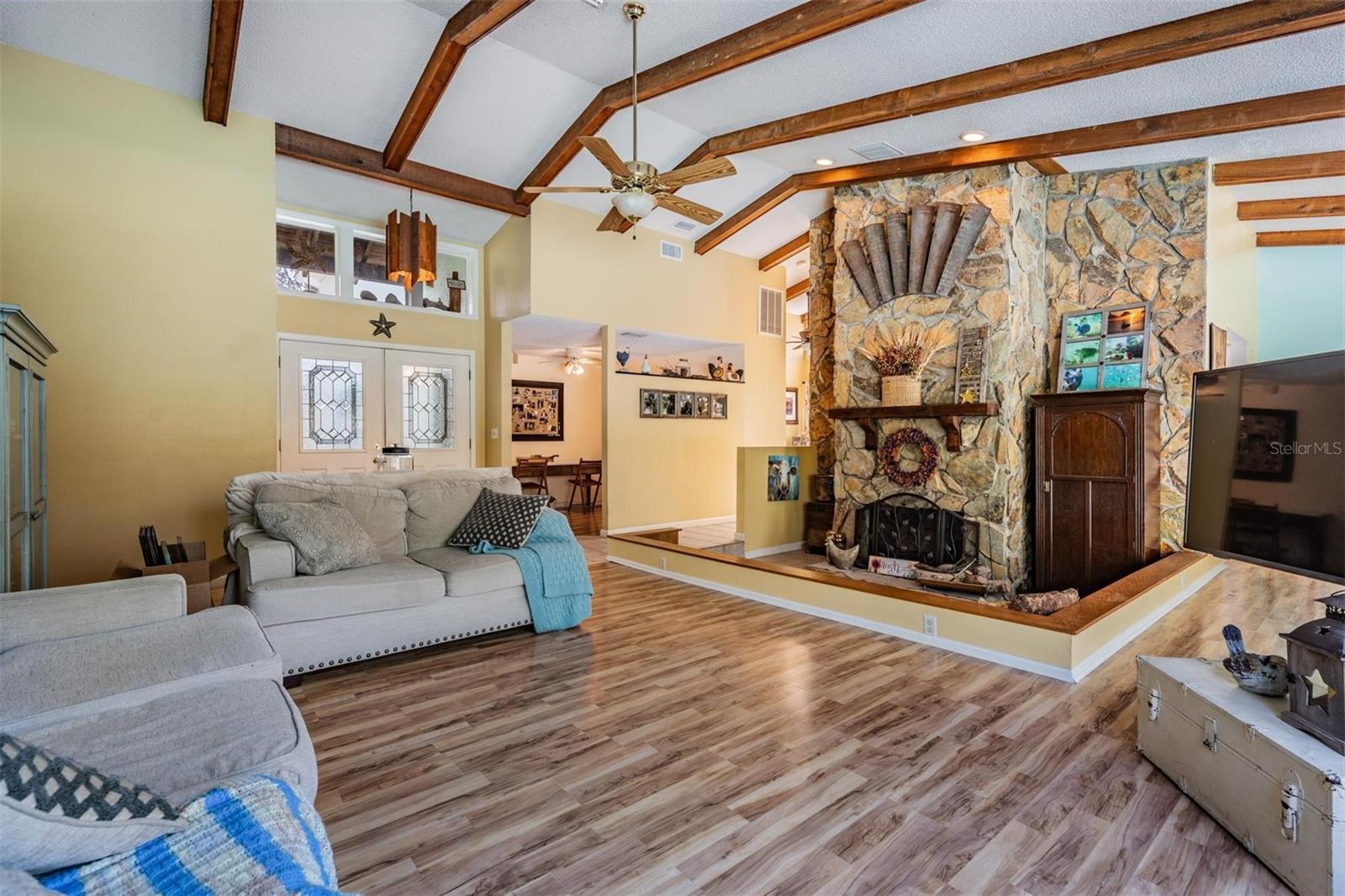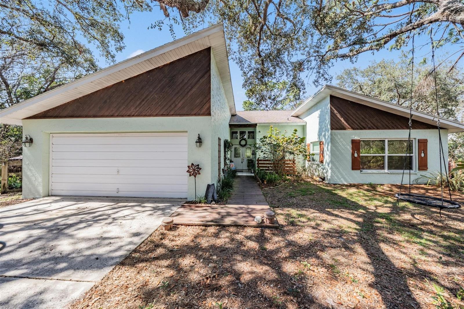 THIS HOME IS SPECIAL! 3 BEDROOM OPEN FLOOR PLAN WITH AN OFFICE, POOL, AND 2.33 ACRES! Bring your horses, goats, and chickens as you are allowed 3 grazing animals per acre! Boats and RV's allowed as well! Heading inside, this kitchen boasts brand new cabinets, Corian counter top, Stainless Steel Appliances, and Sun window! The wide open living space features high vaulted ceilings with wooden beams and a cozy wood burning fireplace encased in stone! The Primary Bed/Bathroom is spacious and holds a walk-in closet and sliders out to the pool and back yard! Relax out back in total privacy around the pool/spa which is surrounded by beautiful Florida Wildlife! Other great features of this home include its oversized 2nd bathroom, huge dining space, office, and brand new A/C! All of this in the Tanglewood community which is close to Starkey Park, Restaurants, Medical facilities, and so much more!