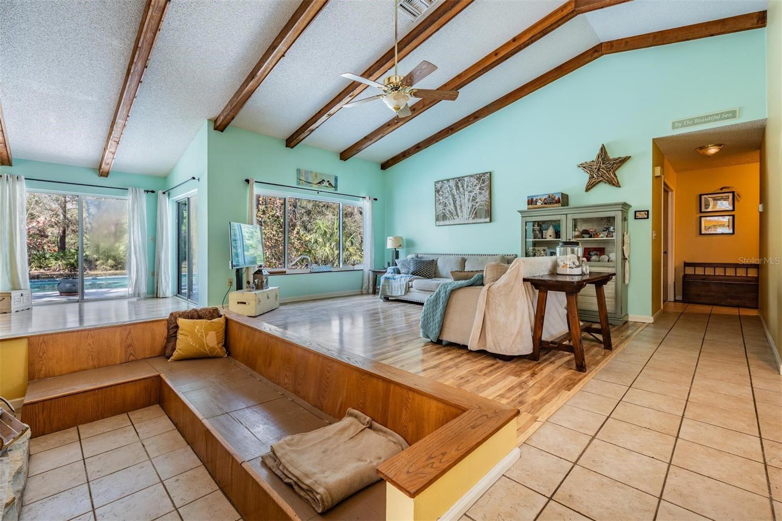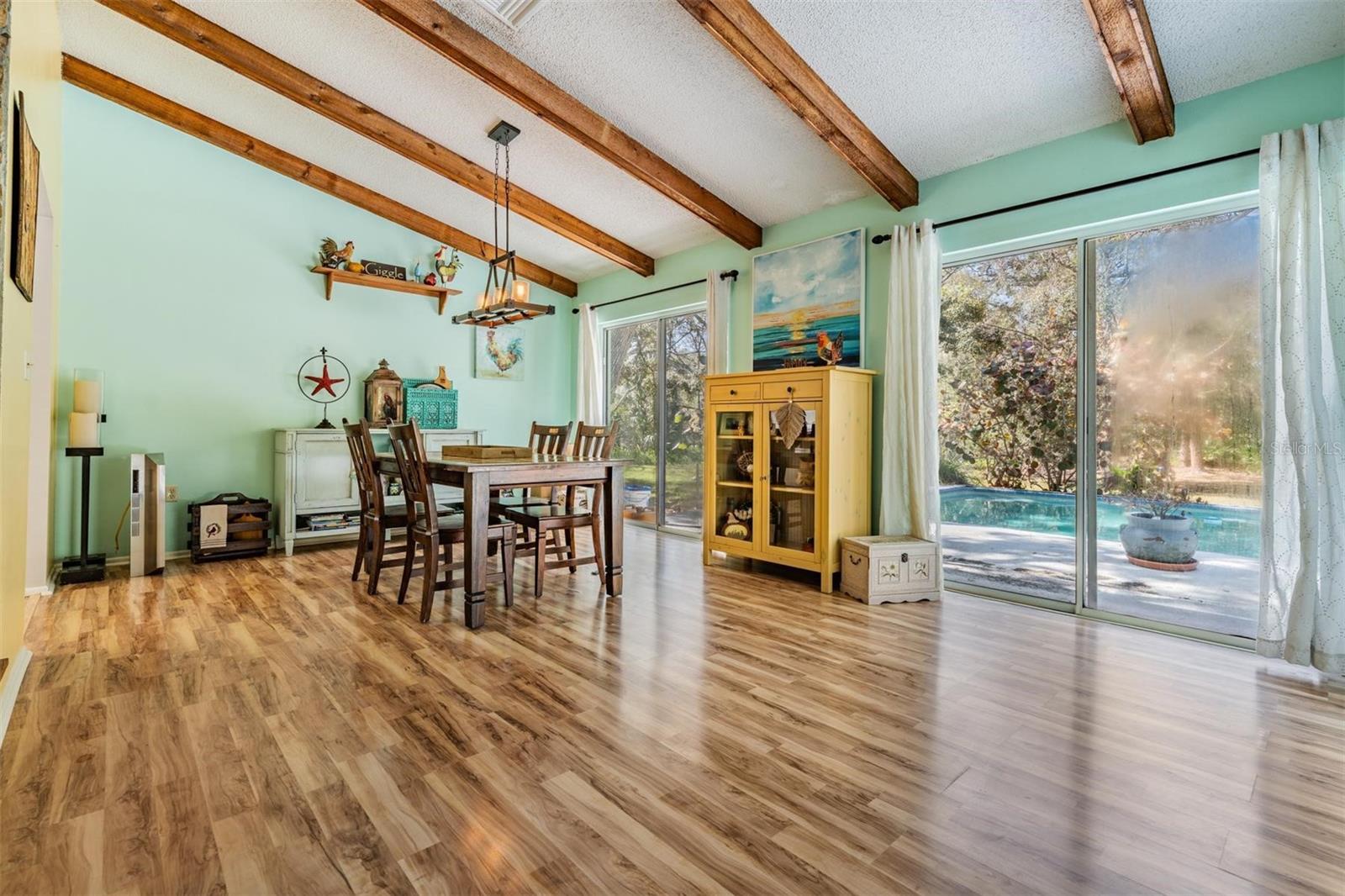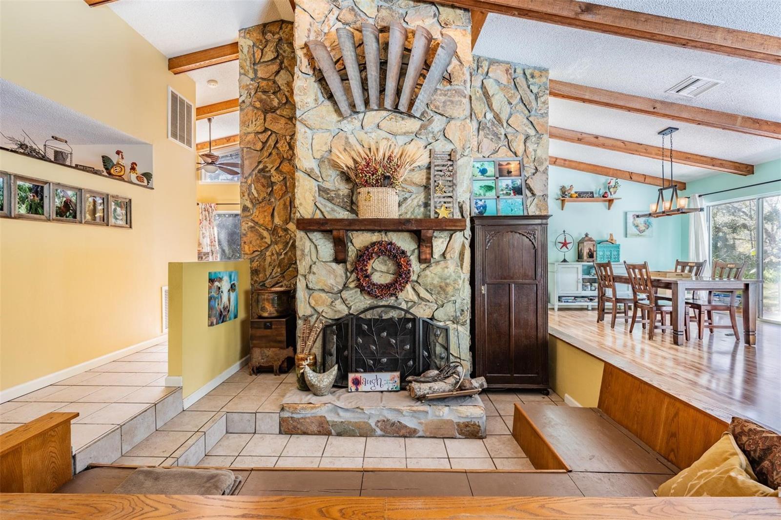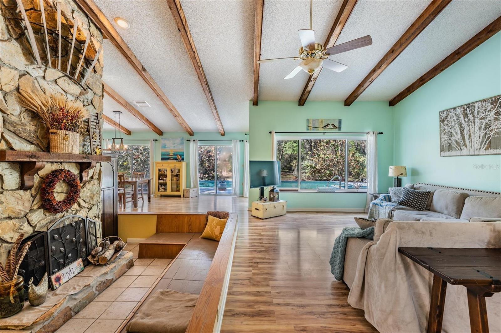 THIS HOME IS SPECIAL! 3 BEDROOM OPEN FLOOR PLAN WITH AN OFFICE, POOL, AND 2.33 ACRES! Bring your horses, goats, and chickens as you are allowed 3 grazing animals per acre! Boats and RV's allowed as well! Heading inside, this kitchen boasts brand new cabinets, Corian counter top, Stainless Steel Appliances, and Sun window! The wide open living space features high vaulted ceilings with wooden beams and a cozy wood burning fireplace encased in stone! The Primary Bed/Bathroom is spacious and holds a walk-in closet and sliders out to the pool and back yard! Relax out back in total privacy around the pool/spa which is surrounded by beautiful Florida Wildlife! Other great features of this home include its oversized 2nd bathroom, huge dining space, office, and brand new A/C! All of this in the Tanglewood community which is close to Starkey Park, Restaurants, Medical facilities, and so much more!
