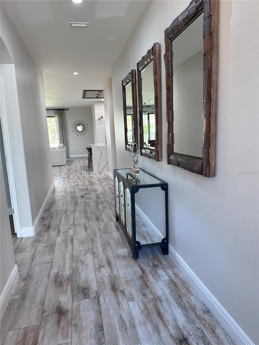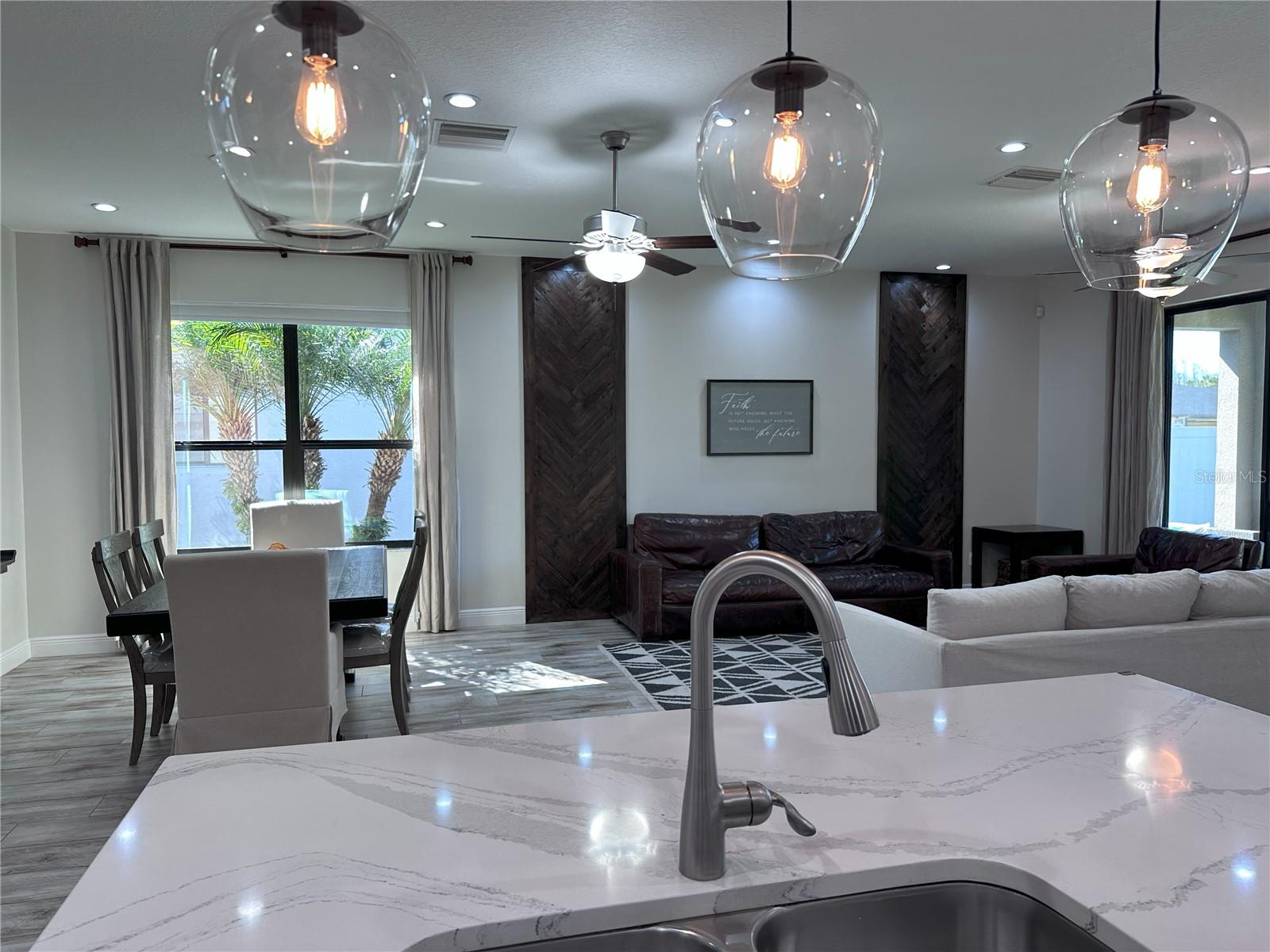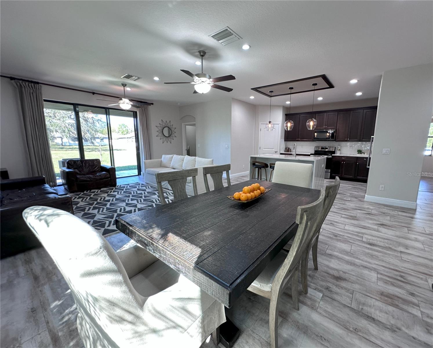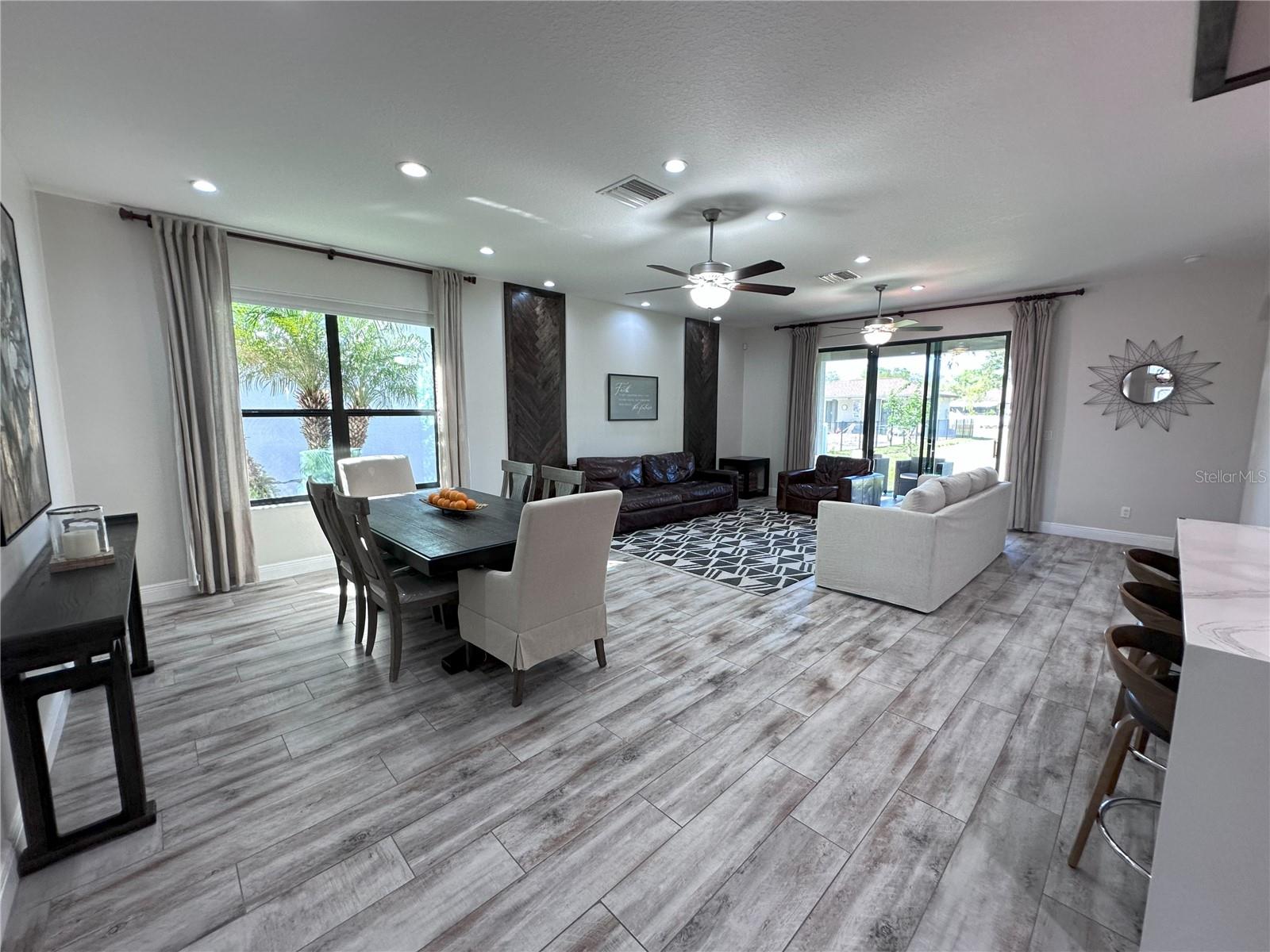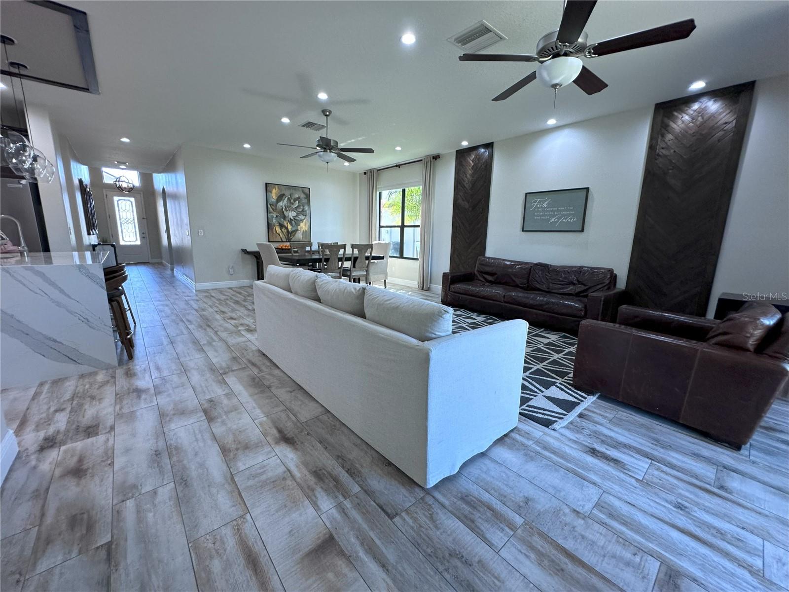 Motivated seller -bring your offers! Dont miss your c hance to see this Wonderful modern home, located at Rose Haven, a gated community with NO CDD FEE. The exterior has fantastic curb appeal, including a bay window, soaring arched front porch, stone accents, and and 8 foot fiberglass door with satin glass insert. You'll fall in love with your first step inside. The foyer is stunning, with upgraded tile that runs throughout the great room and kitchen. The kitchen features an island bar with dual sinks, and a beautiful quartz countertop that "waterfalls" on both sides. 42 inch upper cabinets with crown molding, GE Energystar appliances, a Moen® Arbor Brushed Nickel single-lever faucet with pull out sprayer, and a closet pantry all included. The kitchen opens to the spacious great room with sliders overlooking the green space and community pool. The master suite features dual walk-in closets, and the master bath has a walk in shower with full, seamless glass walls and upgraded wall pebble detail in the tile. There are three additional bedrooms, including one with it's own en suite bathroom ideal for an "in-law" suite. Lots of extra lighting in this model, puck can lights, pendant lights, and under cabinet lights in the kitchen. The kitchen cabinets and all bathroom cabinets have been upgraded, and all the bathrooms have granite countertops. You even get a ceiling rainfall shower head in the Master Suite. All bedrooms have waterproof luxury vinyl. The Rose Haven community has a gated entry, with a beautiful lakeside boardwalk, and community pool and cabana. As mentioned above there is NO CDD FEE, and a low HOA fee of $128 a month. This fee not only covers the pool, cabana, boardwalk, and entry gate, but also covers your trash pick up and basic cable. Conveniently located just a few miles from the Suncoast Parkway for quick commute to Tampa, it is also close to shopping, parks, restaurants, and beaches. So make sure this home is on your list to see, and come today!! please check the video tour