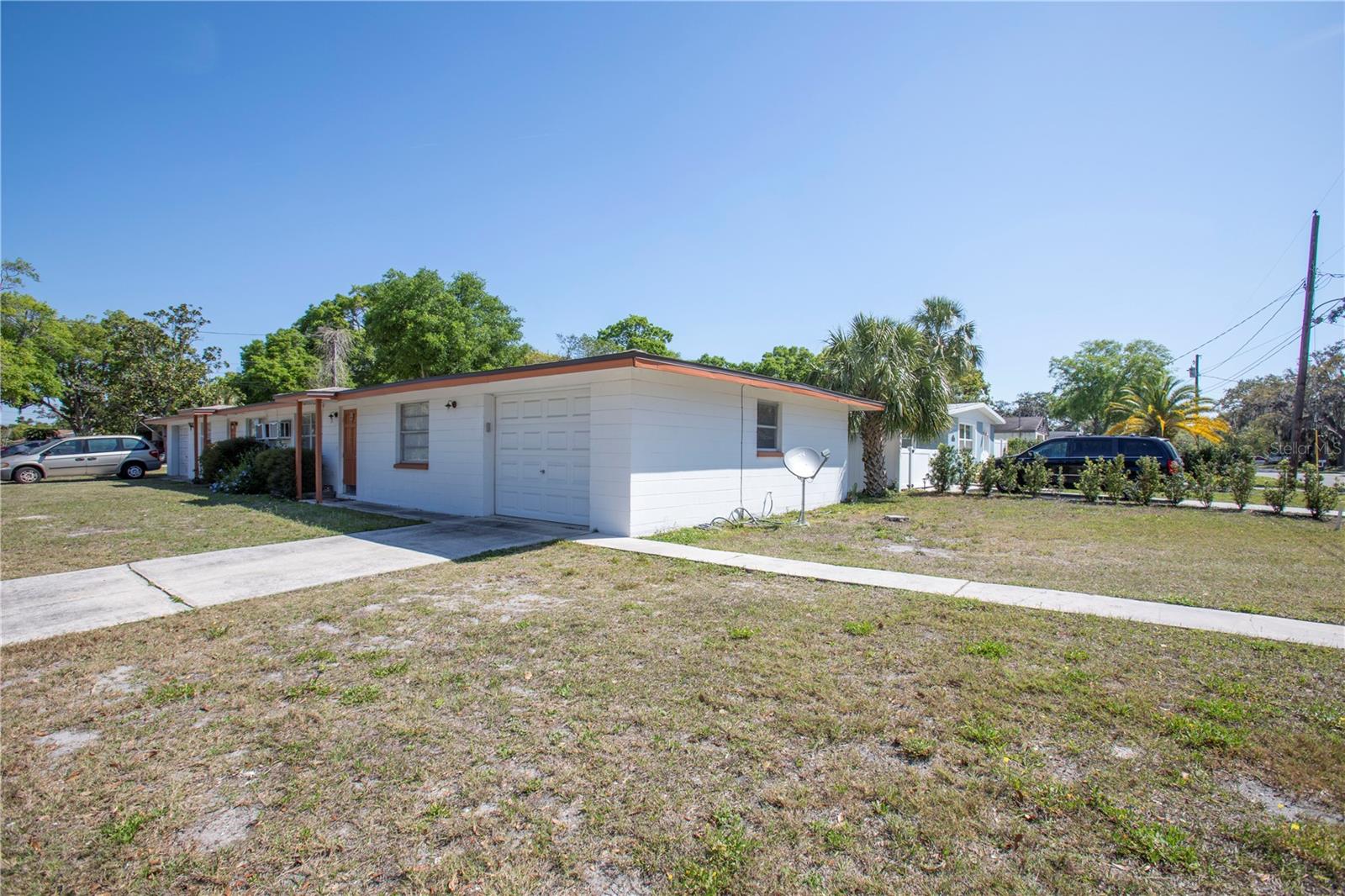 DUPLEX – Prime Location Near Downtown New Port Richey! This charming 2-bedroom, 1-bathroom duplex with a garage is just a short walk from the highly desirable Downtown New Port Richey. Whether you're looking for an investment property or a place to call home while earning rental income, this is a fantastic opportunity. The property features a brand-new roof installed in May 2024 and updated wall units within the last two years. It has never experienced flooding or storm damage, providing peace of mind for homeowners and investors alike. Both units have identical side-by-side layouts and separate electric meters, ensuring convenience for tenants. The home sits on a spacious corner lot with private driveways for each unit, offering added privacy and accessibility. A garage with newer doors provides extra storage space. One unit has been updated with newer appliances, while the other is currently occupied by a long-term tenant whose lease is up for renewal in August. Located within walking distance of Sims Park, popular restaurants, bars, and the beautiful Cotee River, this home is in the heart of a vibrant and lively community. Plus, it’s in a golf cart-friendly zone, allowing for easy access to downtown markets, festivals, and local events. With its prime location and strong rental potential, this income-generating property won’t last long. Schedule a showing today!