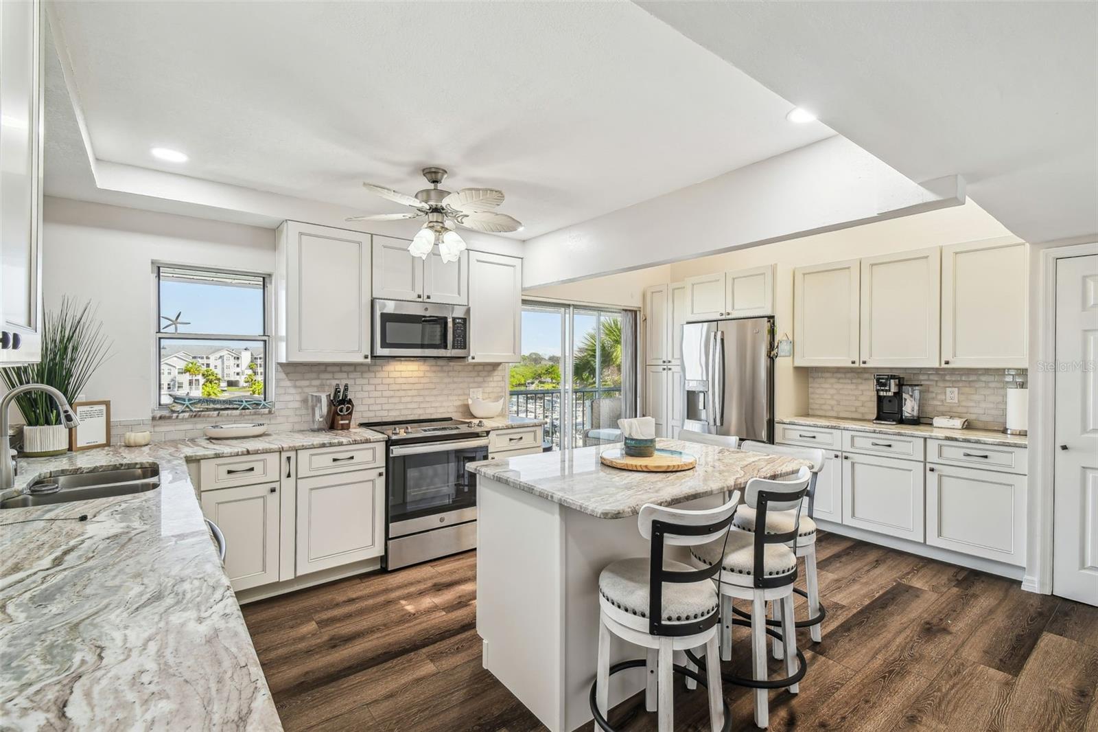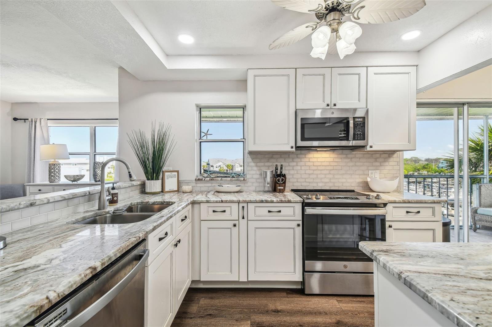 PRICE REDUCED BY $50K!! BRING YOUR OFFERS! Don't miss the opportunity to own this rare 3rd-Floor Penthouse Corner Unit – Waterfront Luxury with Gulf Views & Private Dock! Experience the pinnacle of WATERFRONT LIVING in this stunning 3-bedroom, 3-bathroom PENTHOUSE CONDO with breathtaking views of the Gulf of America! This rare top-floor, CORNER UNIT is a dream come true, featuring a fully remodeled interior with HIGH-END FINISHES. An open-concept layout with an abundance of natural light streaming through the expansive windows. The property is being offered FULLY FURNISHED and ready for the new owners to turn the key! Enjoy seamless indoor-outdoor living with spectacular sunsets from your 3 PRIVATE BALCONIES. In unit laundry with STACKED WASHER AND DRYER. The spacious primary suite offers breathtaking water views, a SPA-LIKE EN SUITE, and walk-in closet. The gourmet kitchen boasts modern WOOD cabinetry, STAINLESS STEEL APPLIANCES, and a large island perfect for entertaining. Boating enthusiasts will love the private dock with an INCLUDED BOAT SLIP, making Gulf access effortless. Conveniently located just minutes from downtown New Port Richey, you’ll have easy access to shopping, dining, and entertainment while still enjoying a peaceful, coastal retreat! Don’t miss this rare opportunity—schedule your private showing today!