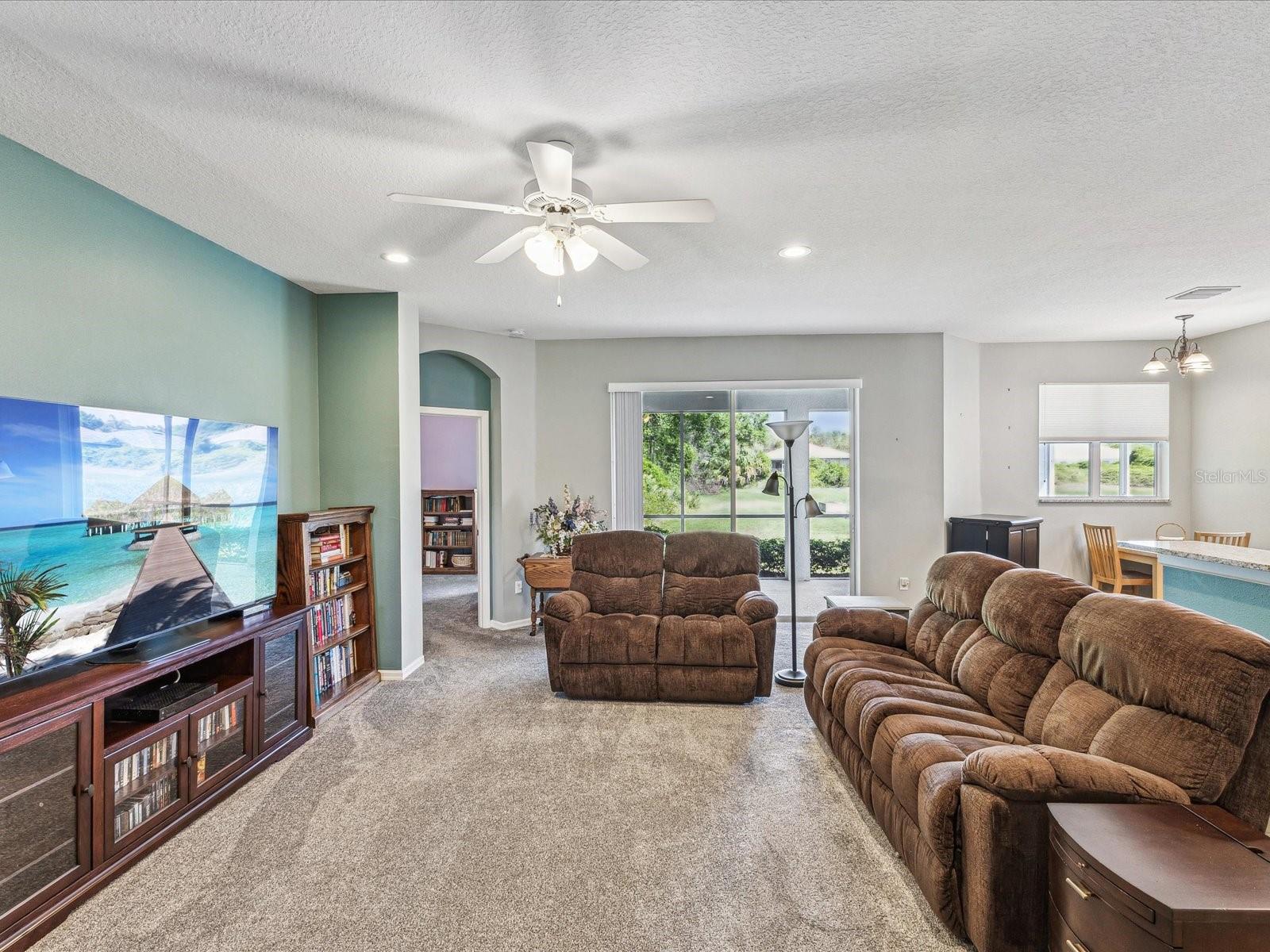 One or more photo(s) has been virtually staged. HUGE PRICE IMPROVEMENT!! MOTIVATED SELLERS!! INTERIOR HAS BEEN FRESHLY PAINTED!! IT IS ALSO AN ASSUMABLE VA LOAN! ANY QUALIFIED BUYER CAN ASSUME! SELLER WILL ALSO CONSIDER A LEASE PURCHASE! THE HOMES ON KISKADEE CIRCLE ARE HIGHLY DESIRABLE FOR THEIR EXTERIOR DESIGNS AND LUSH VEGETATION. THE ABSENCE OF REAR NEIGHBORS ENHANCES THE HOME'S DESIRABILITY AND VALUE. THIS HOME HAS A SPACIOUS OPEN FLOOR PLAN, ALONG WITH THE EXTRA FLEX ROOM, PROVIDES THE POTENTIAL FOR A FORMAL DINING ROOM OR AN EXTRA OFFICE. THE STUNNING KITCHEN FEATURES A UNIQUE, BUILT -IN HUTCH THAT SETS IT APART FROM ALL OTHERS. UPGRADES INCLUDE A NEWER ROOF (2023), A KITCHEN AID DISHWASHER, AND A WHOLE HOUSE WATER SOFTENER AND FILTRATION SYSTEM. THE TWO FRONT BEDROOMS HAVE PRIVACY FOR GUESTS AND ENTERTAINING, WHILE THE PRIMARY SUITE IS SECLUDED AT THE BACK OF THE HOME FOR ADDED TRANQUILITY. THE SCREENED-IN PORCH OVERLOOKS A PRIVATE BACKYARD, PROVIDING A PERFECT SPACE FOR RELAXATION.THE NEWLY RENOVATED CLUBHOUSE IS AN ADULT PLAYGROUND, OFFERING BILLIARDS, CARD GAMES, BOCCE BALL, TENNIS, A HEATED POOL AND SPA. THIS GATED COMMUNITY FEATURES A PRISTINE 9-HOLE GOLF COURSE, METICULOUSLY MAINTAINED FOR OPTIMAL PLAY. THE GATES REMAIN OPEN FROM 7AM TO 7PM TO ACCOMODATE PUBLIC ACCESS TO THE COURSE SO YOUR FRIENDS CAN PLAY WITH YOU. IN THIS GOLF CART -FRIENDLY COMMUNITY, GOLF CARTS CAN SERVE AS A CONVENIENT ALTERNATIVE TO A SECOND VEHICLE. THIS COVETED 55+ COMMUNITY BOASTS A PRIME LOCATION WITH EASY ACCESS TO THE SUNCOAST PARKWAY, BEACHES, RESTAURANTS AND SHOPPING. COME LIVE THE "FLORIDA LIFESTYLE" YOU'VE SO EARNED!!