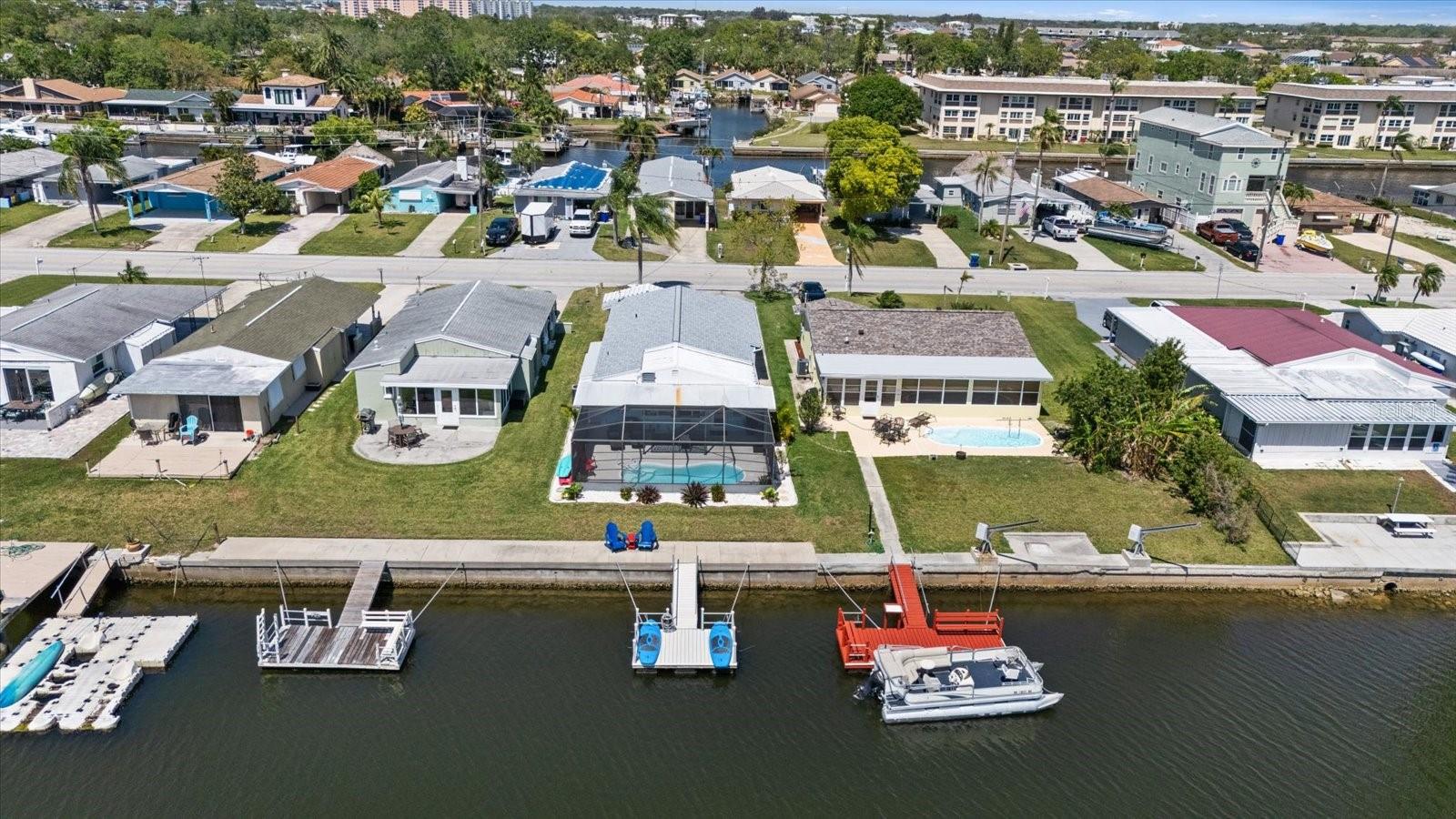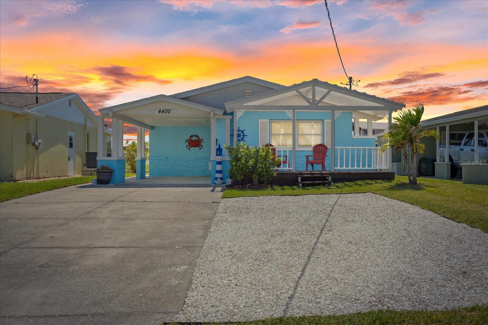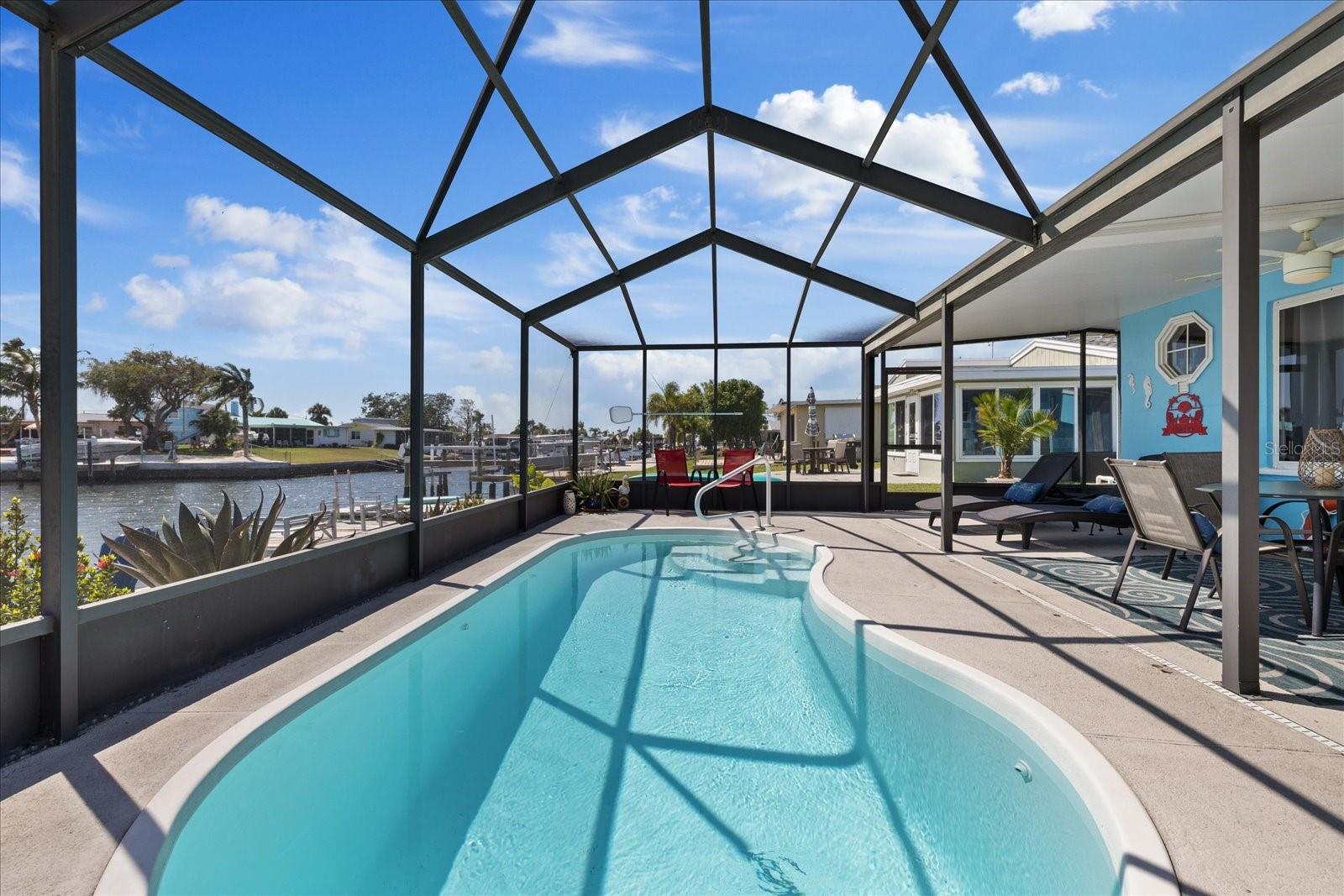 Fully Furnished, and FABULOUS! Are you ready to move into a fully turn key home with Gulf Access? Welcome to 4400 Floramar Terrace in the waterfront community of Gulf Harbors! This 2 bedroom 2 bathroom home checks all the boxes from inside-out, it truly has all you need to start enjoying the waterfront lifestyle today. Outside, you are going to love the attention to detail and all of the updates this home has. The sellers recently painted the exterior a coastal blue and put on a new roof in 2023. The front porch is dressed with a white trellis, creating stunning curb appeal and the entire exterior is beautifully landscaped with an additional parking pad in the front. Inside as you step in, you will love the high ceilings and open concept floor plan with a direct view of your heated, screened in pool and the wide salt-water canal right in your backyard. The home is tiled throughout with brand new luxury vinyl plank floors in both bedrooms. All of the doors are 3 panel frosted glass and provides an added touch of sophistication inside. All new living room furniture, beds, and everything you see down to the pots and pans will convey. The seller uses the home as a vacation home and monthly winter rentals are $8,000 a year! Seller is willing to transfer over the renters information if the new buyer would like. Enjoy coming home to luxuries like paddle boarding, kayaking, and bike riding all included with the home x2 for you to enjoy! The kitchen opens up to the living area, and has all white cabinets with coastal themed knobs, and brand new stainless steel appliances. It flows directly to the indoor laundry room with a lovely water view with a dryer and a brand new washing machine will also convey. Through the laundry, enters the second bathroom, which is an European bathroom, and tiled with direct access to the pool. The seawall cap was poured in 2016 offering years of longevity to come. The home also has a floating dock, ready for your boat to have a wet slip in your very own backyard. There is also additional storage on the side of the home and a carport to keep your vehicle out of the sun. According to the seller, the home is high and only had about 2-1/2" of water in places from the Helene flood and since it was less that 8 sheets of drywall, flooring, and baseboards permits were not required for the repairs which the seller was advised from the county when inquired. Don't miss your chance to get into one of the best waterfront communities on the Gulf Coast with access to Anclote Island and the sand bar being just minutes from your backdoor. Gulf Harbors also has a private beach for only $200 a year available to residents and an optional HOA at the Gulf Harbors Civic Association for just $125 a year! New Port Richey is quickly growing and becoming increasingly more popular, so get your slice of paradise while you still can, they're not making anymore waterfront for this price! Schedule your tour today!