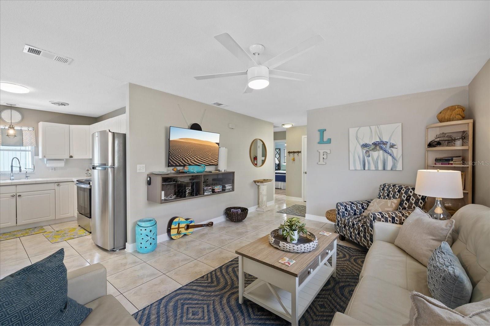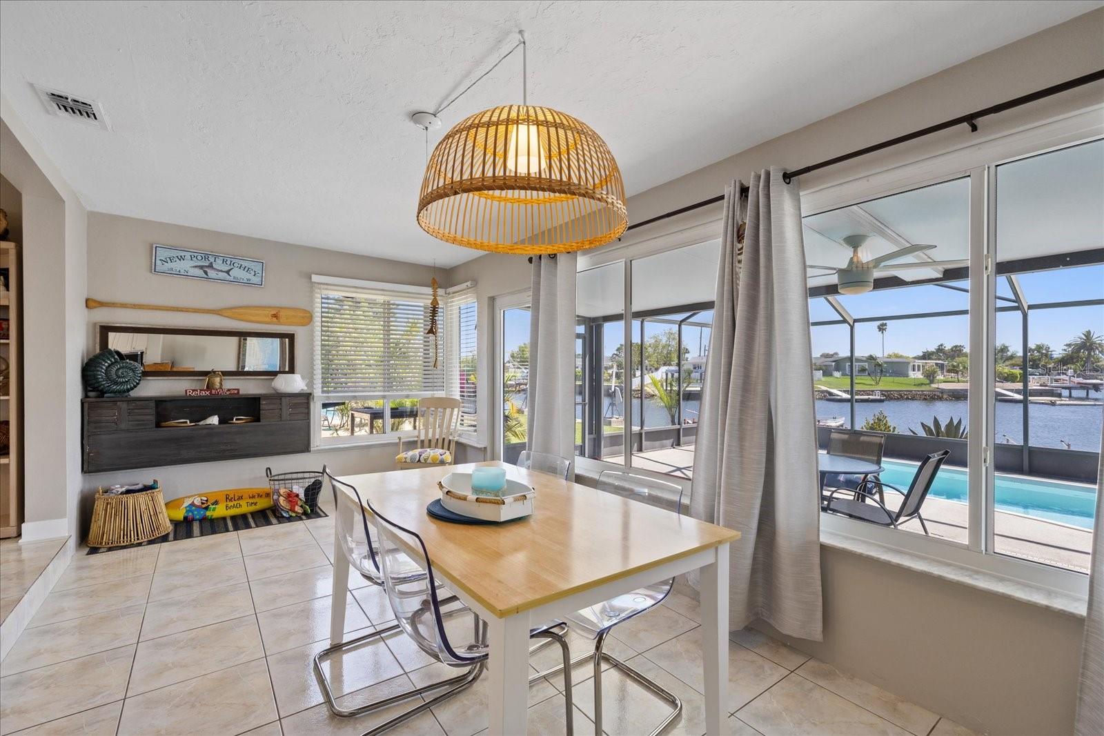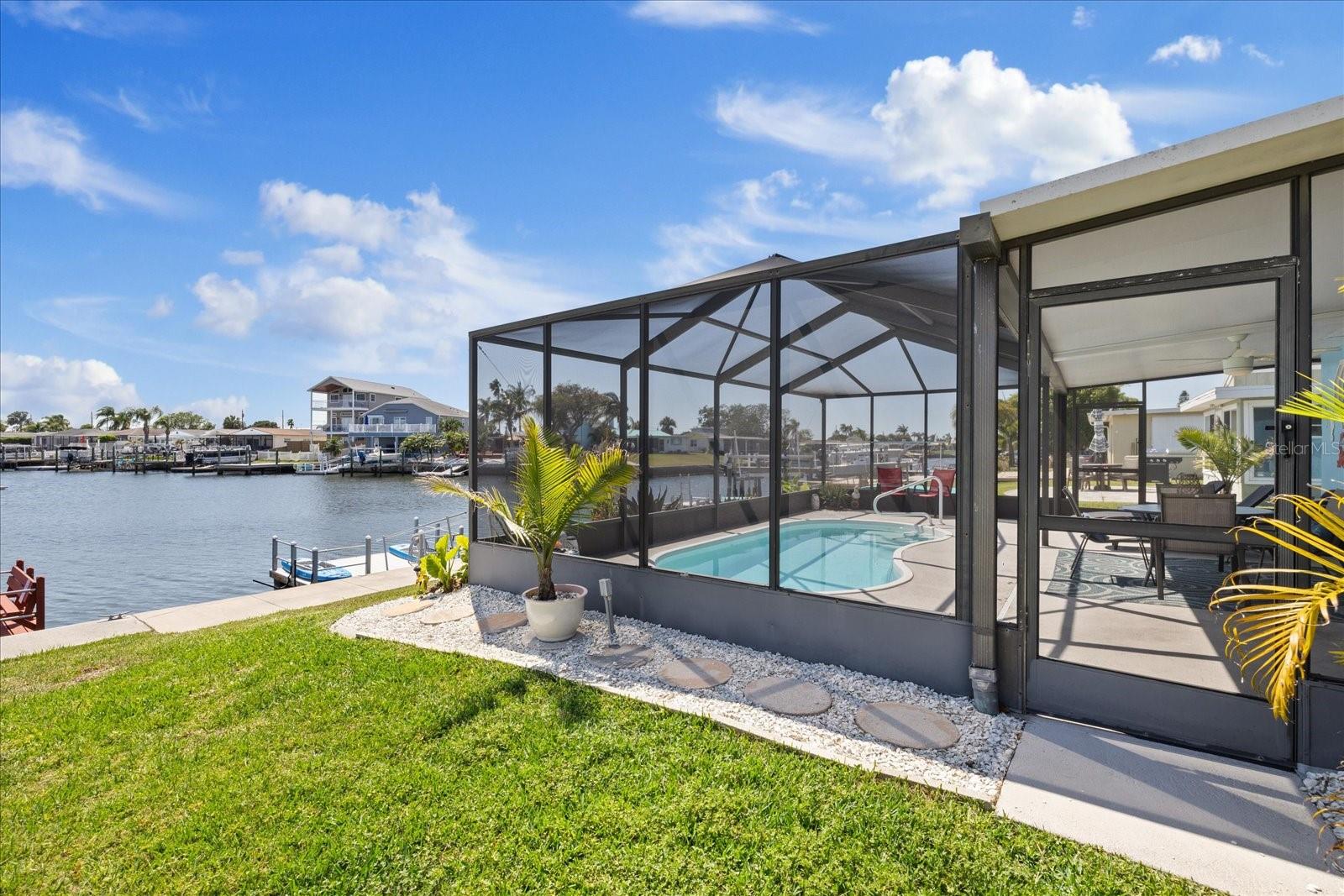 Fully Furnished, and FABULOUS! Are you ready to move into a fully turn key home with Gulf Access? Welcome to 4400 Floramar Terrace in the waterfront community of Gulf Harbors! This 2 bedroom 2 bathroom home checks all the boxes from inside-out, it truly has all you need to start enjoying the waterfront lifestyle today. Outside, you are going to love the attention to detail and all of the updates this home has. The sellers recently painted the exterior a coastal blue and put on a new roof in 2023. The front porch is dressed with a white trellis, creating stunning curb appeal and the entire exterior is beautifully landscaped with an additional parking pad in the front. Inside as you step in, you will love the high ceilings and open concept floor plan with a direct view of your heated, screened in pool and the wide salt-water canal right in your backyard. The home is tiled throughout with brand new luxury vinyl plank floors in both bedrooms. All of the doors are 3 panel frosted glass and provides an added touch of sophistication inside. All new living room furniture, beds, and everything you see down to the pots and pans will convey. The seller uses the home as a vacation home and monthly winter rentals are $8,000 a year! Seller is willing to transfer over the renters information if the new buyer would like. Enjoy coming home to luxuries like paddle boarding, kayaking, and bike riding all included with the home x2 for you to enjoy! The kitchen opens up to the living area, and has all white cabinets with coastal themed knobs, and brand new stainless steel appliances. It flows directly to the indoor laundry room with a lovely water view with a dryer and a brand new washing machine will also convey. Through the laundry, enters the second bathroom, which is an European bathroom, and tiled with direct access to the pool. The seawall cap was poured in 2016 offering years of longevity to come. The home also has a floating dock, ready for your boat to have a wet slip in your very own backyard. There is also additional storage on the side of the home and a carport to keep your vehicle out of the sun. According to the seller, the home is high and only had about 2-1/2" of water in places from the Helene flood and since it was less that 8 sheets of drywall, flooring, and baseboards permits were not required for the repairs which the seller was advised from the county when inquired. Don't miss your chance to get into one of the best waterfront communities on the Gulf Coast with access to Anclote Island and the sand bar being just minutes from your backdoor. Gulf Harbors also has a private beach for only $200 a year available to residents and an optional HOA at the Gulf Harbors Civic Association for just $125 a year! New Port Richey is quickly growing and becoming increasingly more popular, so get your slice of paradise while you still can, they're not making anymore waterfront for this price! Schedule your tour today!