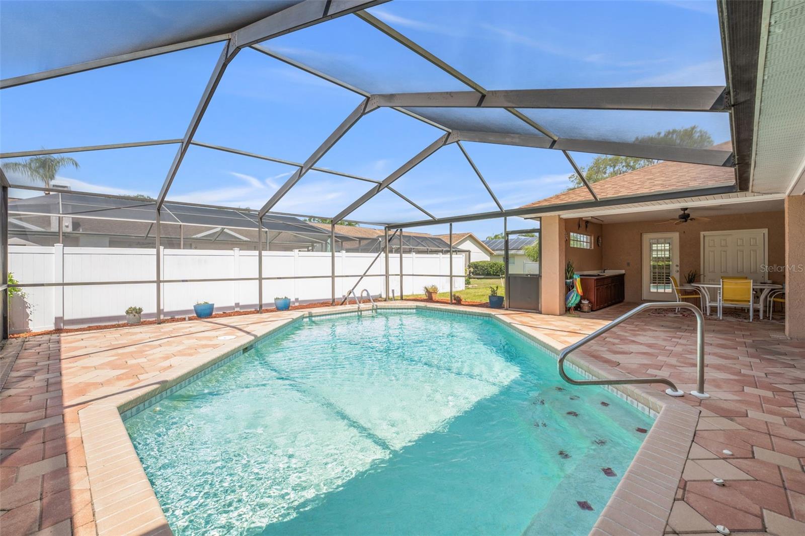Location, location, location! This custom-built, one-owner POOL HOME is tucked away in the sought-after community of Southern Oaks in New Port Richey. Offering 2,788 sq ft of well-maintained living space, it’s designed for relaxed Florida living and effortless entertaining. Inside, enjoy continuous hardwood flooring and timeless plantation shutters throughout. The spacious layout includes 3 large bedrooms, 3 full baths, and a 2-car garage. The chef’s kitchen is the centerpiece—complete with granite countertops, stainless steel appliances, recessed lighting, and a large island that opens to the cozy family room with a wood-burning fireplace and custom built-ins. A sunny dinette overlooks the screened lanai and sparkling pool, perfect for enjoying morning coffee. The outdoor space is a true retreat, with a covered lanai offering plenty of room for dining and lounging year-round. Soaring ceilings and decorative plant shelves add to the home’s bright, open feel. Located near Trinity, you're just minutes from shopping, dining, top-rated schools, and everything the Gulf Coast lifestyle has to offer. Don’t miss this Southern Oaks gem—schedule your private tour today! Seller offering a $5k credit at closing!