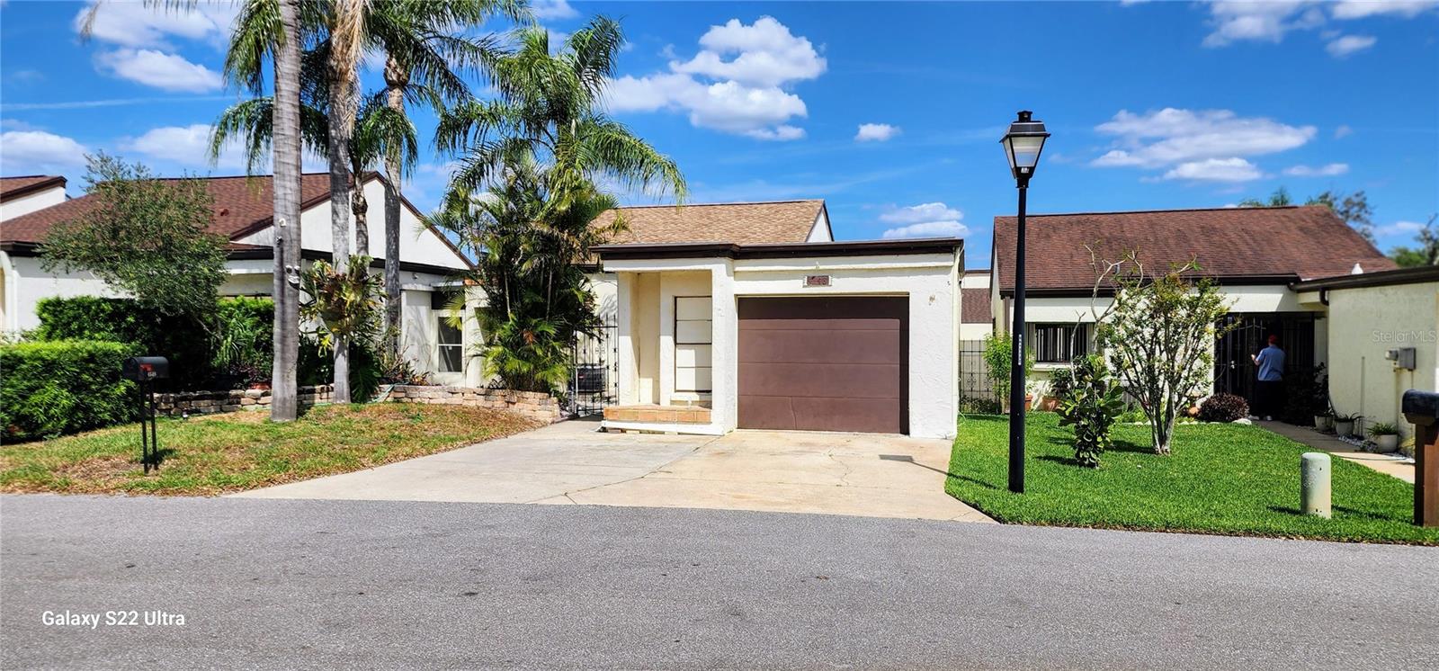 As you drive through this quaint community, you'll be greeted by beautiful trees and meticulously maintained landscaping. This charming villa features two spacious bedrooms and two bathrooms. The master suite offers a walk-in closet and an ensuite bath with both a tub and a shower. Enjoy the oversized enclosed porch, accessible from the kitchen, living room, and master bedroom—perfect for relaxing or entertaining. The living room boasts vaulted ceilings, adding to the open and airy feel of the home. Centrally located, you're just minutes from shopping, entertainment, parks, and the stunning beaches of Florida's west coast. Major updates include a brand-new roof (April 2025), flat roof (February 2025), and an A/C system installed in 2016. The interior has been freshly painted, and the master bath features new tile. This home qualifies for a 203k Renovation loan for wanted or needed repairs, Lender in place and ready to go. With just a little TLC, this villa is ready to shine and become your perfect Florida retreat.