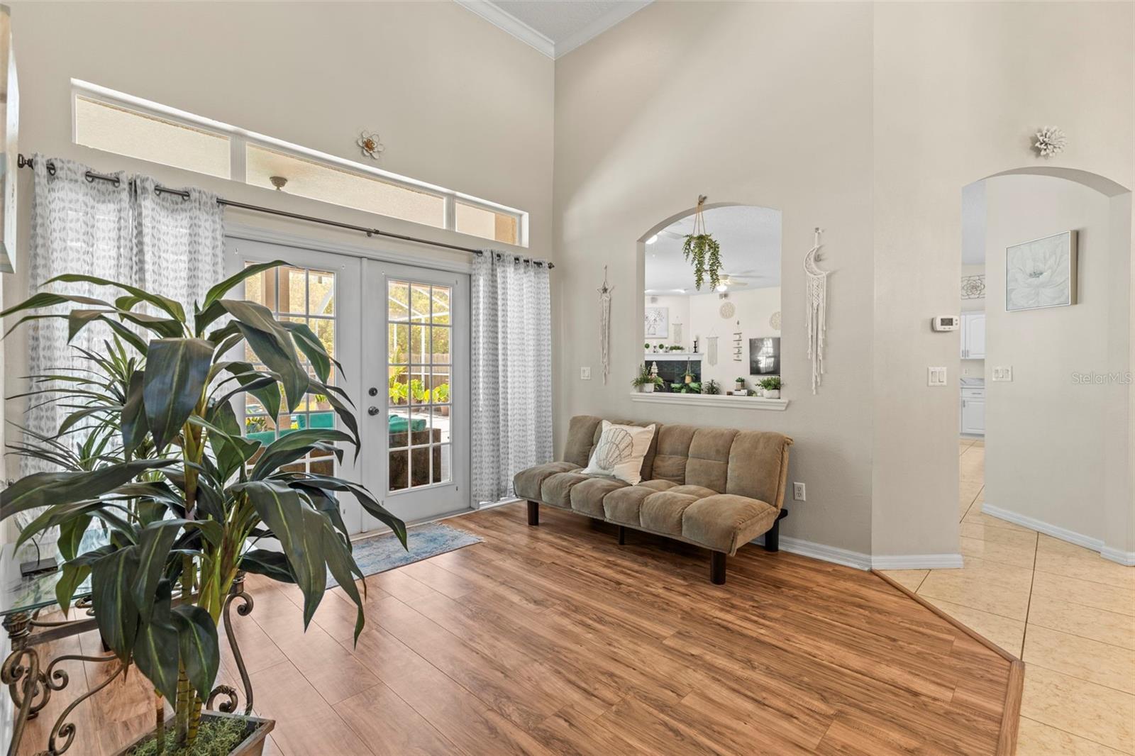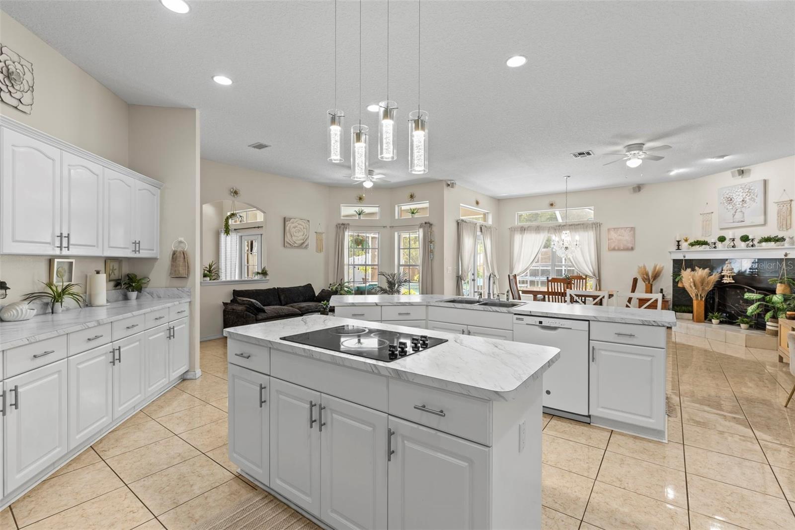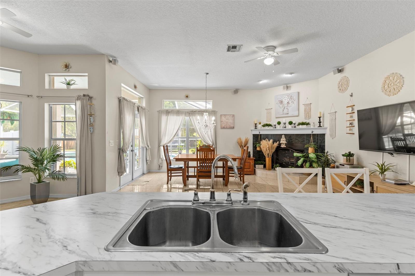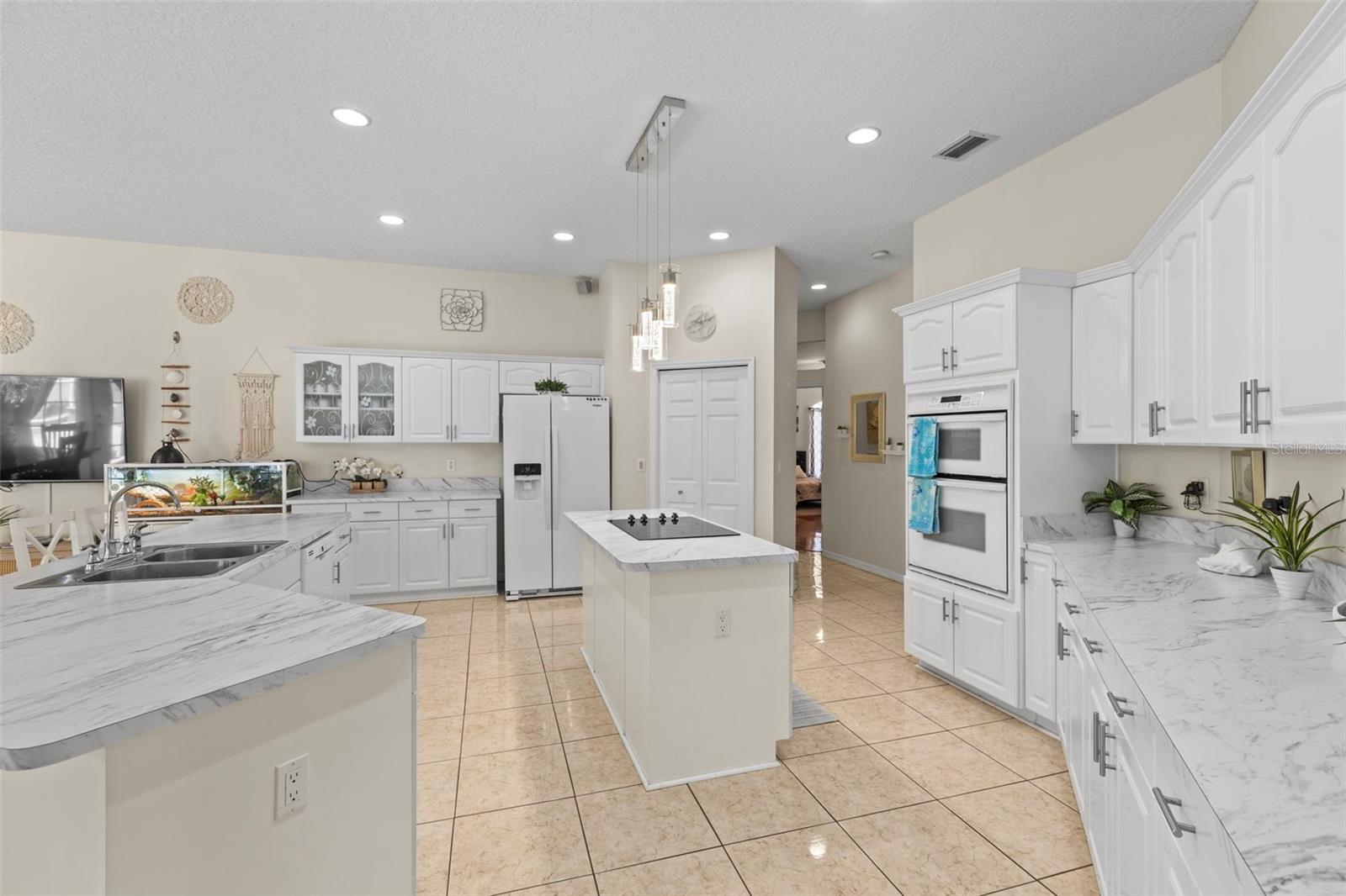 Welcome to your private oasis—a true GRAND ESTATE nestled on a pristine 1-acre homesite in the desired Golden Acres Community. This 4-bedroom 3- bathroom, 3- car garage home offers 3,181 square feet of luxury and comfort and also features a bonus room and a stunning screened in pool. As you step through the grand entry you will notice the soaring tall ceilings that elevate every space with light and a charming sitting area that welcomes you that features crown molding, Architectual arches and amazing views of the swimming pool. The heart of this home is the expansive gourmet kitchen, a chef’s dream! The stunning kitchen features a kitchen island cooktop that offers a sleek, open-concept design, extra counter space, and allows for social interaction while cooking. The double ovens will come in handy when holiday baking or entertaining as will the generous breakfast bar and large counter spaces for ample prep space. Open to the kitchen, the living room and dining area is adorned with a wood burning fireplace adding warmth and ambiance to the spacious living area and provides phenomenal views of the pool and backyard space, as well as access to the pool patio area through the double French doors. The primary suite adorned with double doors, is a luxurious retreat, offering privacy and serenity with spa-like features including a lavish garden tub, oversized walk-in shower, and dual vanities. On the other side of the home is where you will find a large thoughtfully designed Jack and Jill bathroom that connects two spacious bedrooms, offering both convenience and style, while the third bathroom, is located near the third bedroom and makes a great pool bath as it provides easy access from the outdoor area. This home also features a bonus room- perfect for an elegant and stylish home office. The large interior laundry room impresses with extensive counter space and custom storage for ultimate functionality and is adjacent to the entrance of the 3 - car garage for added convenience. Step outdoors to the oasis that awaits you! A large, covered patio space opens up to the stunning resort style pool that is surrounded by lush landscaping. Ideal for hosting parties, or for quiet days when you just want to relax and take a swim in the pool or lounge poolside with your favorite book. A three-car garage completes the property, offering abundant space for vehicles, storage, hobbies, and your golf cart as this is a golf cart friendly neighborhood. Bring your RV and or Boat! Plenty of room to keep your toys on the property and not have to pay a storage fee. The property is fenced with an additional smaller area crossed fenced for your pets to play. The Golden Acres Community is a country setting yet close to town amenities such as shopping and restaurants and many horses, goats, chickens, and deer call this neighborhood home. Even though there is no HOA, the community holds many events throughout the year such as holiday golf cart parades, car shows, monthly newsletter, and more! Close to the Suncoast/Veterans parkway giving easy access to the Tampa Bay area and surrounding counties. NO HOA , NO CDD FEE, and NO FLOOD INS!! This is more than a home—it’s a lifestyle of sophistication, comfort, and grandeur. Experience estate living at its finest.