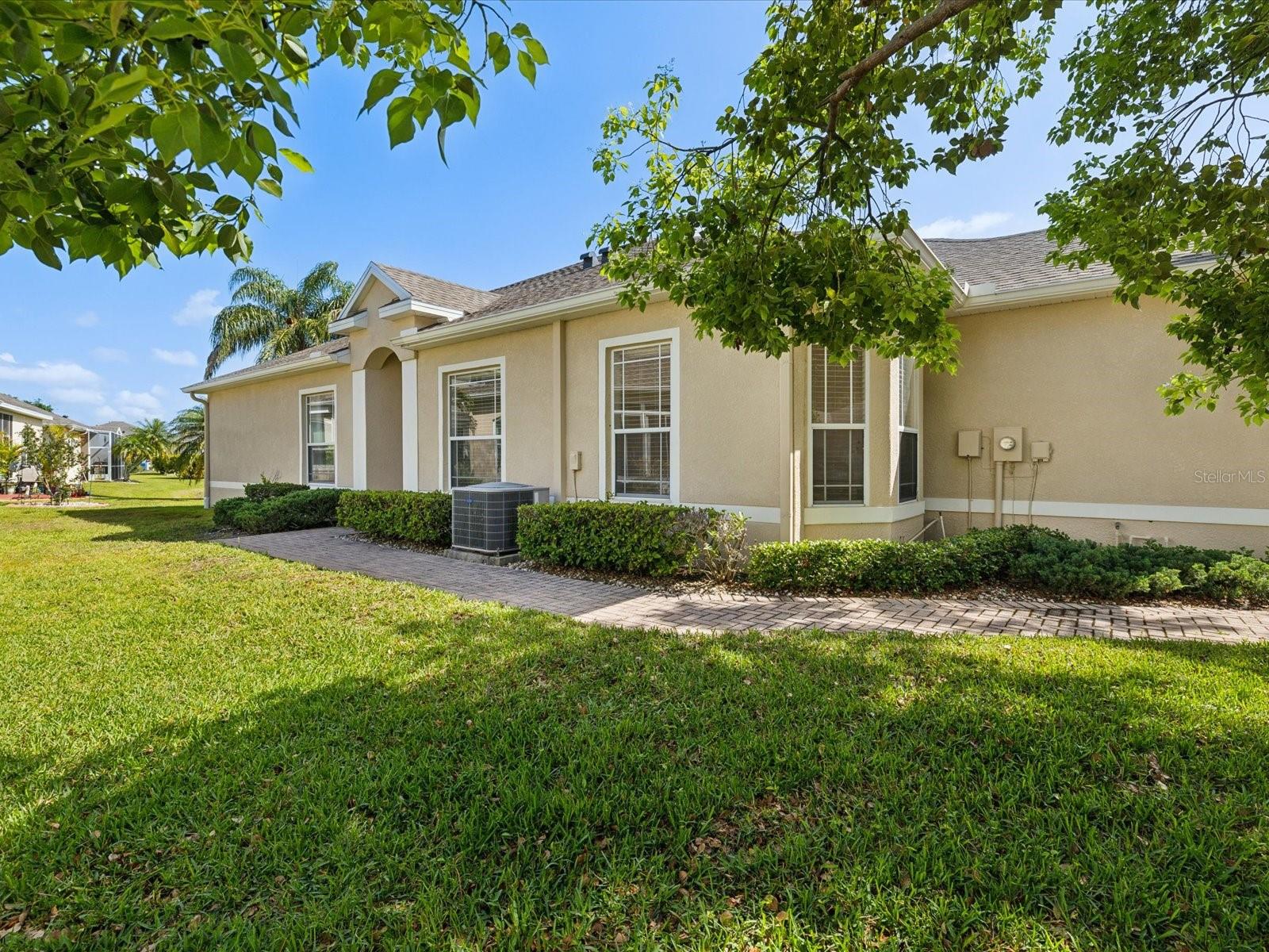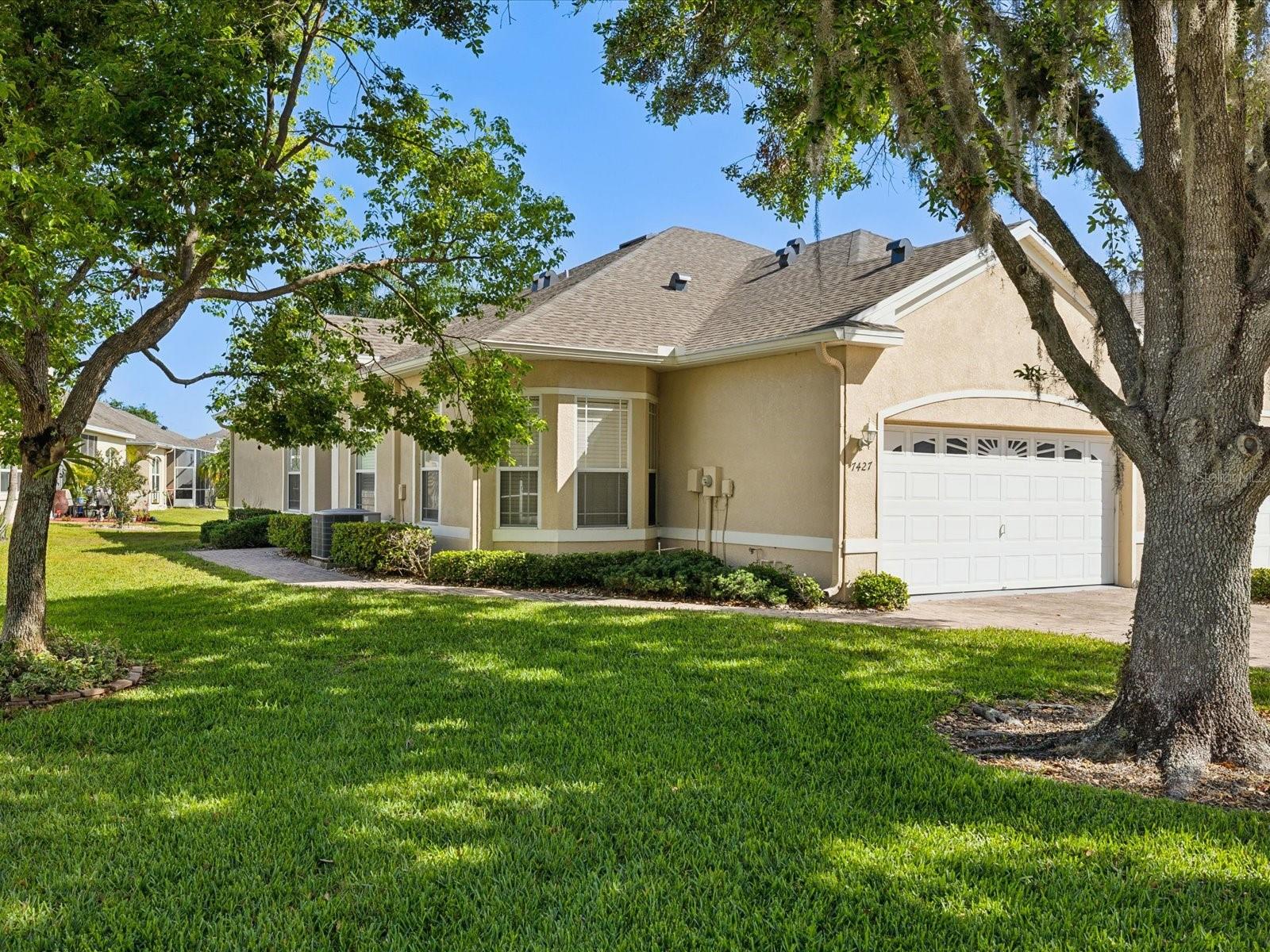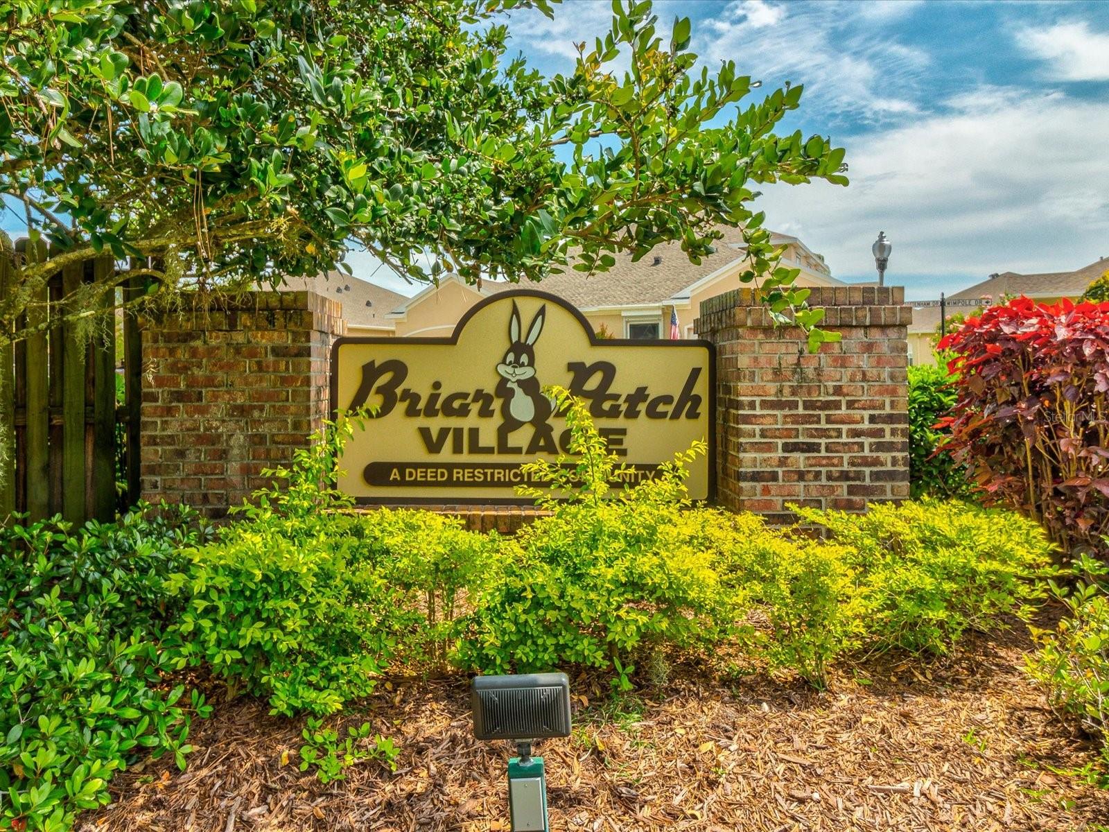Welcome home to this charming 2-bedroom, 2-bath villa nestled in the peaceful, gated community of Briar Patch Village. This move-in ready home offers low-maintenance living with all the comfort and convenience you’ve been looking for. Step inside to find a bright and open floor plan with vaulted ceilings and plenty of natural light. The spacious living and dining room combo is perfect for entertaining or relaxing after a long day. The kitchen features ample cabinet space and a cozy nook for casual dining. The primary suite offers a private retreat with a large walk-in closet and an en-suite bath featuring dual sinks and a walk-in shower. The second bedroom is perfect for guests or a home office, and the second full bath is just steps away. Step outside to your private screened-in patio overlooking a small pond—the perfect spot to enjoy your morning coffee or unwind in the evenings while taking in the peaceful view. A two-car garage provides plenty of space for parking and additional storage. Briar Patch Village is a quiet, gated community offering a community pool and low HOA fees that include exterior maintenance, lawn care roof and more. Located just minutes from shopping, dining, and major highways, this home offers both tranquility and accessibility. Don’t miss your chance to own this delightful villa—schedule your private showing today! LETTER OF MAP CHANGE, FLOOD ZONE X, NO FLOOD INSURANCE REQUIRED.