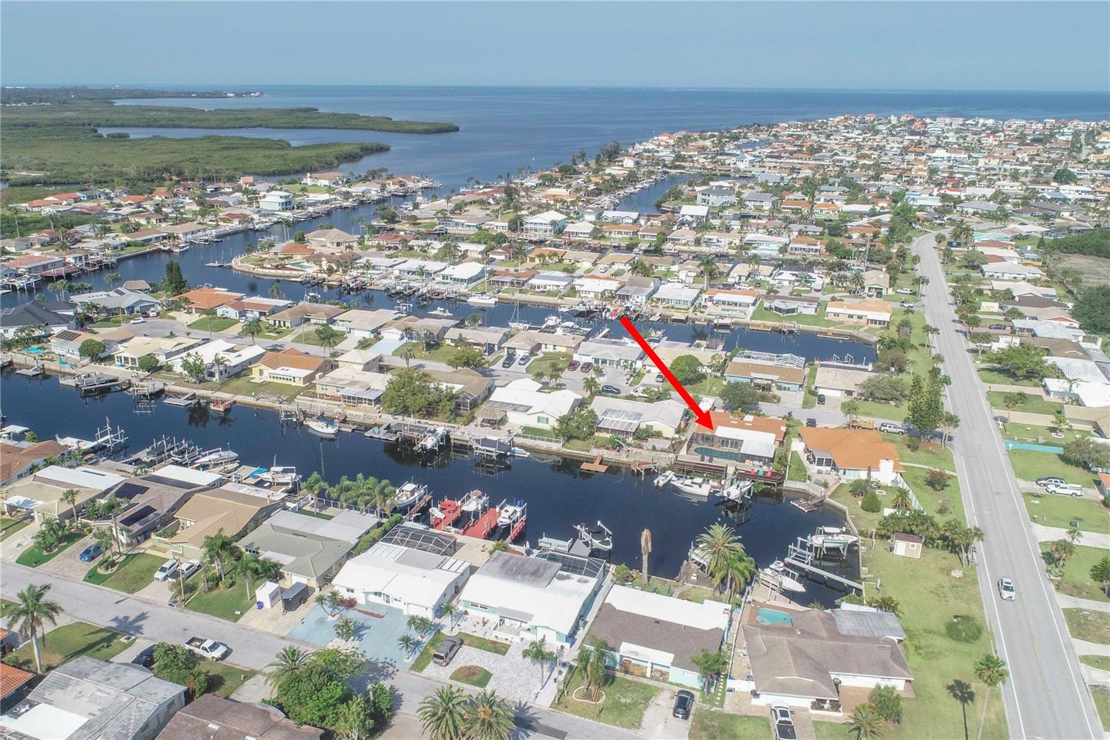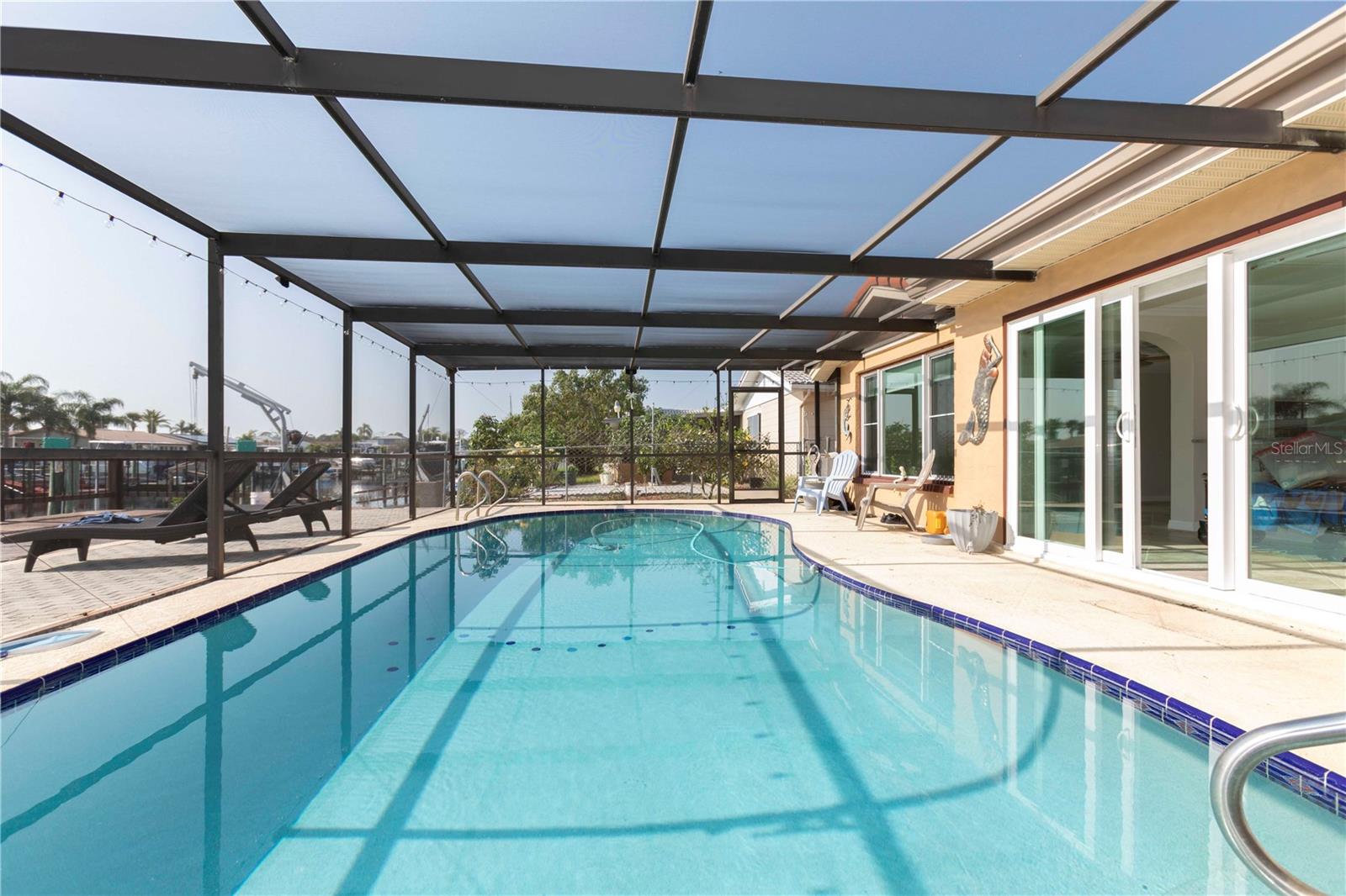 ATTENTION BOATERS! completely renovated waterfront pool home in desirable Gulf Harbors. Enjoy sailboat water, no bridges, 67 ft. waterfront, 13,000lb boat lift & floating dock. Spacious deck flows into a screened pool & entertaining area—perfect for dolphin watching sunsets! Inside: BRAND NEW KITCHEN with granite, cabinets, BRAND NEW stainless appliances & water views. Hurricane impact windows with plantation shutters, luxury vinyl & tile flooring (no carpet), crown molding throughout. Primary suite with ensuite bath + office/bonus (could be 3rd bedroom). Upgrades: Tile roof (2016), AC (2017), 4 new pilings (2020). Community perks: Optional private beach, golf-cart friendly, boat ramps, & active social clubs. Live the Florida boating dream—schedule your showing today!