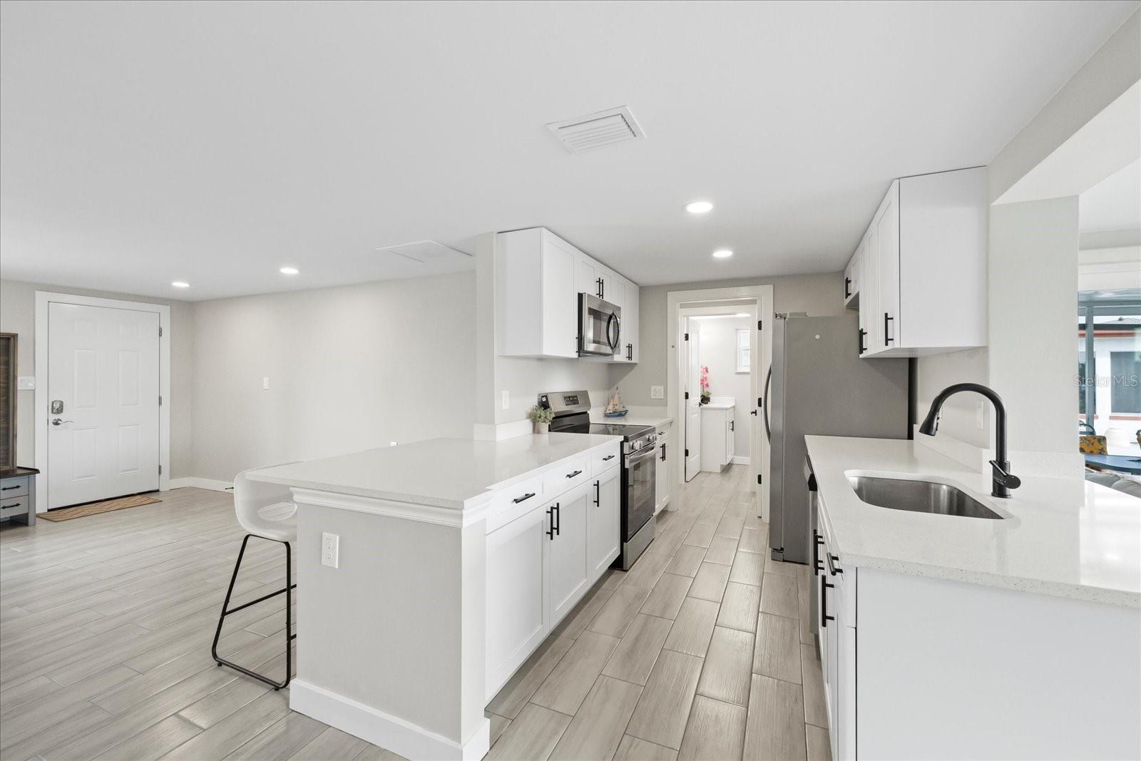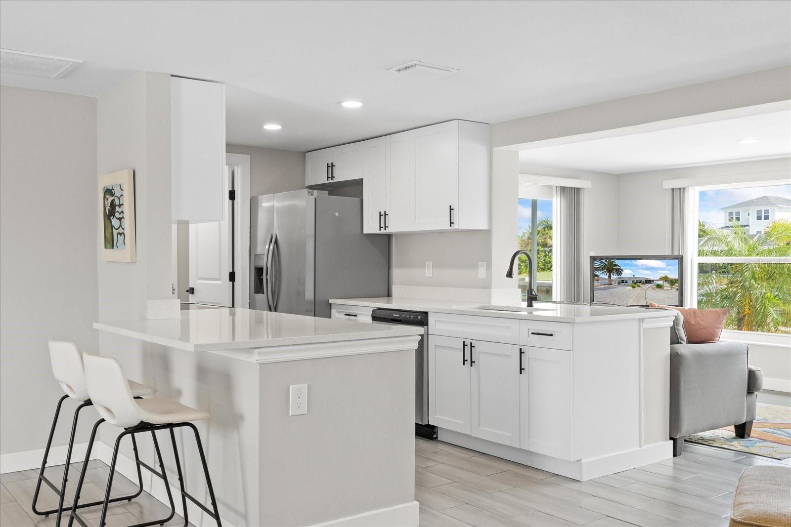 This is your opportunity to purchase this completely rebuilt home on the water. This 3 bedroom 2 bath beauty has been tastefully completed and is ready for your enjoyment, move in ready, including the furnishings, which are negotiable. No expenses have been spared. Great opportunity to buy this stunning home that the owner has tastefully completed. The Roof Maxx has a 5 year warranty and all new plumbing out to the street. This home also includes seawall, with huge concrete deck, and floating dock. Home has never been occupied.