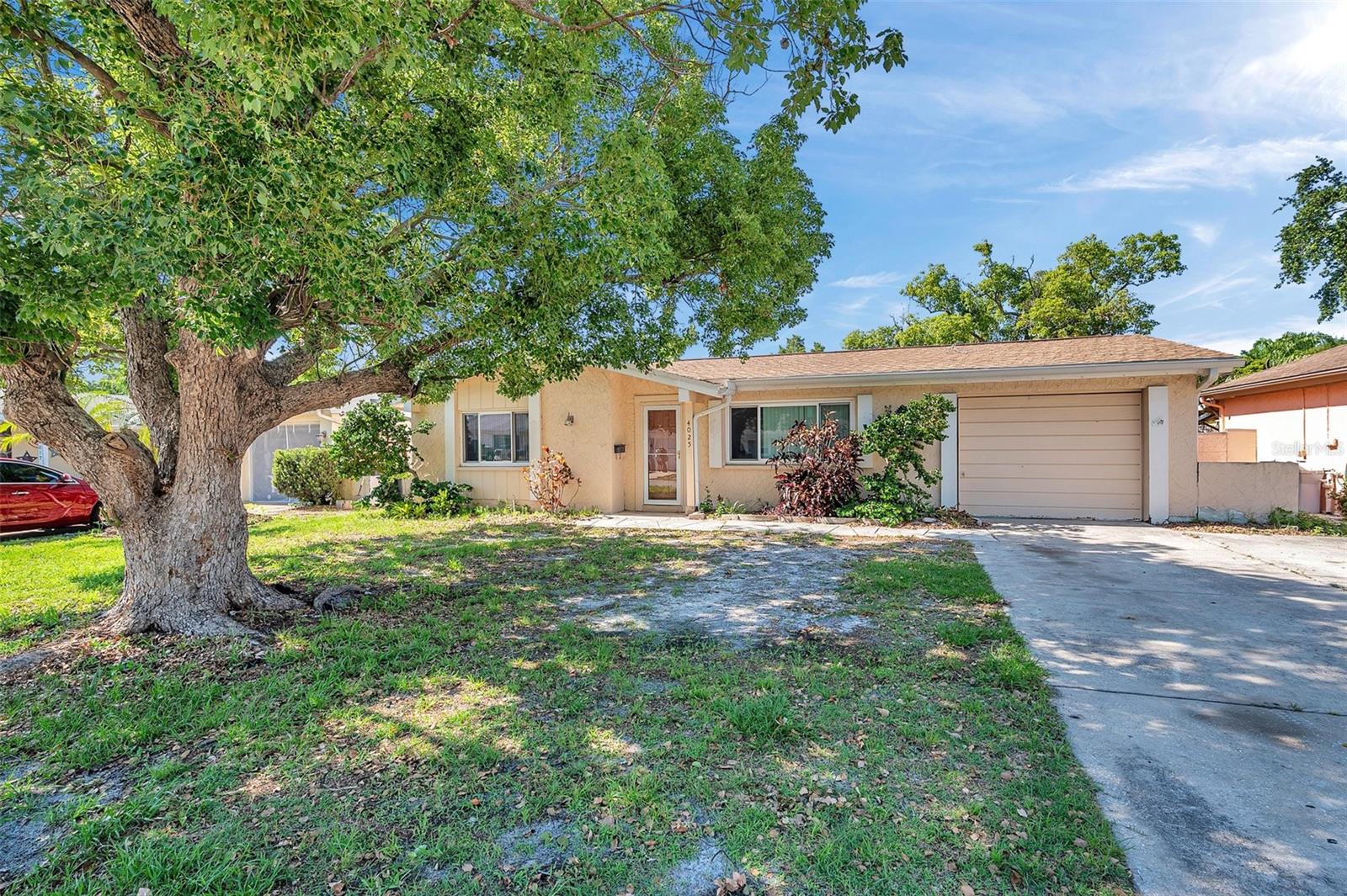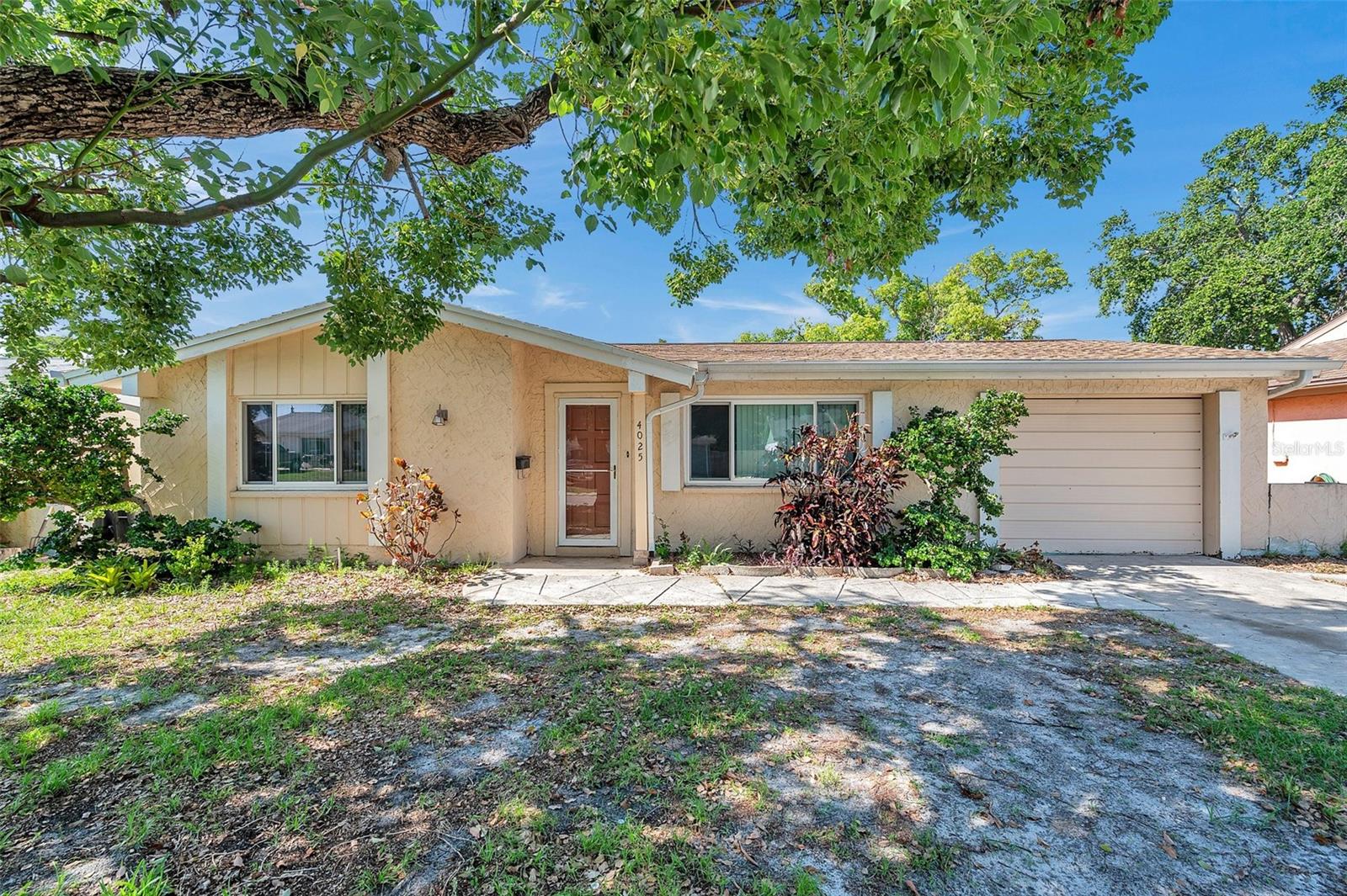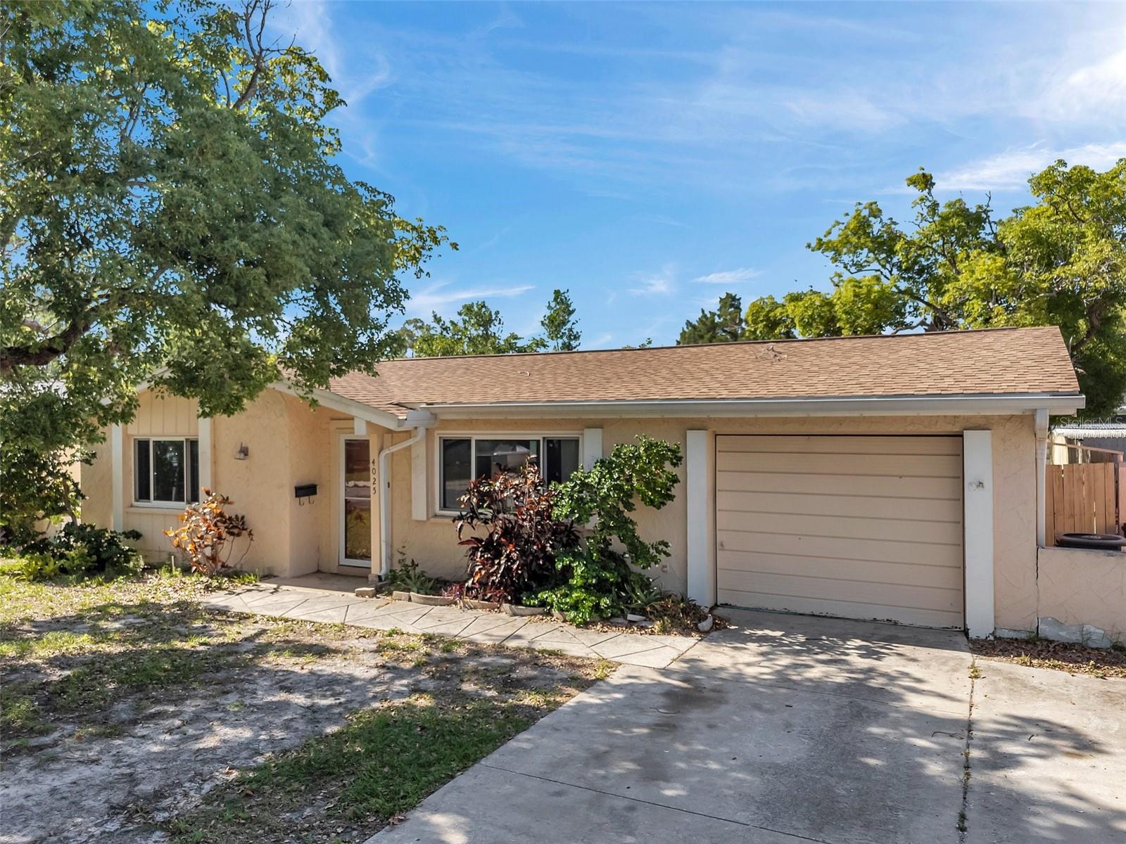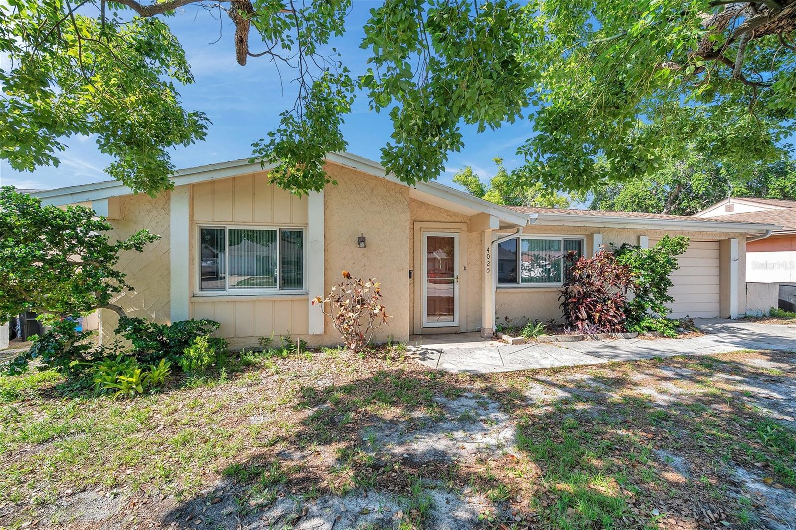 WELCOME TO YOUR SWEET NEW HOME at 4025 Stratfield Dr, New Port Richey in sunny FL. This LOVELY home features 2 bedrooms (EASILY can be 3 bedrooms), 1.5 bathrooms & 1 car garage located in a NO HOA, NO CDD & NO FLOOD ZONE. Key exterior features are long paved double-wide driveway, carriage lights, fenced back yard & easy breezy tropical landscaping including a MAJESTIC shade tree in the front yard. Though this home can benefit from cosmetic updates, the house systems have been replaced with proper county permits: AC installed 2019, roof installed 11/2016 & DOUBLE-PANE, IMPACT RESISTANT, THERMAL TINTED, LOW E WINDOWS installed in 7/2017. Furthermore, the electrical panel was replaced in 5/2017. As you step inside, you'll LOVE the OPEN FLOOR PLAN consisting of the kitchen, dinette, dining & living rooms! The NEUTRAL ceramic tile floors in the open areas ILLUMINATE the interior making the home feel larger & brighter. The living room has a neat built-in wall shelf while the dinette has a pendant light & 1/2 wall wood panel accent. The SPACIOUS kitchen features a stainless steel fridge, range & range vent as well as a double sink, ceramic tile backsplash, pantry closet & solid wood cabinets with an expansive laminate counter. The BEAUTIFUL dining room has a BRICK feature wall with a pair of vintage spherical wall sconces placed on either side of the wood mantle. The dining room leads to the MASSIVE 24 ft long BONUS ROOM that can EASILY be the primary bedroom as it already has a built-in closet with mirrored sliding doors. Even with the 3rd bedroom conversion, there is STILL PLENTY OF ROOM to enjoy a family room within this large bonus room space & there is a door to exit to the backyard. At the front of the home, you'll find the primary bedroom which can accommodate king-size furniture & has a cedar closet with mirrored closet doors. The second bedroom is comfortable in size & also features a cedar closet with mirrored doors. The main bathroom consists of a vanity, toilet & shower/tub combination. In the OVERSIZED garage, you will find the half bathroom, laundry, automatic garage door opener, attic access & side door exit. MORE SWEET features include custom blinds on some of the windows, newer 6-panel interior doors, rain gutters & a PRIVATE backyard where you can design your DREAM OASIS. Location is PERFECT near schools, restaurants, shopping plazas, medical facilities, places of worship, beaches & tourist attractions. MAKE THIS YOUR FUTURE HOME!