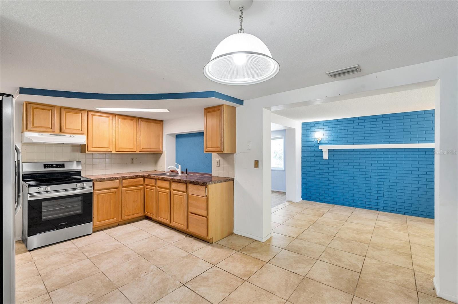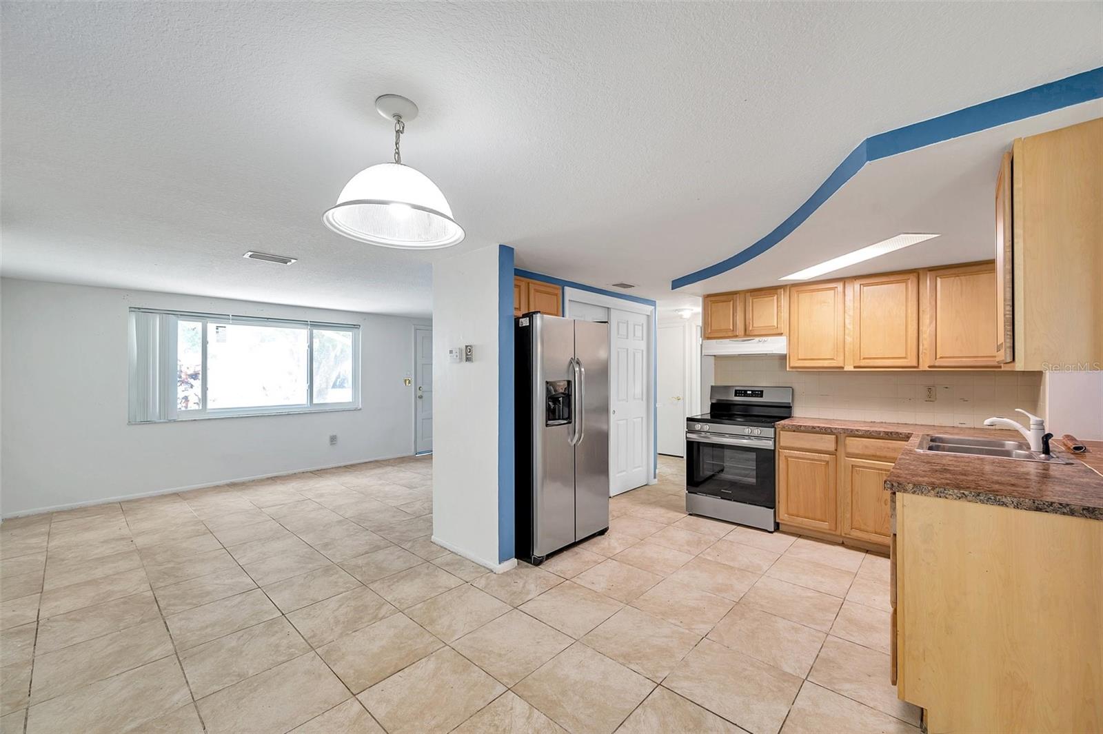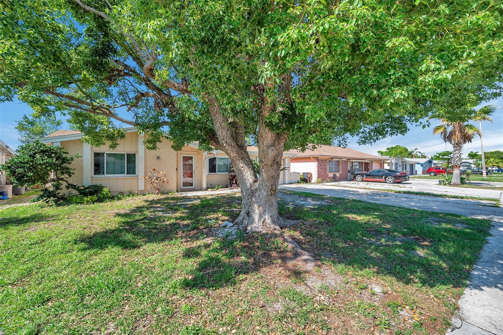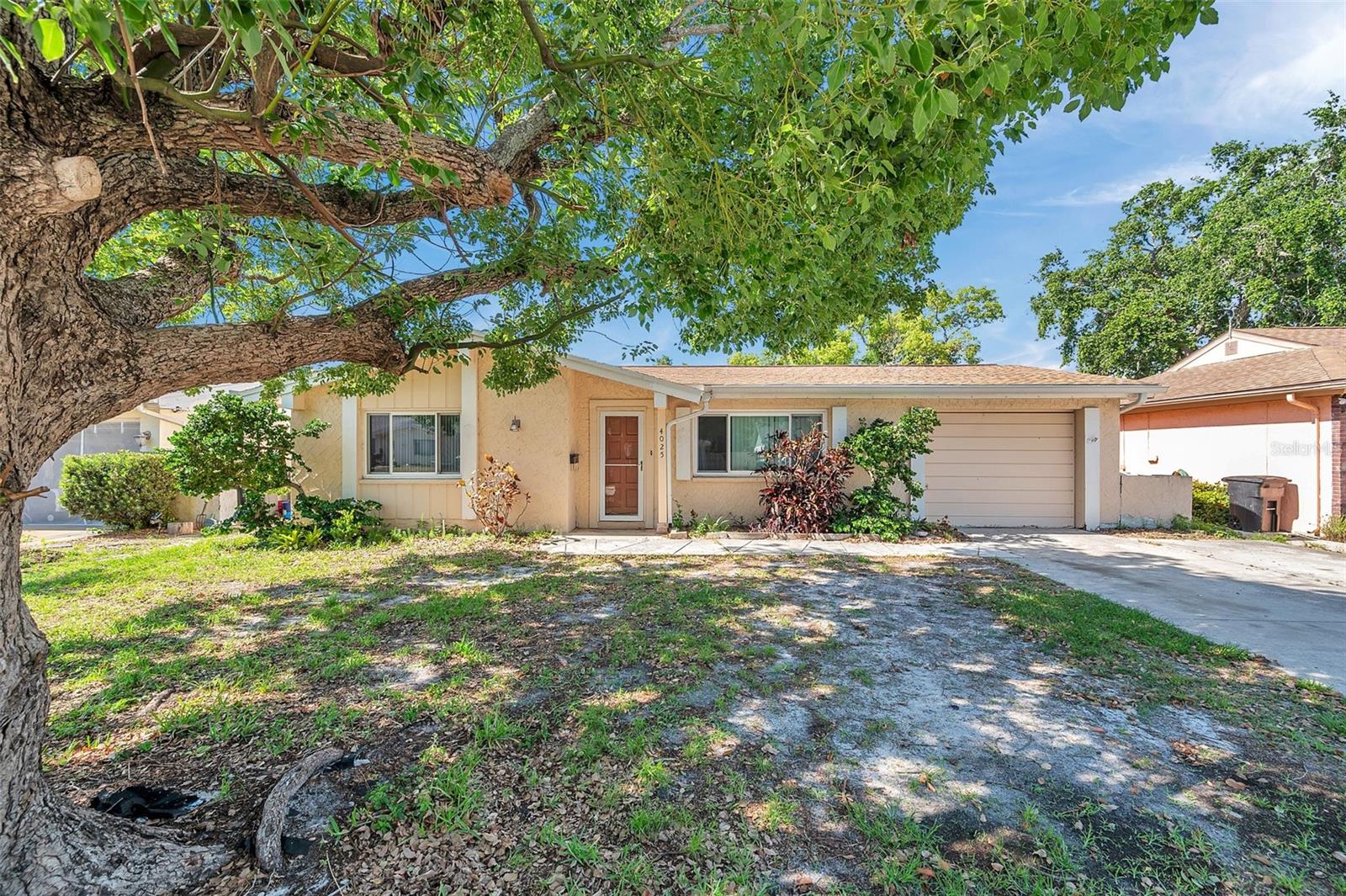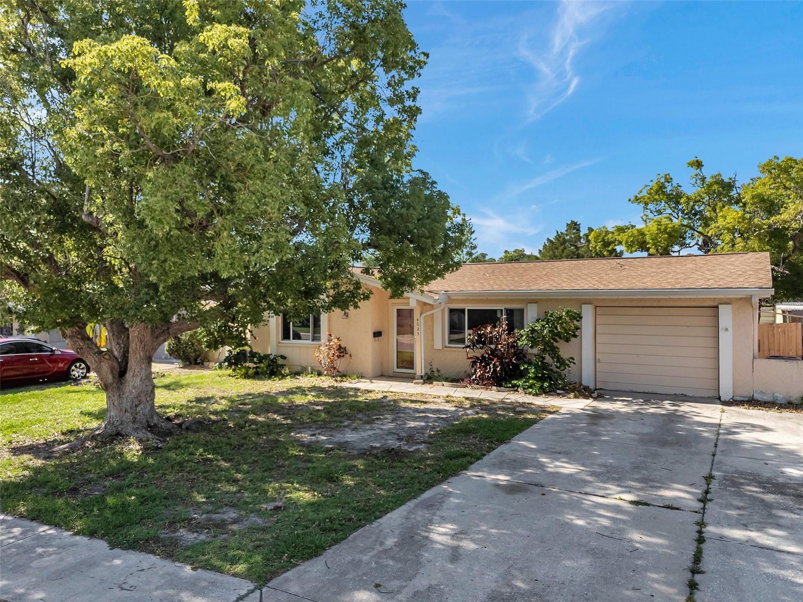 WELCOME TO YOUR SWEET NEW HOME at 4025 Stratfield Dr, New Port Richey in sunny FL. This LOVELY home features 2 bedrooms (EASILY can be 3 bedrooms), 1.5 bathrooms & 1 car garage located in a NO HOA, NO CDD & NO FLOOD ZONE. Key exterior features are long paved double-wide driveway, carriage lights, fenced back yard & easy breezy tropical landscaping including a MAJESTIC shade tree in the front yard. Though this home can benefit from cosmetic updates, the house systems have been replaced with proper county permits: AC installed 2019, roof installed 11/2016 & DOUBLE-PANE, IMPACT RESISTANT, THERMAL TINTED, LOW E WINDOWS installed in 7/2017. Furthermore, the electrical panel was replaced in 5/2017. As you step inside, you'll LOVE the OPEN FLOOR PLAN consisting of the kitchen, dinette, dining & living rooms! The NEUTRAL ceramic tile floors in the open areas ILLUMINATE the interior making the home feel larger & brighter. The living room has a neat built-in wall shelf while the dinette has a pendant light & 1/2 wall wood panel accent. The SPACIOUS kitchen features a stainless steel fridge, range & range vent as well as a double sink, ceramic tile backsplash, pantry closet & solid wood cabinets with an expansive laminate counter. The BEAUTIFUL dining room has a BRICK feature wall with a pair of vintage spherical wall sconces placed on either side of the wood mantle. The dining room leads to the MASSIVE 24 ft long BONUS ROOM that can EASILY be the primary bedroom as it already has a built-in closet with mirrored sliding doors. Even with the 3rd bedroom conversion, there is STILL PLENTY OF ROOM to enjoy a family room within this large bonus room space & there is a door to exit to the backyard. At the front of the home, you'll find the primary bedroom which can accommodate king-size furniture & has a cedar closet with mirrored closet doors. The second bedroom is comfortable in size & also features a cedar closet with mirrored doors. The main bathroom consists of a vanity, toilet & shower/tub combination. In the OVERSIZED garage, you will find the half bathroom, laundry, automatic garage door opener, attic access & side door exit. MORE SWEET features include custom blinds on some of the windows, newer 6-panel interior doors, rain gutters & a PRIVATE backyard where you can design your DREAM OASIS. Location is PERFECT near schools, restaurants, shopping plazas, medical facilities, places of worship, beaches & tourist attractions. MAKE THIS YOUR FUTURE HOME!