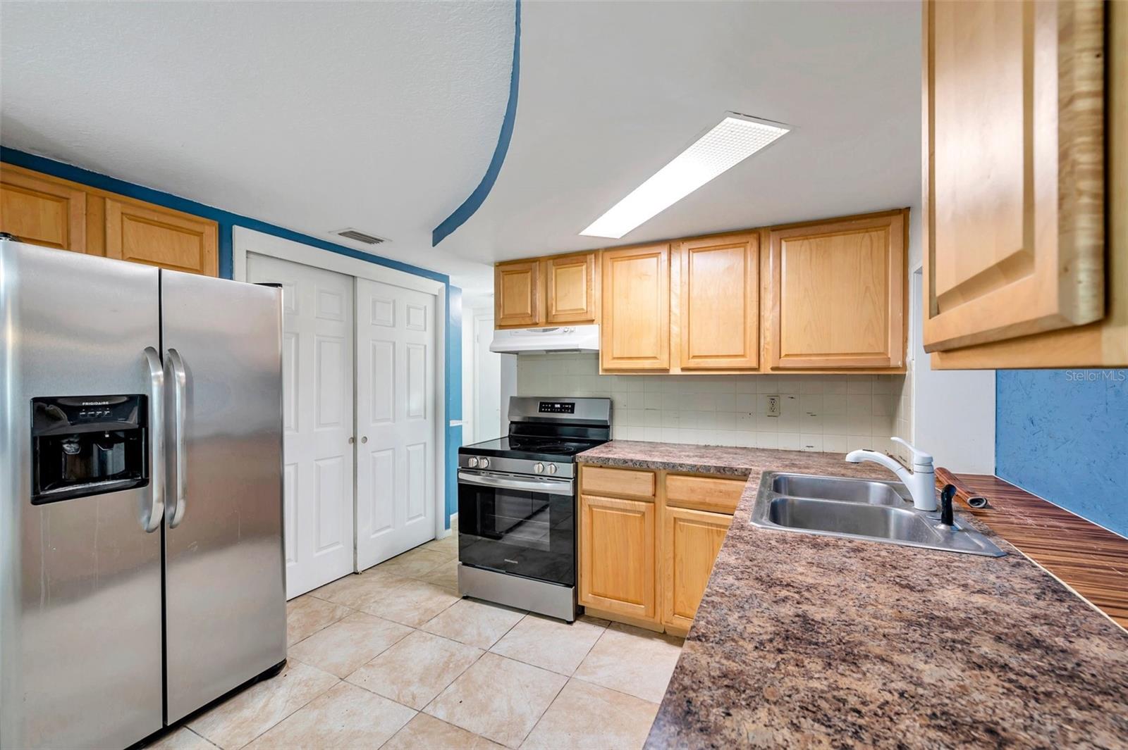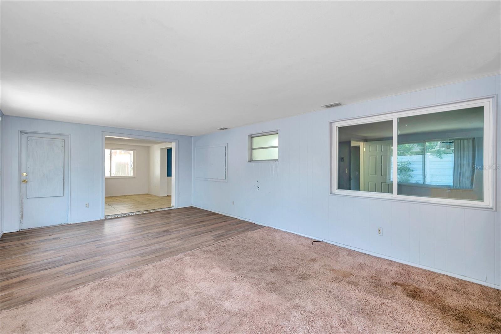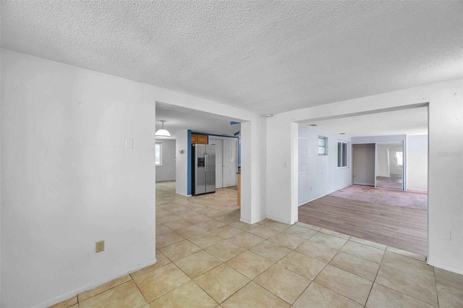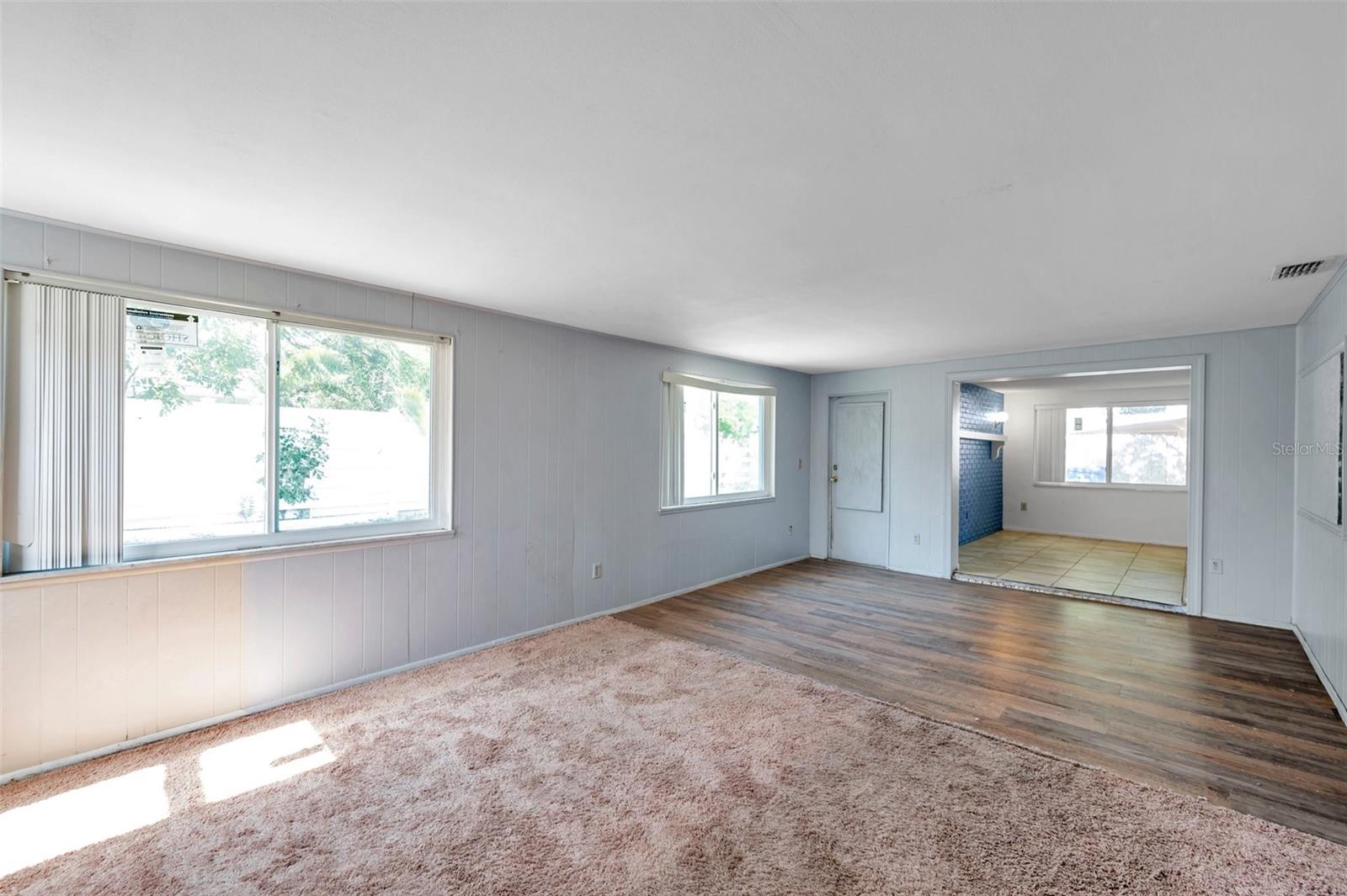 WELCOME TO YOUR SWEET NEW HOME at 4025 Stratfield Dr, New Port Richey in sunny FL. This LOVELY home features 2 bedrooms (EASILY can be 3 bedrooms), 1.5 bathrooms & 1 car garage located in a NO HOA, NO CDD & NO FLOOD ZONE. Key exterior features are long paved double-wide driveway, carriage lights, fenced back yard & easy breezy tropical landscaping including a MAJESTIC shade tree in the front yard. Though this home can benefit from cosmetic updates, the house systems have been replaced with proper county permits: AC installed 2019, roof installed 11/2016 & DOUBLE-PANE, IMPACT RESISTANT, THERMAL TINTED, LOW E WINDOWS installed in 7/2017. Furthermore, the electrical panel was replaced in 5/2017. As you step inside, you'll LOVE the OPEN FLOOR PLAN consisting of the kitchen, dinette, dining & living rooms! The NEUTRAL ceramic tile floors in the open areas ILLUMINATE the interior making the home feel larger & brighter. The living room has a neat built-in wall shelf while the dinette has a pendant light & 1/2 wall wood panel accent. The SPACIOUS kitchen features a stainless steel fridge, range & range vent as well as a double sink, ceramic tile backsplash, pantry closet & solid wood cabinets with an expansive laminate counter. The BEAUTIFUL dining room has a BRICK feature wall with a pair of vintage spherical wall sconces placed on either side of the wood mantle. The dining room leads to the MASSIVE 24 ft long BONUS ROOM that can EASILY be the primary bedroom as it already has a built-in closet with mirrored sliding doors. Even with the 3rd bedroom conversion, there is STILL PLENTY OF ROOM to enjoy a family room within this large bonus room space & there is a door to exit to the backyard. At the front of the home, you'll find the primary bedroom which can accommodate king-size furniture & has a cedar closet with mirrored closet doors. The second bedroom is comfortable in size & also features a cedar closet with mirrored doors. The main bathroom consists of a vanity, toilet & shower/tub combination. In the OVERSIZED garage, you will find the half bathroom, laundry, automatic garage door opener, attic access & side door exit. MORE SWEET features include custom blinds on some of the windows, newer 6-panel interior doors, rain gutters & a PRIVATE backyard where you can design your DREAM OASIS. Location is PERFECT near schools, restaurants, shopping plazas, medical facilities, places of worship, beaches & tourist attractions. MAKE THIS YOUR FUTURE HOME!