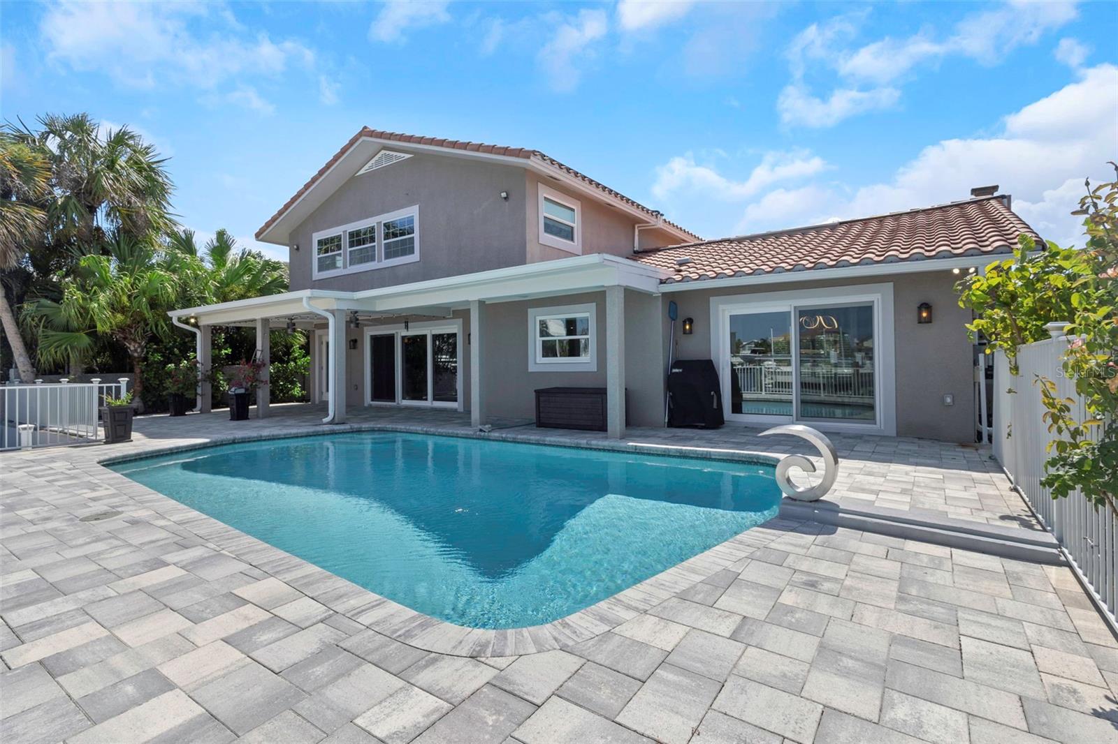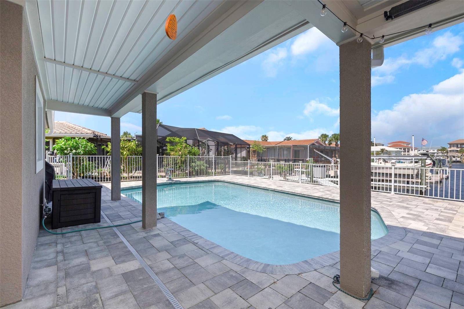 HELLO GORGEOUS!! Live every day like you are on vacation in this SPECTACULAR WATERFRONT PARADISE with unmatched luxury finishes! Luxurious Waterfront Retreat with Premium Upgrades, DIRECT GULF ACCESS & Spectacular Sunsets. Move-in ready and meticulously remodeled, this exceptional 4-bedroom, 4-bath WATERFRONT home in the coveted Gulf Harbors/Flor-A-Mar community offers over 3,100 square feet of refined coastal living. With deep-water Gulf access, premium finishes throughout, and spectacular sunset views over the water, this property is a rare find for those seeking both elegance and adventure. Enjoy 70 feet of waterfront, a private dock with 14,000 lb BOAT LIFT, JET SKI DOCK, and quick access to world-class fishing, sandbars, and open Gulf waters—ideal for the ultimate boating lifestyle. Inside, the home impresses with an open-concept layout, soaring ceilings, and energy-efficient LED lighting. The chef-inspired kitchen features custom KraftMaid cabinetry, granite countertops, Samsung Bespoke AI Appliances, a walk-in pantry by California Closet Design, KitchenAid appliances, an induction cooktop, and an oversized peninsula with bar seating—perfect for entertaining. The great room dazzles with a marble fireplace and professionally installed surround sound audio system (also installed in the family room). This home offers TWO LUXURIOUS OWNER'S RETREATS, one on each floor. The main-level suite includes a spa-style bathroom with a gorgeous 25 sq ft walk-in shower, quartz countertops, and a solid wood closet system. The top-floor owners retreat showcases a marble en-suite bath and custom walk in closet. The second bath features a soaking tub, custom tile shower, dual vanity with granite counter tops. Upstairs also includes two additional bedrooms (or one plus a bonus room/home office) with generous closet space. Additional highlights include tray ceilings, crown molding, solid-core doors, plantation shutters, luxury vinyl plank and tile flooring, and smart home integrations (smart locks, thermostats, Ring system, and automated sprinklers). Impact-rated windows and doors THROUGHOUT home. Two OLED LG 4K TVs are included. Step outside to your private backyard oasis, where you’ll enjoy a resurfaced saltwater pool featuring a cascading waterfall spout, updated pool equipment, solar heater, paver patio, ambient LED lighting, outdoor ceiling fans and nightly displays of vibrant sunsets over the water. The dock features, composite decking, stainless hardware, and dedicated electric/water hookups—ready for your boat and water toys. All major systems have been updated, including electrical, plumbing, HVAC vents, hot water heater, insulation, impact-rated windows and doors, and a new 8-zone irrigation system. Garage includes a polyaspartic floor, new pvc baseboards and custom storage. No HOA. No CDD fees. INCLUDES ACCESS TO PRIVATE BEACH! Located in one of New Port Richey’s most desirable waterfront communities with great neighbors and unmatched boating access. Ask for the full list of high-end upgrades—too many to list! This is your chance to own a truly turn-key luxury waterfront home with dual owner’s suites and unforgettable sunsets. MOVE IN READY...This is YOUR HOME!