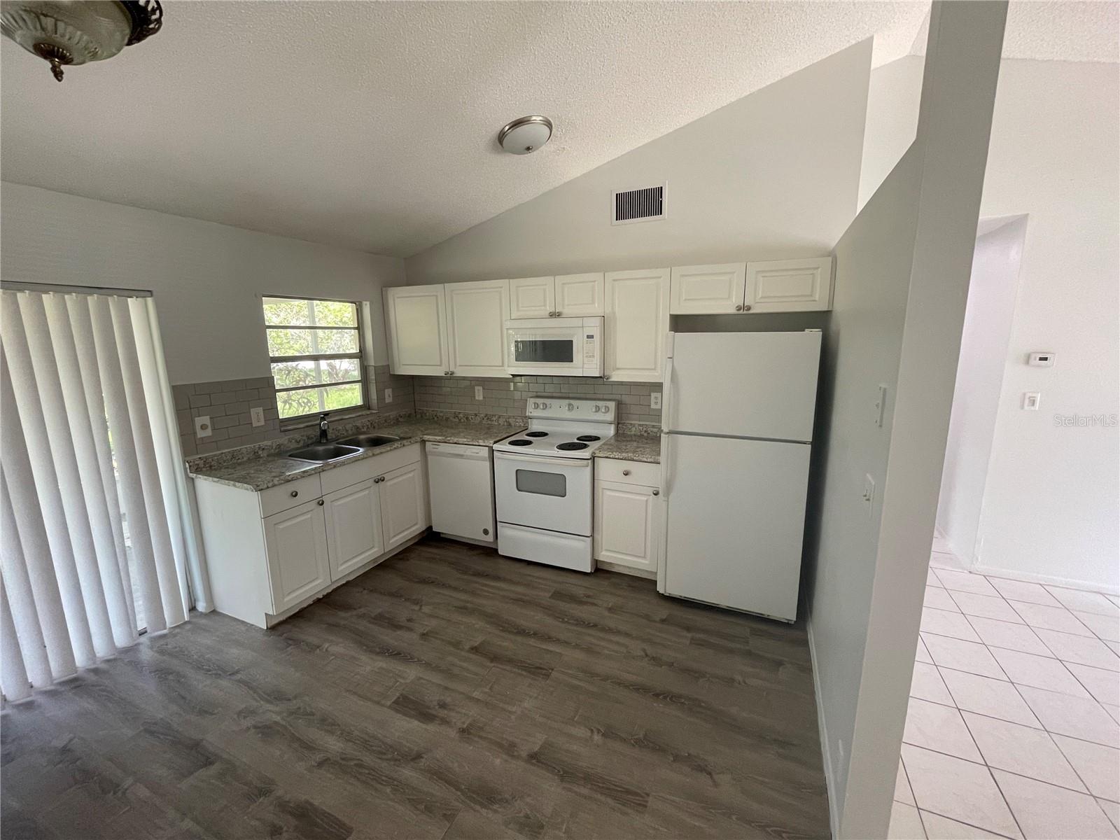 Welcome to this charming 2-bedroom, 2-bathroom, 1-car garage corner-lot home beautifully situated on a tranquil freshwater canal. Boasting a fresh painted exterior and interior creating a bright, inviting atmosphere. Vaulted ceilings add an airy, spacious feel to the main living area. Stepping into the kitchen with shaker style cabinets, tiled back splash and laminate floors. Unwind on the screened-in patio as you enjoy peaceful canal views and the sounds of nature while you're sipping morning coffee or relaxing in this outdoor space. The primary bedroom boasts a large built-in closet and an ensuite bathroom with a step-in shower. The second bedroom also features a large closet as well. Conveniently located just off Seven Springs Blvd and near SR-54, Just minutes from schools, shopping, dining, and commuter routes. Don’t miss this opportunity to own a cozy, move-in-ready gem in one of the more desirable pockets of the area!