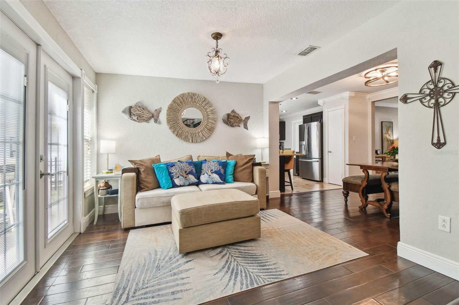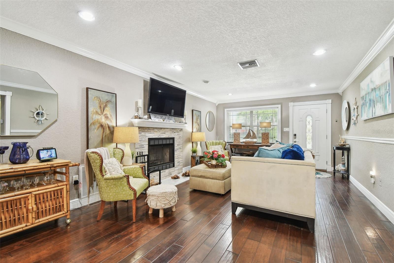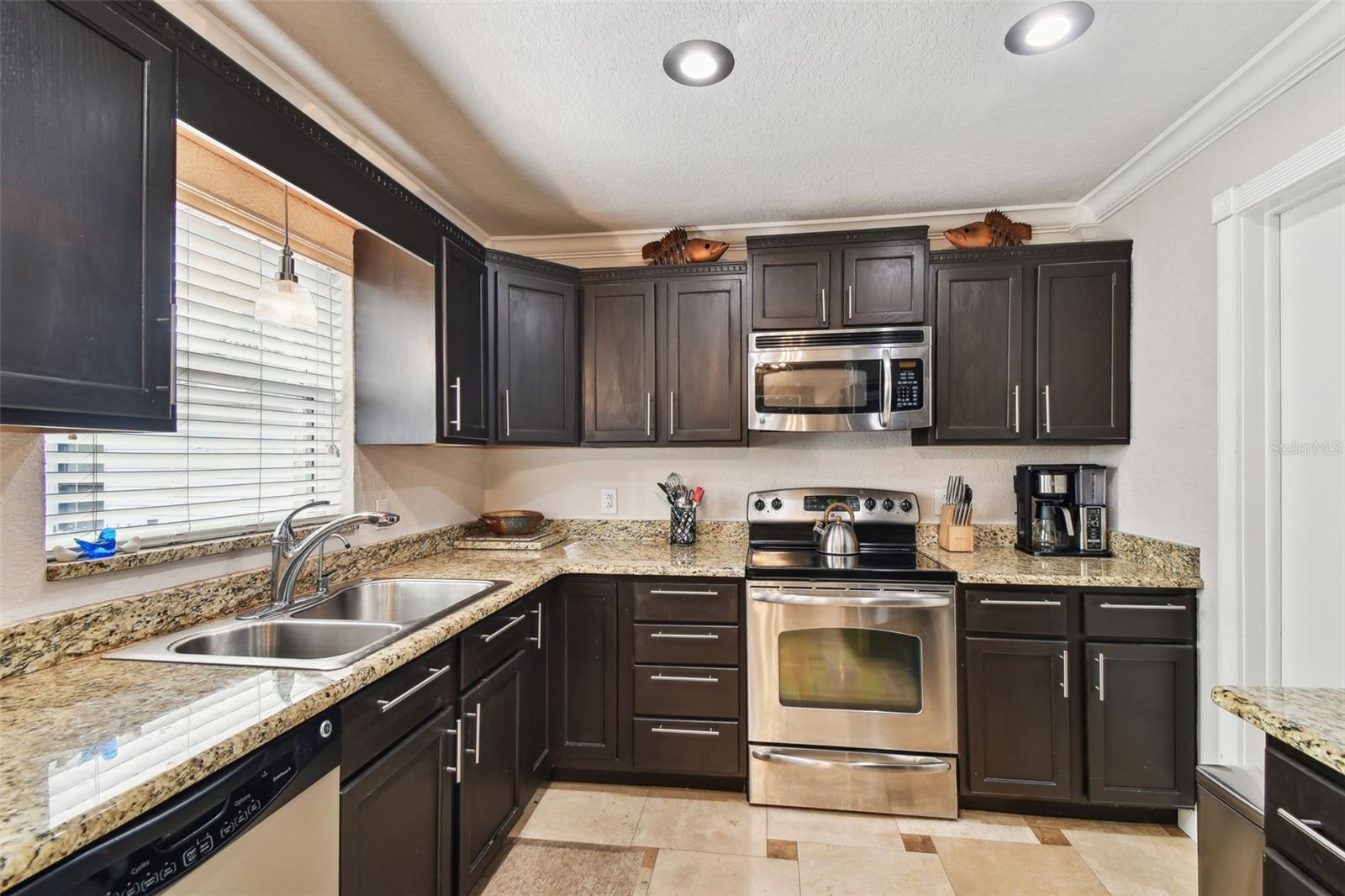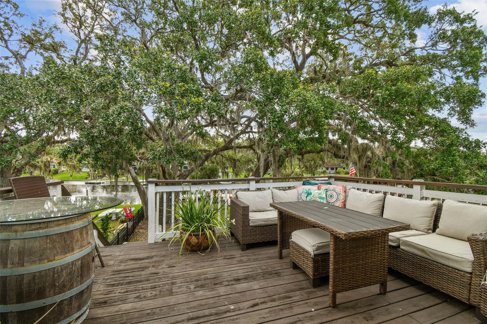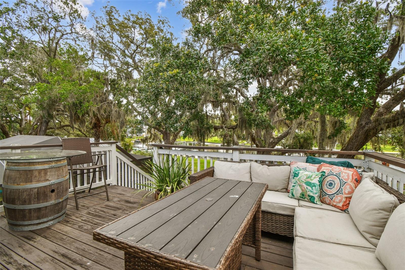 NEW ROOF (11/25). Luxury Riverfront Living in the Heart of Historic Downtown New Port Richey!!! Welcome to this exquisitely renovated waterfront residence nestled directly on the Cotee River, where modern luxury meets timeless charm. Located just steps or a golf cart ride from the vibrant shops and restaurants of Historic Downtown New Port Richey, this home offers the perfect blend of walkable lifestyle and serene waterfront living. Enjoy fishing or boating right from your own backyard oasis. Inside, the home has been thoughtfully remodeled with high-end finishes throughout, including hand-scraped Brazilian rosewood flooring, upgraded interior and exterior doors, and double-pane windows. The chef's kitchen features granite countertops, stainless steel appliances, and elegant cabinetry. All three bathrooms have been tastefully redesigned with stylish vanities, and designer fixtures. The upstairs primary suite includes all-new flooring and its own dedicated mini-split A/C system (2020), ideal for comfort during warmer months. Step out onto the refreshed second-story balcony with updated lighting and staircase access—perfect for enjoying river views. Roof (11/2025) A/C (2020), New tankless water heater (2020), New 200-amp electrical panel and service, New insulated garage door, New fencing. This rare riverfront opportunity won’t last—schedule your private showing today and experience the best of coastal Florida living. This home did not flood during the Hurricanes in 2024.