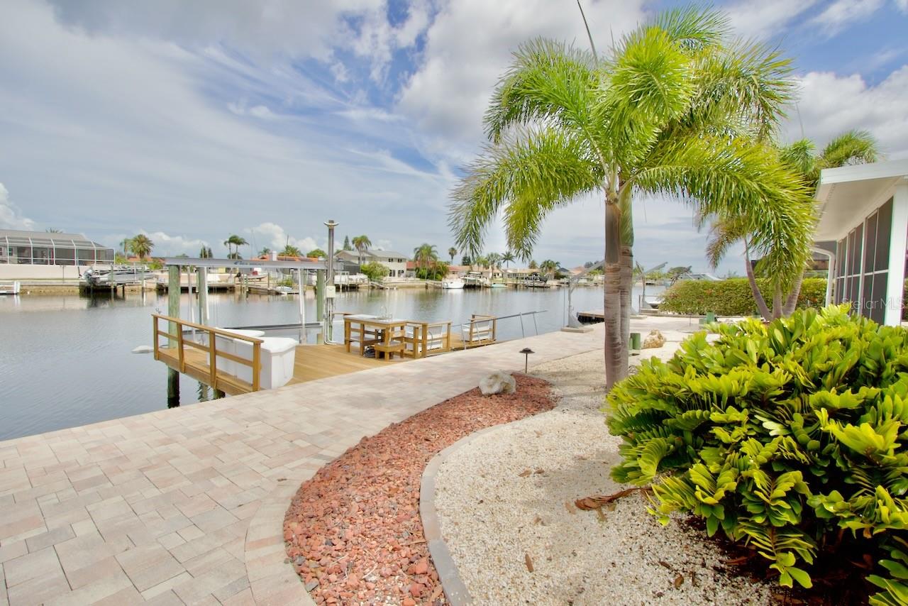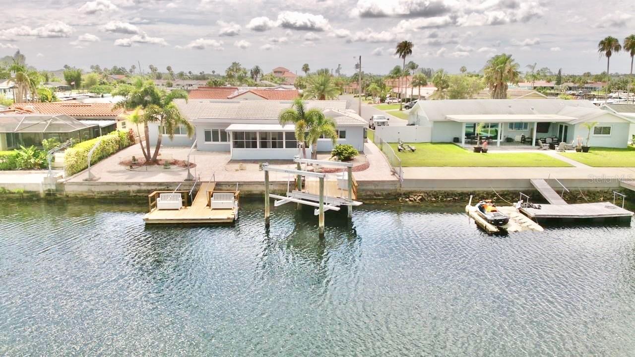 One or more photo(s) has been virtually staged. NO SHOES....NO SHIRT...NO PROBLEMS!!! WELCOME HOME TO YOUR WATERFRONT OASIS ON A DEEP WATER CHANEL WITH APPROX 5-7 MIN (OR 1 MARGARITA) BOAT RIDE TO OPEN WATER IN THE GULF OF AMERICA!!! Come enjoy the sun and the sand with a drink in your hand...with no bottom!!! This almost 2500sqft luxury waterfront home comes with all the bells and whistles and is ready for you to call it home!! As you enter this 3 bed 2 bath complete custom home that offers plenty of additional living space that could easily convert to another bedroom if needed you are welcomed with bright vibrant colors and a kitchen that looks like it came our of a magazine!!! This home literally has everything you could want from low maintenance custom flooring throughout, a 13,000lb boat lift complete with power and a wash down, a separate floating dock, lots of waterfront windows in the bedrooms and living areas, and much much more. The owners suite is absolutely spectacular with no details spared with a well sized bedroom and a bathroom that would make even a 5 star hotel consider remodeling. The home has a very open floorpan as it was redesigned and opened up to ensure that no matter where you are....you can see the water. The additional bedrooms share a hall bathroom that is just as stunning as the primary suite bath. There is an extra Florida style room that could be used as a flex space for storing your fishing gear, tackle or scuba equipment, another bedroom, bar area, craft room, game room, or office space. Set in a golf cart-friendly community with private beach access and a civic center, this home offers both relaxation and recreation. Impeccably maintained, it boasts low-maintenance landscaping and energy-efficient windows to keep you cool during the summer months. Perfect for the seasonal owner or anyone who wants to keep their AC bill low and yard maintenance to a minimum so you can invest more of your time and money into being out and enjoying life on the open waters. Park your vehicles with ease in the pavered driveway and large 2-car garage. Crown molding adorns every room, while a designer electric fireplace adds warmth to the formal living space. Kick back and unwind in your screened lanai where you can watch the dolphins playing, the Pelicans flying, and the fish jumping. The exclusive Gulf Harbors Beach Club with its white sand shore and cabanas, picnic tables, benches, beach chairs, and BBQs for spectacular sunsets is just a block away; membership is optional at just $200.00 yr/per household. The proximity to the Gulf of America makes this property ideal for boating enthusiasts. Excellent fishing, diving, water sports, shelling, Island exploring right out your door! Conveniently located near golf, dining, shopping, and open waters, this coastal haven, and fisherman's paradise provide a lifestyle beyond compare. Don't miss the opportunity to make this your dream home. Schedule your showing today and experience the luxury of waterfront living!