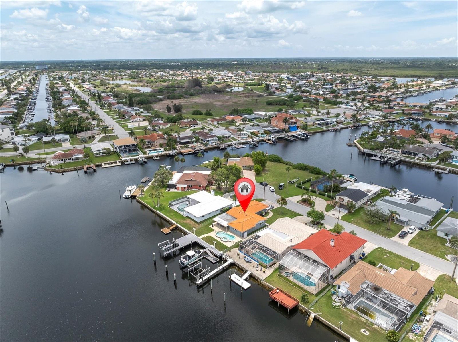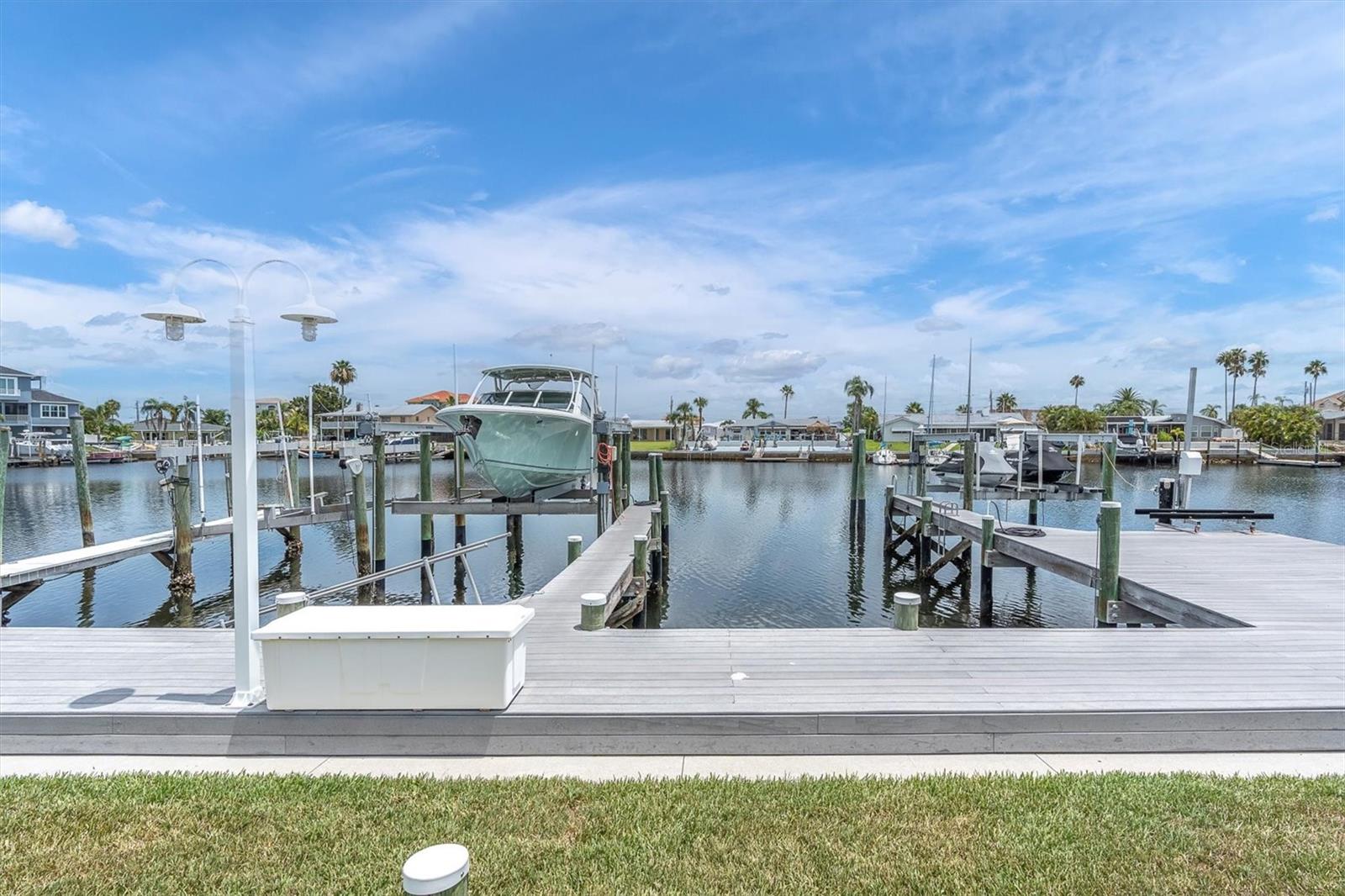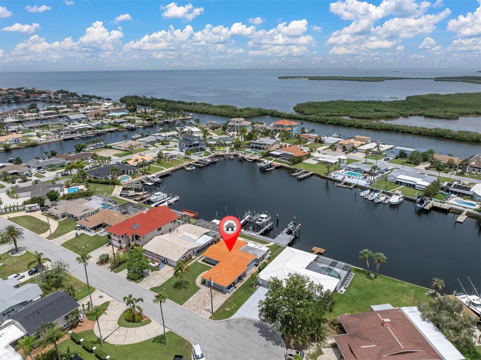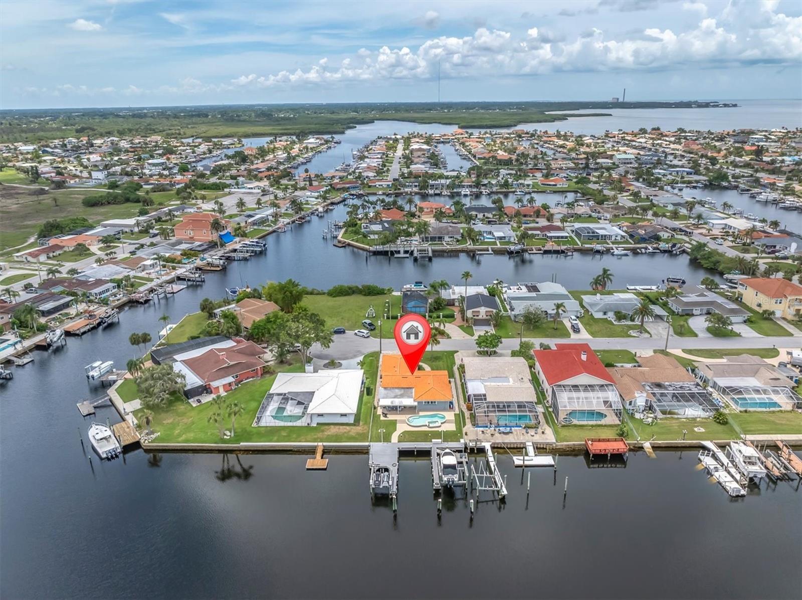 Calling all boating enthusiasts – this is a boater’s dream come true. Located on one of the widest and deepest canals in Flor-A-Mar/Gulf Harbors, this beautifully updated 3-bedroom, 2-bath, 2-car garage pool home offers direct access to the Gulf of Mexico in just minutes. Situated on a quiet cul-de-sac, this home is one of the few properties that can accommodate nearly any size vessel or sailboat with both a 16,000 lb and a 10,000 lb boat lift, as well as a 12x15 floating dock and large deck space. The dock is equipped with water and a new electric system for the lift (2020), fob-controlled operation, and two green underwater lights that create a stunning evening waterfront atmosphere. The backyard is a private retreat, featuring a 2019 saltwater pool with a spillover spa and a brick paver lanai. An outdoor shower adds convenience after a day on the water, and the entire yard is fenced for added privacy. The driveway has been widened and enhanced with pavers, providing additional space and curb appeal. Inside, the home boasts an open floor plan with expansive water views and travertine flooring throughout. The kitchen was refreshed in 2023 with freshly painted cabinets, new quartz countertops, stainless steel appliances, a large island, and a built-in coffee bar. A spacious laundry room is conveniently located off the kitchen. The master bathroom includes a walk-in shower and dual vanities with updated quartz countertops. The cabinets were painted in the master bathroom. The hall bath also received a full refresh in 2023, including painted cabinetry, quartz counters, and a shower update. Additional recent improvements include a new tile roof (2019), HVAC and all new ductwork (2019), tankless gas water heater (2019), whole-house Generac gas generator (2019), and electric hurricane roll shutters (2019) installed on hurricane-rated windows. In 2025, the home received a new front door and all new interior doors. This home is located in an active boating community with an optional membership to the exclusive Gulf Harbors Beach Club and Civic Center. With over 1,900 square feet of living space and every major system updated, this home offers the perfect blend of waterfront luxury and peace of mind. If you’re seeking true deep-water access and a home ready to enjoy from day one, welcome to Gulf Harbors. Schedule a showing today...must see to appreciate!