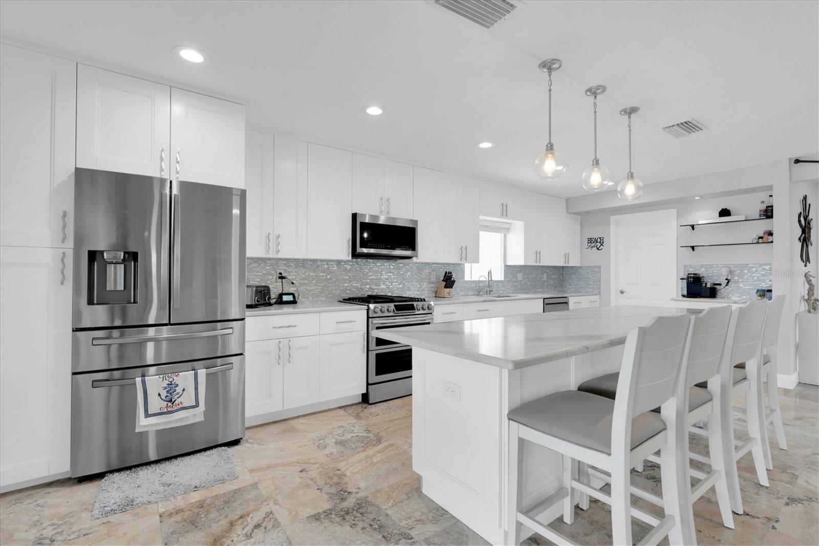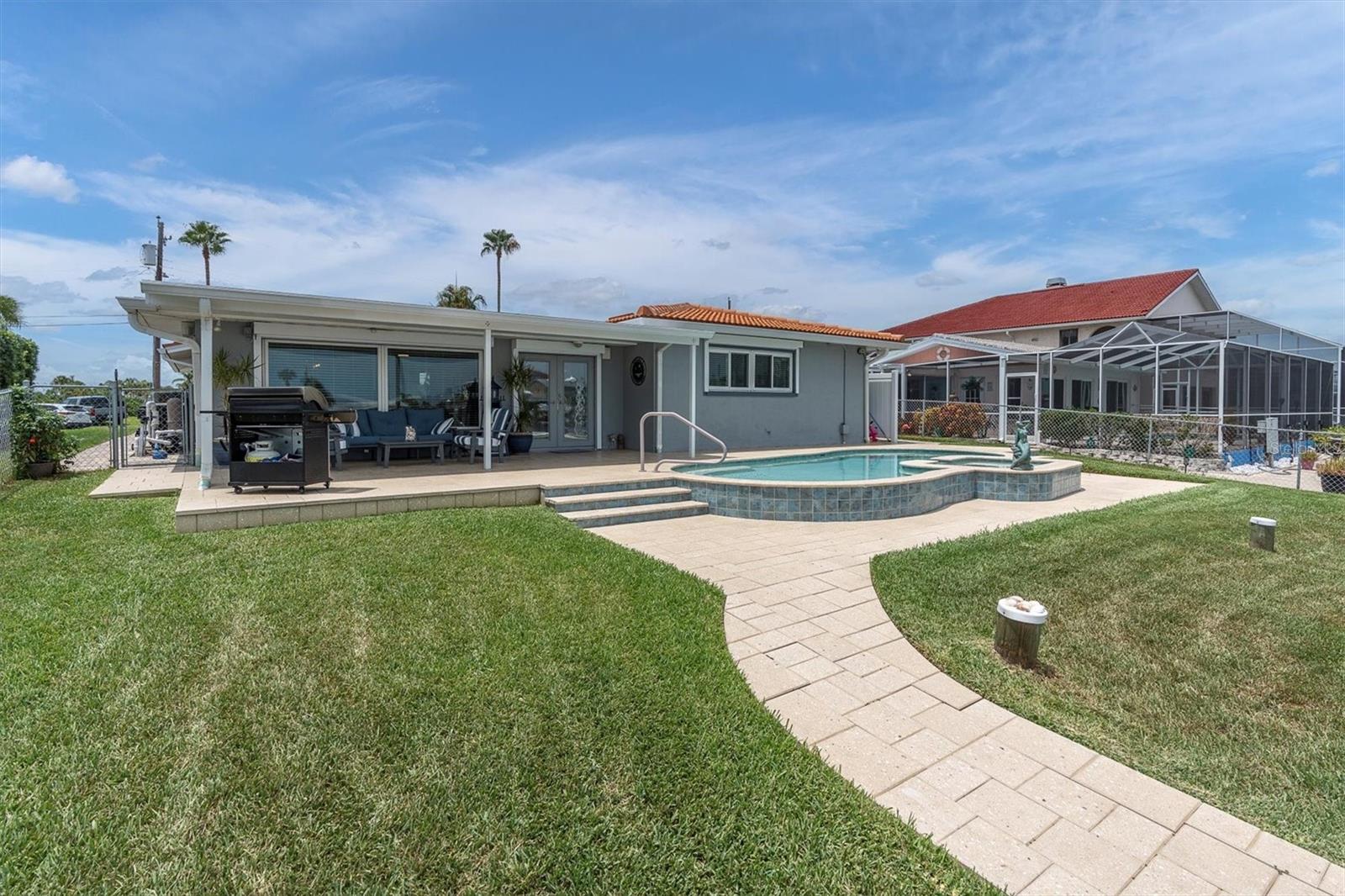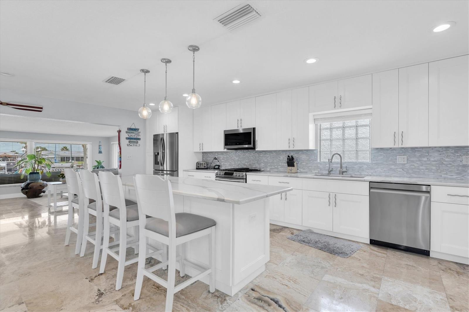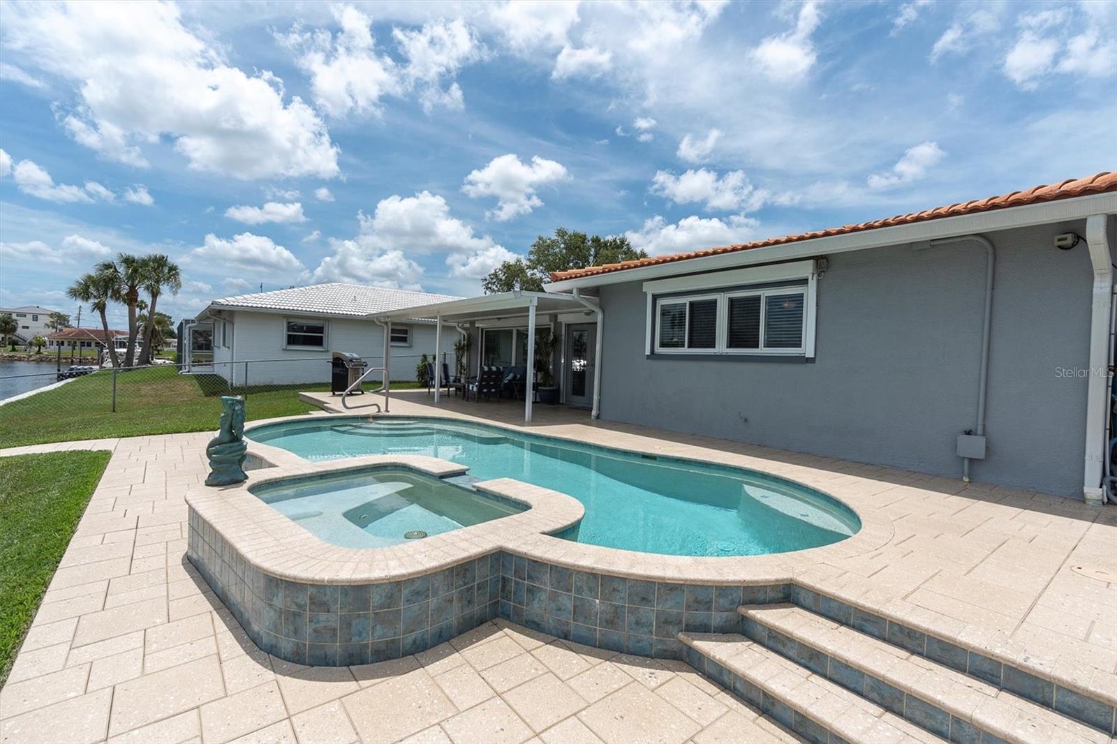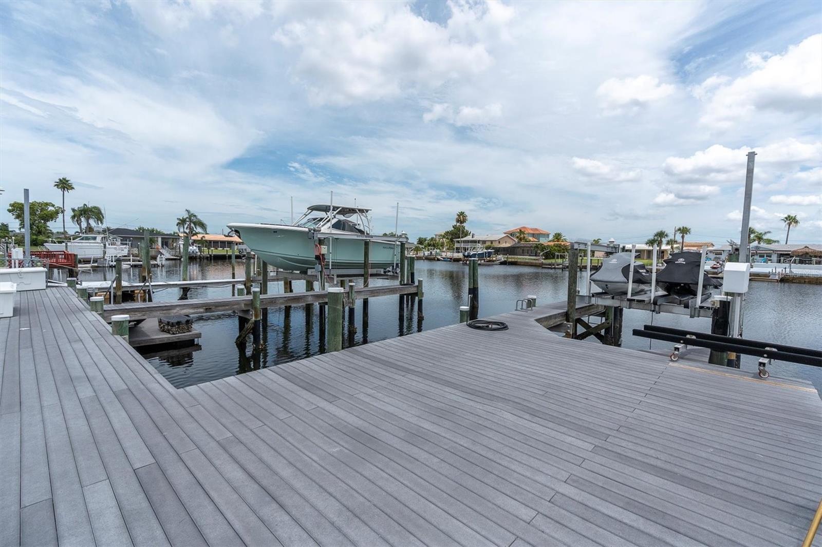 Calling all boating enthusiasts – this is a boater’s dream come true. Located on one of the widest and deepest canals in Flor-A-Mar/Gulf Harbors, this beautifully updated 3-bedroom, 2-bath, 2-car garage pool home offers direct access to the Gulf of Mexico in just minutes. Situated on a quiet cul-de-sac, this home is one of the few properties that can accommodate nearly any size vessel or sailboat with both a 16,000 lb and a 10,000 lb boat lift, as well as a 12x15 floating dock and large deck space. The dock is equipped with water and a new electric system for the lift (2020), fob-controlled operation, and two green underwater lights that create a stunning evening waterfront atmosphere. The backyard is a private retreat, featuring a 2019 saltwater pool with a spillover spa and a brick paver lanai. An outdoor shower adds convenience after a day on the water, and the entire yard is fenced for added privacy. The driveway has been widened and enhanced with pavers, providing additional space and curb appeal. Inside, the home boasts an open floor plan with expansive water views and travertine flooring throughout. The kitchen was refreshed in 2023 with freshly painted cabinets, new quartz countertops, stainless steel appliances, a large island, and a built-in coffee bar. A spacious laundry room is conveniently located off the kitchen. The master bathroom includes a walk-in shower and dual vanities with updated quartz countertops. The cabinets were painted in the master bathroom. The hall bath also received a full refresh in 2023, including painted cabinetry, quartz counters, and a shower update. Additional recent improvements include a new tile roof (2019), HVAC and all new ductwork (2019), tankless gas water heater (2019), whole-house Generac gas generator (2019), and electric hurricane roll shutters (2019) installed on hurricane-rated windows. In 2025, the home received a new front door and all new interior doors. This home is located in an active boating community with an optional membership to the exclusive Gulf Harbors Beach Club and Civic Center. With over 1,900 square feet of living space and every major system updated, this home offers the perfect blend of waterfront luxury and peace of mind. If you’re seeking true deep-water access and a home ready to enjoy from day one, welcome to Gulf Harbors. Schedule a showing today...must see to appreciate!