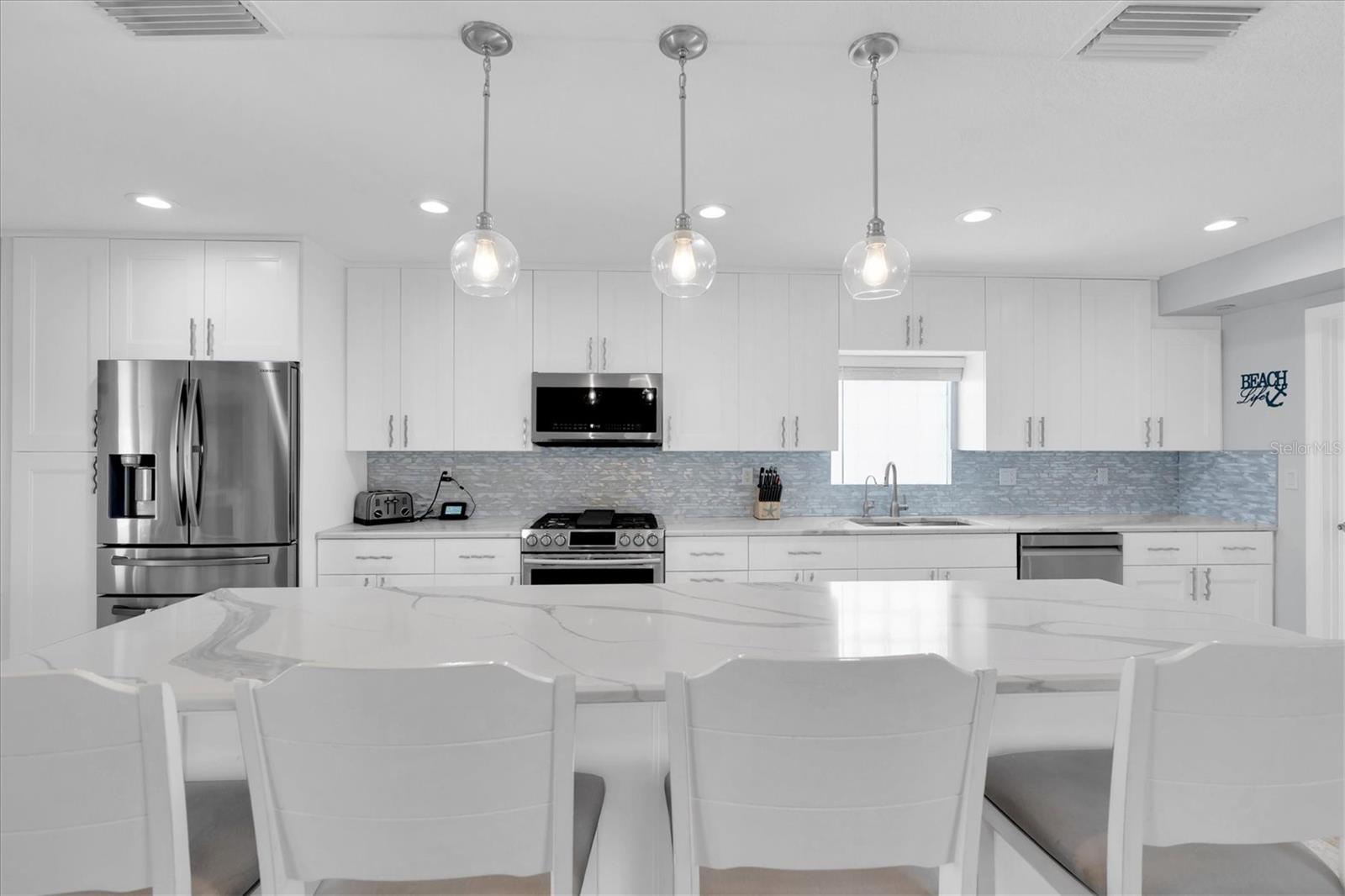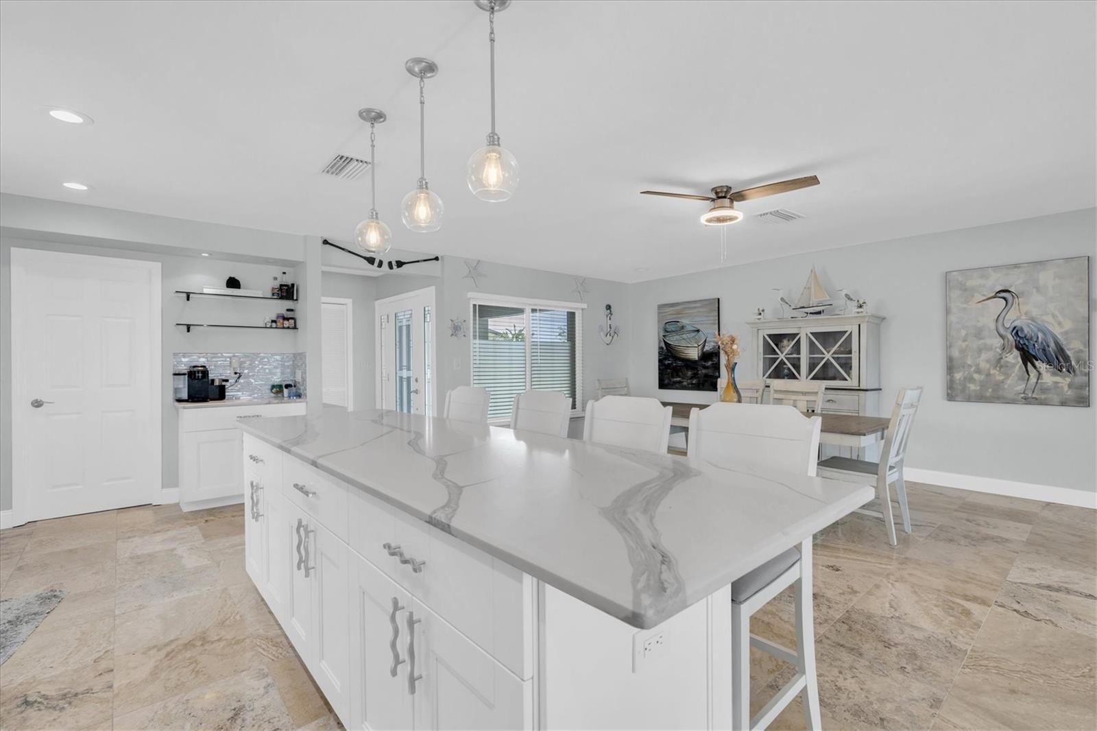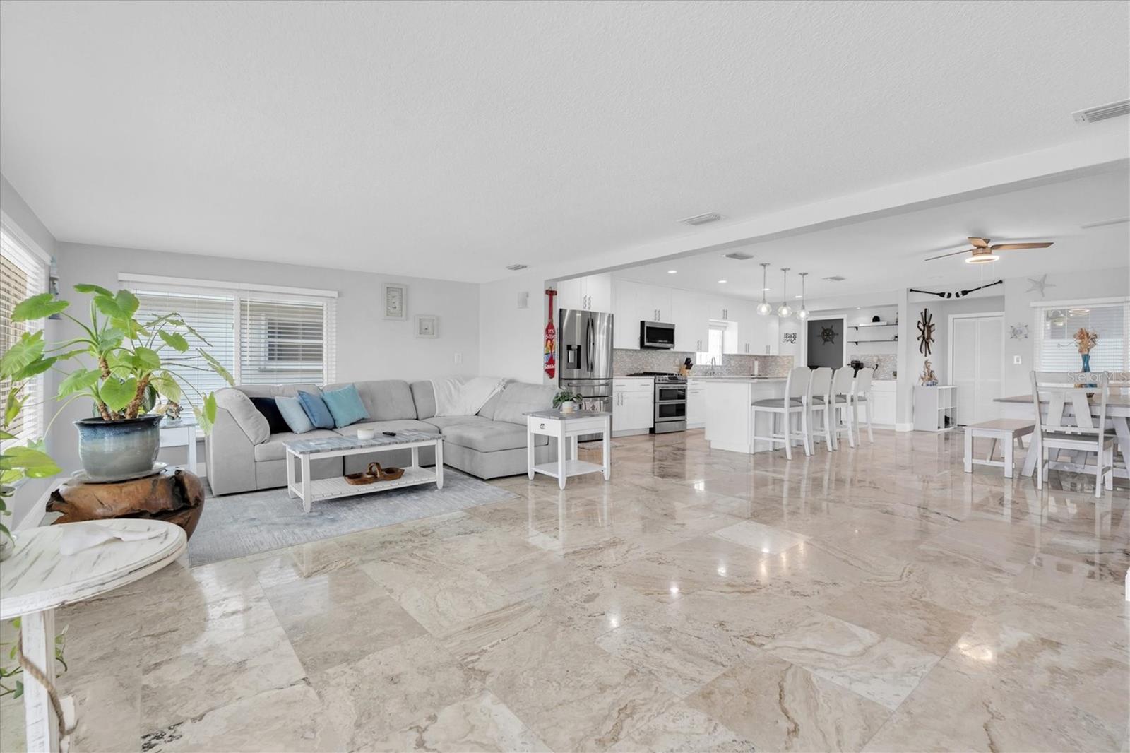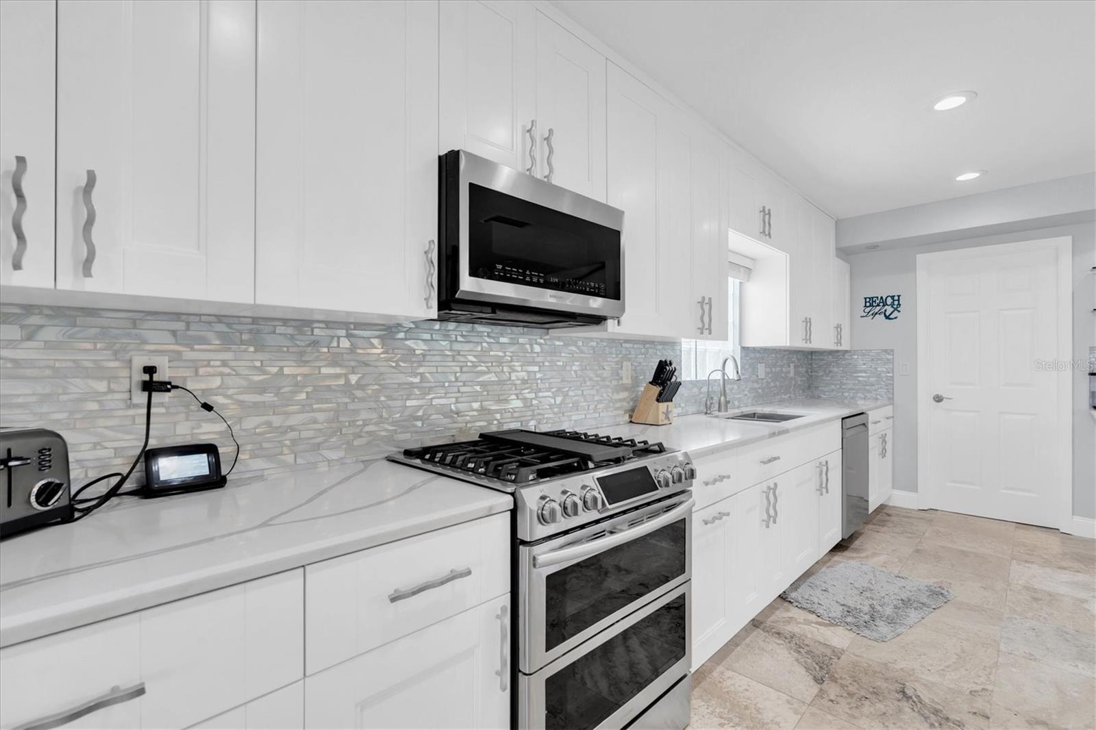 Calling all boating enthusiasts – this is a boater’s dream come true. Located on one of the widest and deepest canals in Flor-A-Mar/Gulf Harbors, this beautifully updated 3-bedroom, 2-bath, 2-car garage pool home offers direct access to the Gulf of Mexico in just minutes. Situated on a quiet cul-de-sac, this home is one of the few properties that can accommodate nearly any size vessel or sailboat with both a 16,000 lb and a 10,000 lb boat lift, as well as a 12x15 floating dock and large deck space. The dock is equipped with water and a new electric system for the lift (2020), fob-controlled operation, and two green underwater lights that create a stunning evening waterfront atmosphere. The backyard is a private retreat, featuring a 2019 saltwater pool with a spillover spa and a brick paver lanai. An outdoor shower adds convenience after a day on the water, and the entire yard is fenced for added privacy. The driveway has been widened and enhanced with pavers, providing additional space and curb appeal. Inside, the home boasts an open floor plan with expansive water views and travertine flooring throughout. The kitchen was refreshed in 2023 with freshly painted cabinets, new quartz countertops, stainless steel appliances, a large island, and a built-in coffee bar. A spacious laundry room is conveniently located off the kitchen. The master bathroom includes a walk-in shower and dual vanities with updated quartz countertops. The cabinets were painted in the master bathroom. The hall bath also received a full refresh in 2023, including painted cabinetry, quartz counters, and a shower update. Additional recent improvements include a new tile roof (2019), HVAC and all new ductwork (2019), tankless gas water heater (2019), whole-house Generac gas generator (2019), and electric hurricane roll shutters (2019) installed on hurricane-rated windows. In 2025, the home received a new front door and all new interior doors. This home is located in an active boating community with an optional membership to the exclusive Gulf Harbors Beach Club and Civic Center. With over 1,900 square feet of living space and every major system updated, this home offers the perfect blend of waterfront luxury and peace of mind. If you’re seeking true deep-water access and a home ready to enjoy from day one, welcome to Gulf Harbors. Schedule a showing today...must see to appreciate!