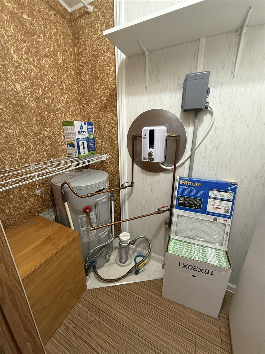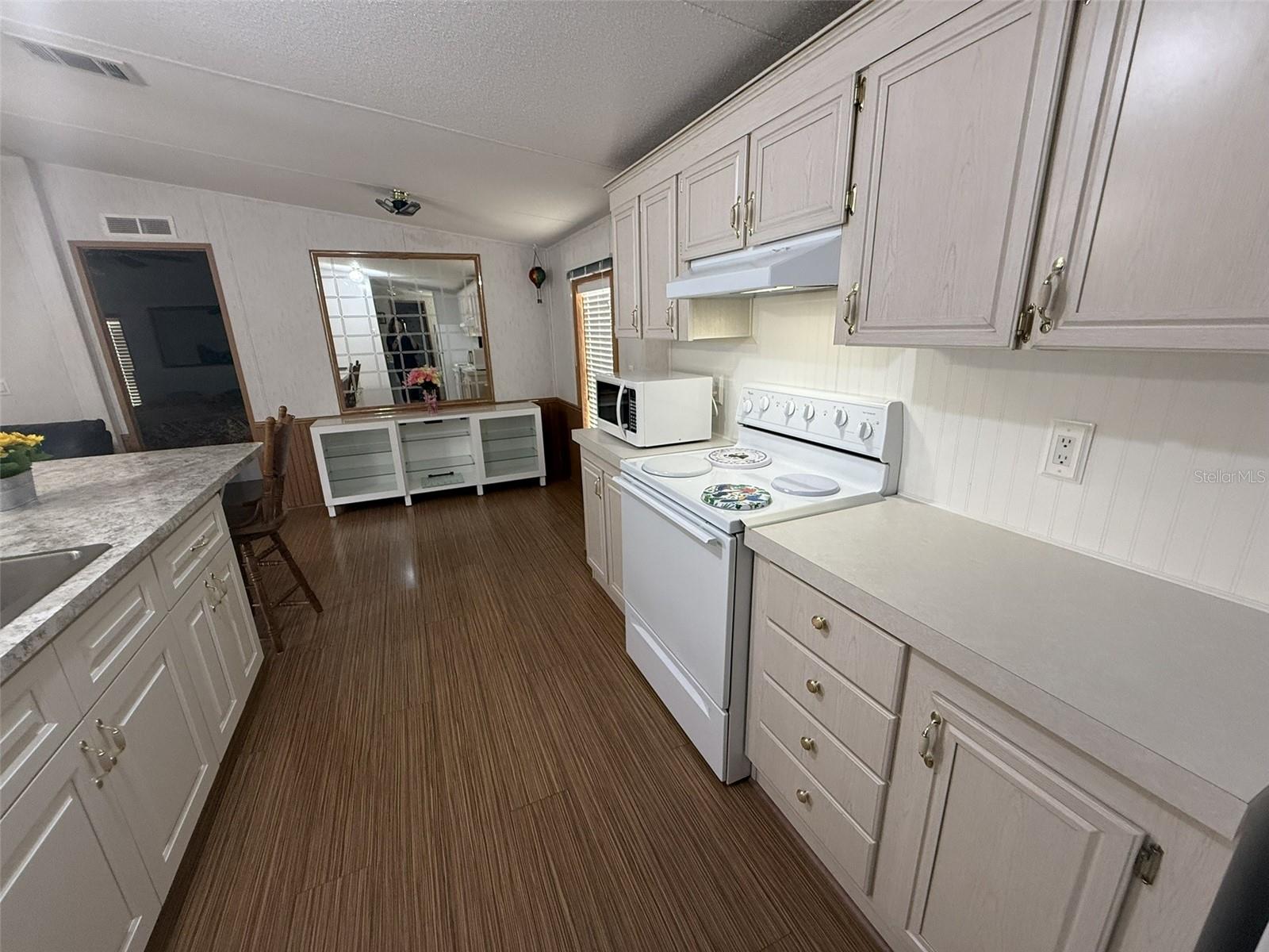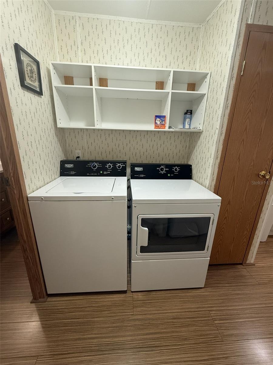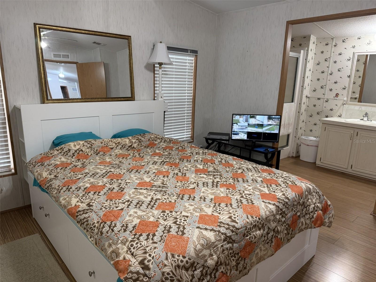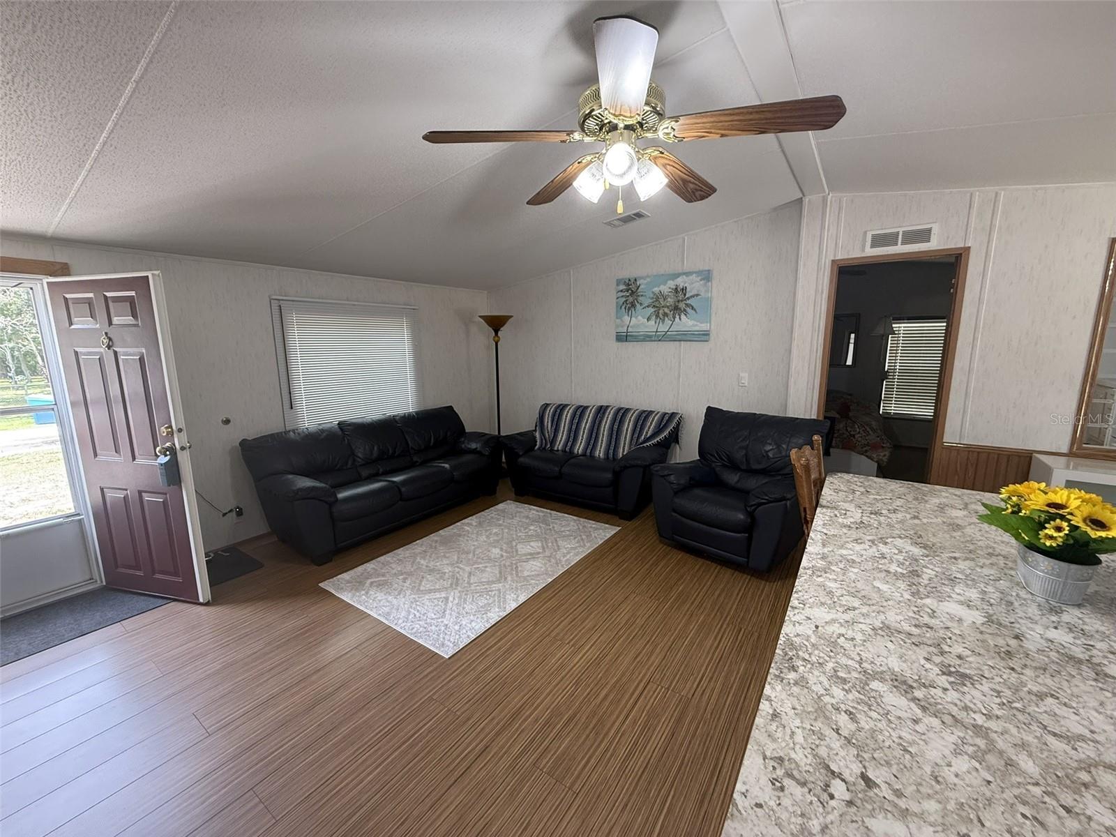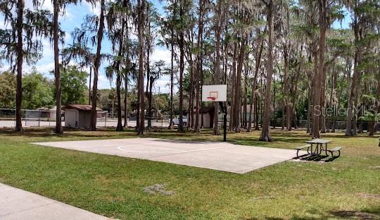 Amazing country living property! 2004 doublewide, meticulously maintained on 3 lots with wildlife galore! This home is located on a private street, NO HOA, NO FLOOD ZONE, NO CDD FEES! It has 2 bedrooms, 2 full baths, split plan with laminate flooring throughout and it's FURNISHED. Brand new roof in 2025, tankless water heater, Maytag commercial washer & dryer, cathedral ceilings with fans. Large primary bedroom has oversized walk-in closet and full bath with shower. As you walk out the back door, there is a huge concrete deck with steps down another concrete pad, a well pump shed, storage shed and a 1 car detached garage, all fenced. Property is set up with 7 Lorex security cameras and wired for 16, all viewable from the monitor inside and on phone. 3 of the camera pan/tilt/zoom. You have access from the front and street in back. Great for storage RV, boat, work trucks, etc. Moon Lake offers a spring fed lake, a park with picnic tables, playground, free public boat ramp and free boat parking! BRING YOUR BOATS AND JET SKIS!