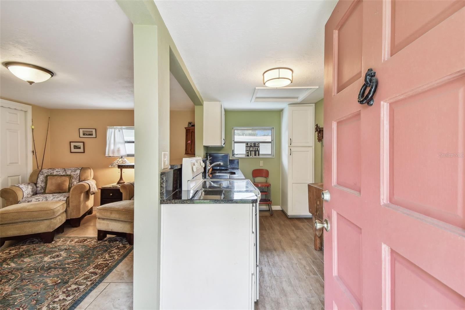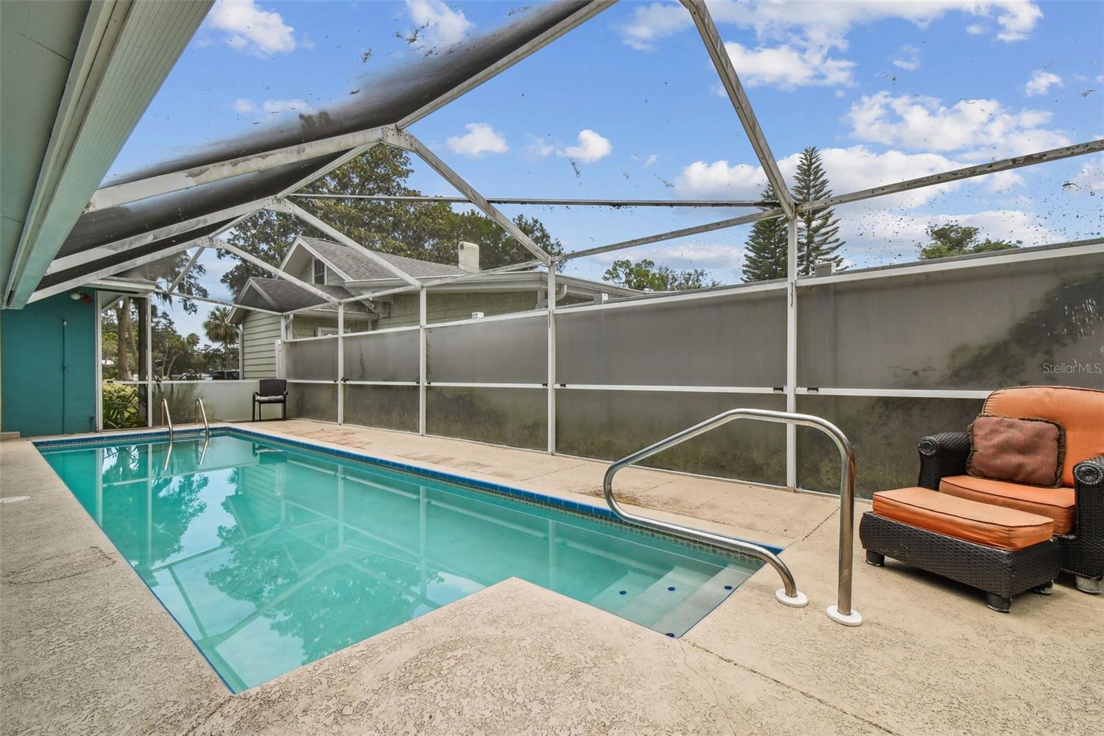 Historic waterfront pool home with dock and legal guest house in downtown New Port Richey. Set on Grand Boulevard on one of the largest lots in the district, this 4 bedroom, 3 bath estate has never flooded and offers direct Cotee River access with a private dock, boat lift, and deep-water connection. A rare Sears Roebuck “Osborn” model, the residence showcases original hardwoods, wide baseboards, vintage glass windows, and a show-stopping stone fireplace. The main home features a spacious dining room, sun-filled enclosed porch overlooking the river, and an updated kitchen with granite counters and modern appliances. The primary suite opens to the pool and includes an ensuite bath and interior laundry; secondary bedrooms offer tall ceilings and abundant natural light. Outdoors is a true Florida oasis with lush landscaping, screened pool, private courtyard, and majestic oaks for shade and privacy. The permitted detached in-law suite/guest house/ADU provides a full kitchen, living room, bedroom, and bath—ideal for multigenerational living, guests, or rental income. A newer oversized 2-car garage with workshop and storage loft, gated driveway, and ample off-street parking complete the property. Enjoy walkable access to downtown shops and restaurants, golf-cart-friendly streets, and a front-row seat to historic New Port Richey living—an exceptional riverfront opportunity with character, functionality, and location. (ROOF-2012)(A/C-2013)(W/H-2013)