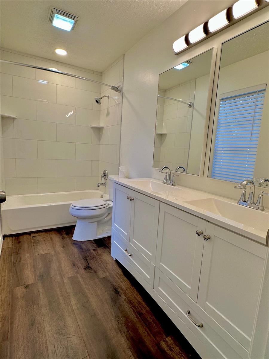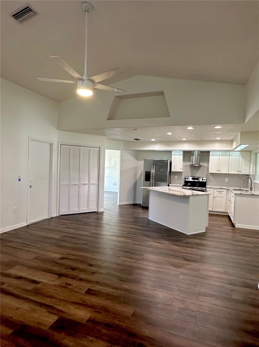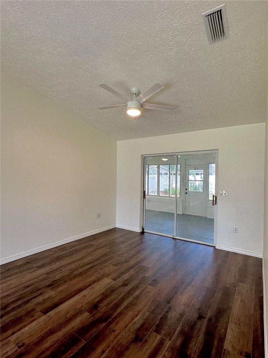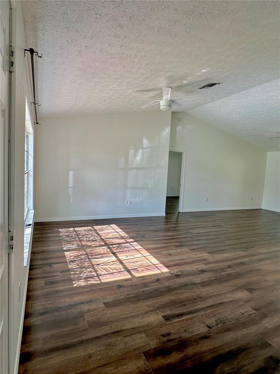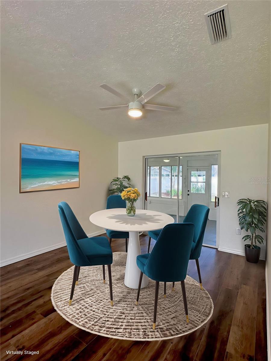 One or more photo(s) has been virtually staged. MOTIVATED SELLER!! Welcome to this beautifully updated, move-in ready home featuring 3 spacious bedrooms, 2 bathrooms, and a 2-car garage. Step inside to discover gorgeous laminate waterproof wood flooring throughout the entire home, with tile in the primary bathroom for easy maintenance. The open concept kitchen flows seamlessly into the family room and breakfast nook, creating an ideal space for entertaining and everyday living. Enjoy stainless steel appliances in the bright, modern kitchen, with quartz countertops and a center island. The formal living and dining room is filled with natural light. The home offers a large enclosed lanai with about 300 sq ft. perfect for relaxing mornings or peaceful evenings overlooking your private backyard. Abundant windows and sliding doors fill the home with sunlight, creating a warm and inviting atmosphere. This beautifully maintained property features newer air conditioning (2024), and a roof that is less than 10 years old, which will provide peace of mind for years to come. Conveniently located near schools and shopping with low HOA and no CDD fees. Don’t miss your chance to own this stunning home, schedule your private showing today!