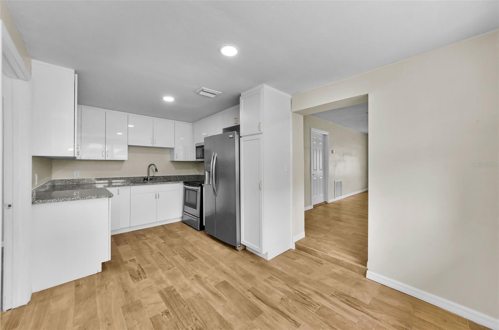 Step into this beautifully updated 3-bedroom, 2-bathroom home located on a desirable corner lot of a quiet dead-end street--just a short stroll or golf cart ride away from the vibrant heart of downtown New Port Richey, where you can enjoy a variety of restaurants, parades, and even a concert at the park! This move-in ready gem features stunning brand new wood-look tile flooring throughout, sleek newer stainless steel appliances in the modern kitchen, and a spacious layout perfect for comfortable living and entertaining. The primary suite boasts a massive walk-in closet, offering ample storage and a touch of everyday indulgence. With stylish finishes, added privacy, and a prime location near shopping, dining, and local attractions, this home truly has it all. With a new roof in 2019, new AC system and ductwork in 2023, and a brand new water heater in 2025, the home is move-in ready! Call today to set up a tour! You do not want to miss this one!