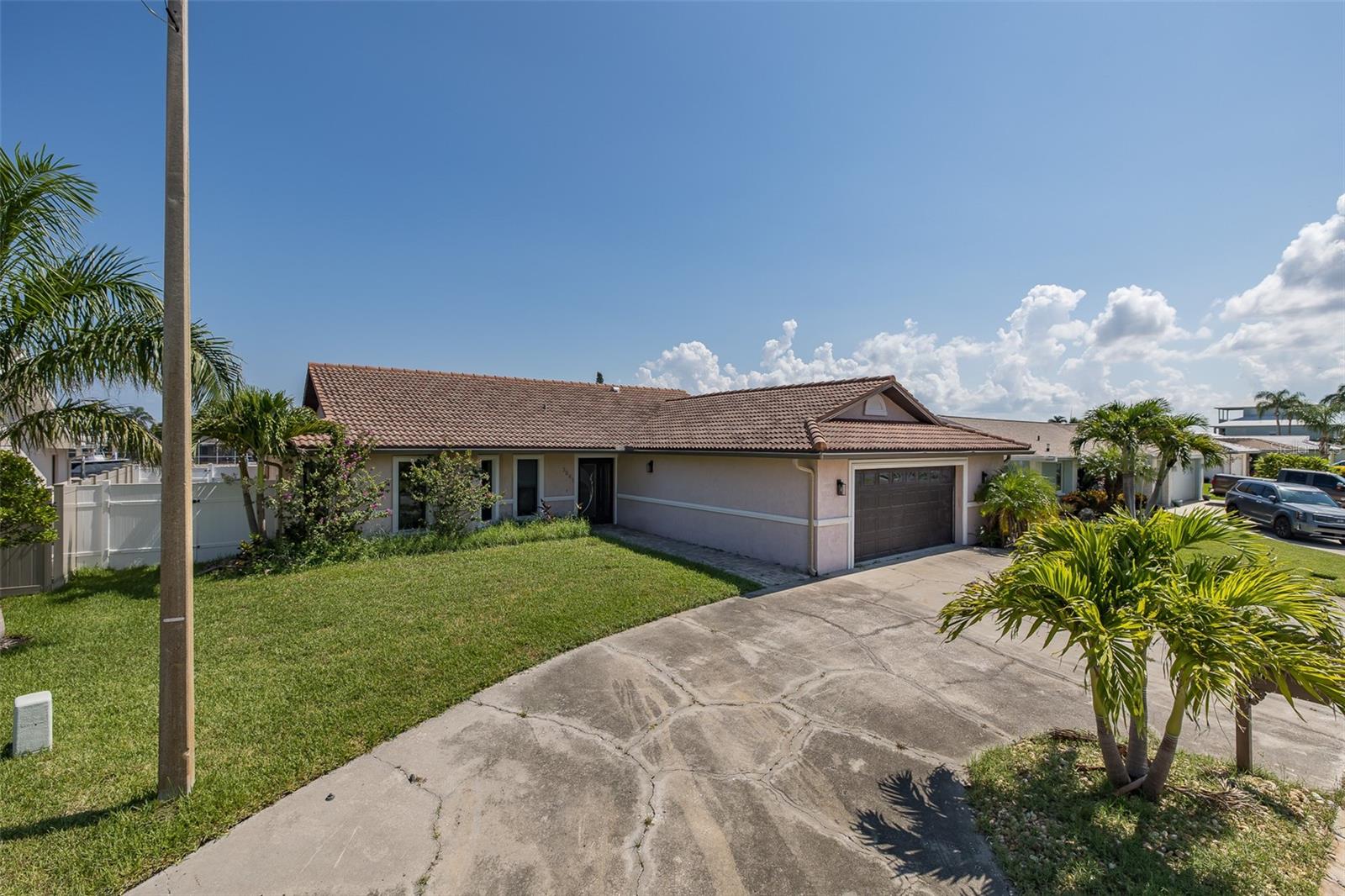 This is the only home available with stunning views of the Gulf of Mexico for under $1 million! Picture yourself stepping out your back door, hopping on your boat, and cruising into open Gulf waters within minutes—it doesn’t get better than this. Located at the end of a quiet cul-de-sac on the prestigious South Channel, this spacious 3-bedroom, 3-bathroom waterfront retreat offers deep water access, a private boat lift, and the true tropical lifestyle you've been dreaming of. The home boasts an airy open floorplan, a modern custom kitchen, updated bathrooms, and a sleek contemporary design throughout. Take in breathtaking sunsets from your private pool, framed by panoramic Gulf views. A two-car garage adds convenience and storage for your beach toys and gear. As a resident of Gulf Harbors, you’ll also have the option to join the exclusive private beach club—complete with cabanas, restrooms, and white sandy shores. Gulf views. Boat access. Private beach. All under $1M. What are you waiting for?