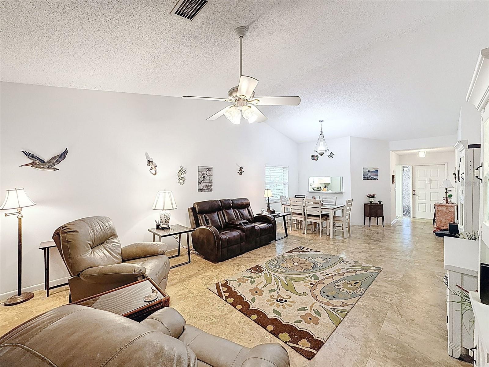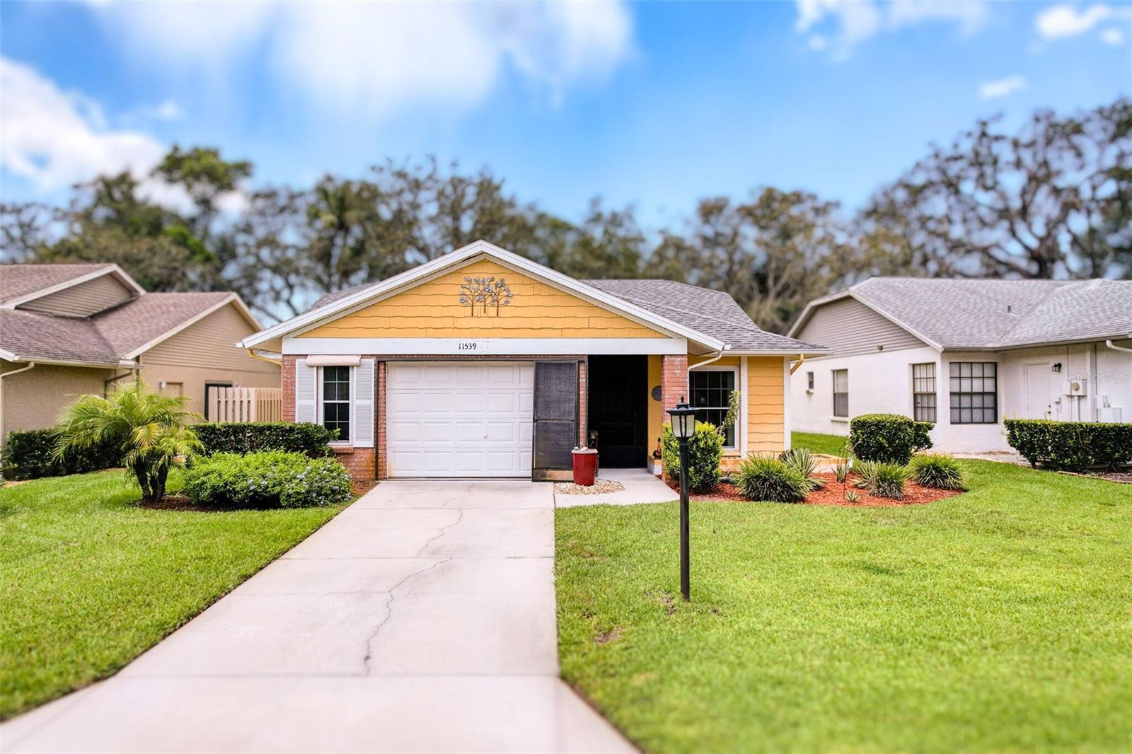 Tee Up Tranquility in This Rare 3-Bedroom Beauty at Arborwood at Summertree! Bright, open, and welcoming—this lovingly maintained home is one of the few true 3-bedroom residences in the community, offering the perfect blend of comfort and lifestyle. Nestled in a peaceful setting where sandhill cranes stroll the yard and sunsets paint the sky, this is Florida living at its most serene. Inside, expansive 24" x 24" ceramic tile flows through most of the home, complementing vaulted ceilings and an oversized living room (15x23) that’s ideal for both relaxing and entertaining. The spacious kitchen provides ample prep space and storage, while the vinyl-enclosed rear patio invites you to enjoy morning coffee or quiet evenings with nature—cranes, cardinals, and an occasional deer. The oversized 1.5-car garage offers plenty of room for both your car and golf cart—your passport to the beautifully maintained Summertree public golf course, just a short ride away. Notable updates add extra peace of mind: the windows were updated in 2019, the kitchen refrigerator and range were upgraded in 2023, and a newer water softener is in place. The garage door was recently serviced and comes with a transferable warranty for added confidence. Hurricane shutters, a newer HVAC system, and an east-facing front exposure round out the features that make this home both functional and welcoming. Located in the gated 55+ Arborwood section of Summertree, this community delivers resort-style living with a vibrant social calendar. Enjoy access to the clubhouse, pool and spa, fitness center, tennis and pickleball courts, shuffleboard, scenic walking trails, and golf (with optional fees). HOA dues cover basic cable, lawn care, exterior paint, and more—making life here as low-maintenance as it is enjoyable. Perfectly positioned near shopping, dining, medical centers, and the Gulf Coast, 11539 Pear Tree Drive offers a lifestyle rooted in both relaxation and recreation. Whether you're enjoying the view from your front lanai or heading out for a round of golf, this is a retreat where comfort meets community. Schedule your private showing today!