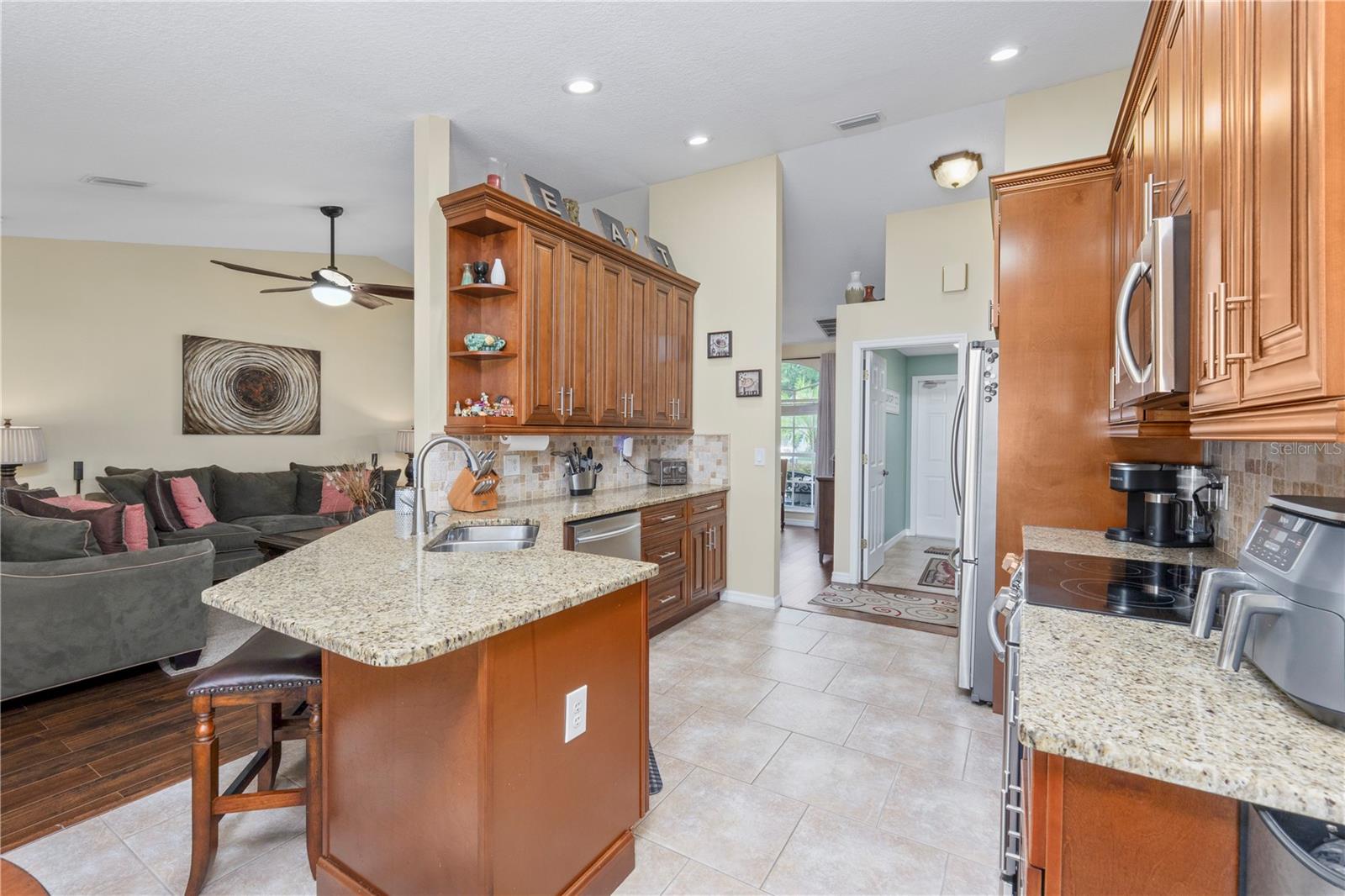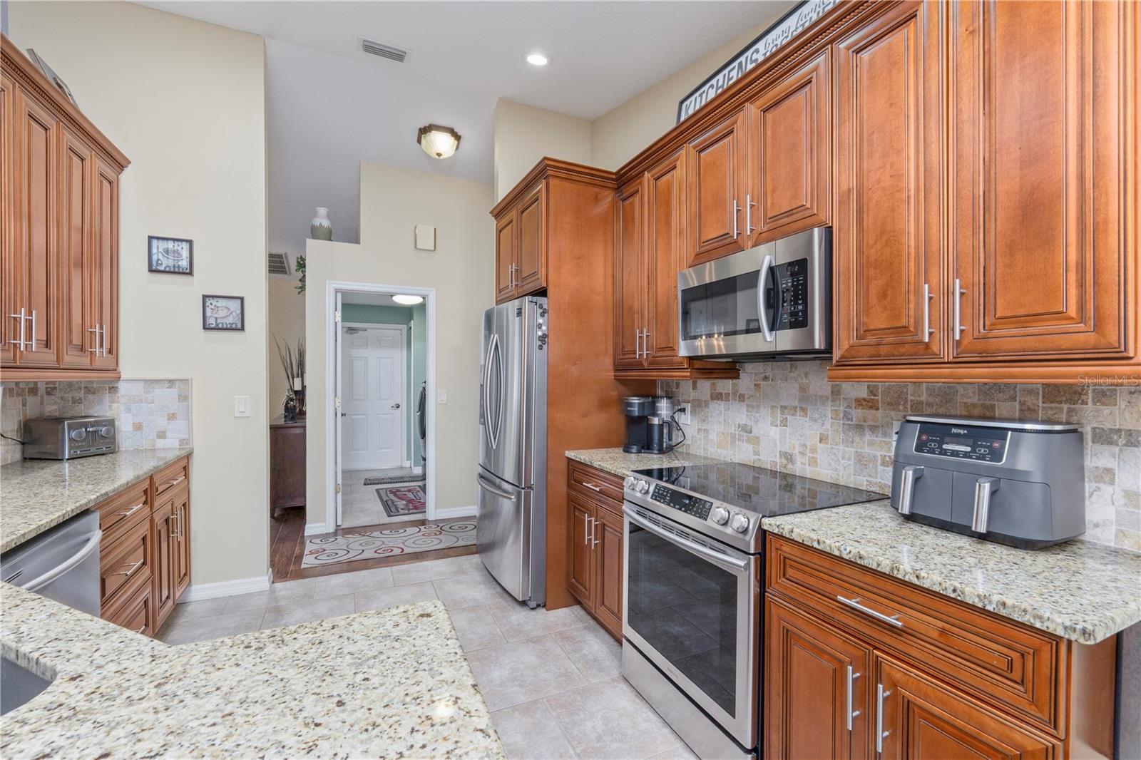 Beautiful home located in the desirable Rosewood community in River Ridge, a community with low HOA fees and no CDD fees. This home features a split floor plan with 4 generous bedrooms and 2 full bathrooms, offering plenty of space for family, guests, or a home office. The primary bedroom complete with a walk-in closet and an en-suite bathroom, featuring dual sinks, a separate shower and a garden tub. The kitchen boasts elegant granite countertops and stylish wood cabinets, with plenty storage, perfect for cooking and entertaining . Step outside to the enclosed patio, ideal for relaxing or hosting gatherings, and enjoy the privacy of a fully fenced backyard, great for entertaining and outdoor activities. Situated in a prime location and close to major routes including the Suncoast Parkway, making commute times a breeze. Enjoy the outdoors with nearby Starkey Wilderness Park, perfect for hiking, biking, and nature enthusiasts. Whether you're relaxing in the comfortable living spaces, preparing meals in the beautiful kitchen, or exploring the nearby parks, this home provides a perfect blend of comfort and convenience. Don’t miss the opportunity to make this lovely house your new home!