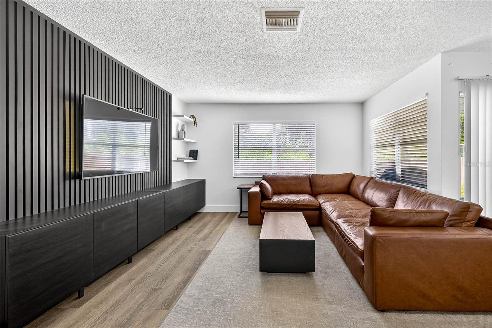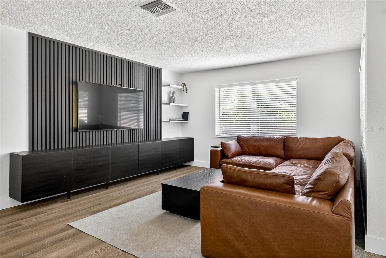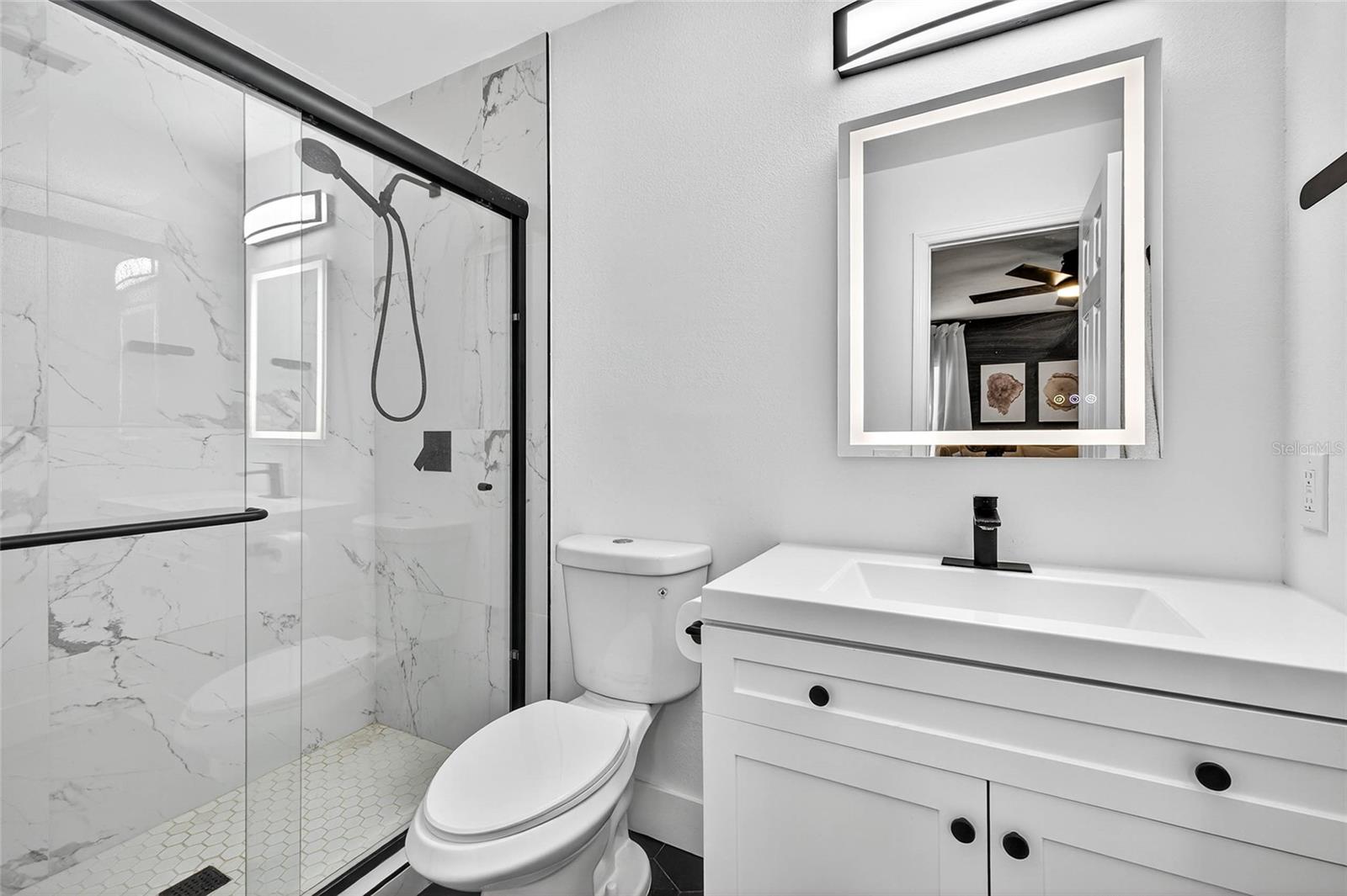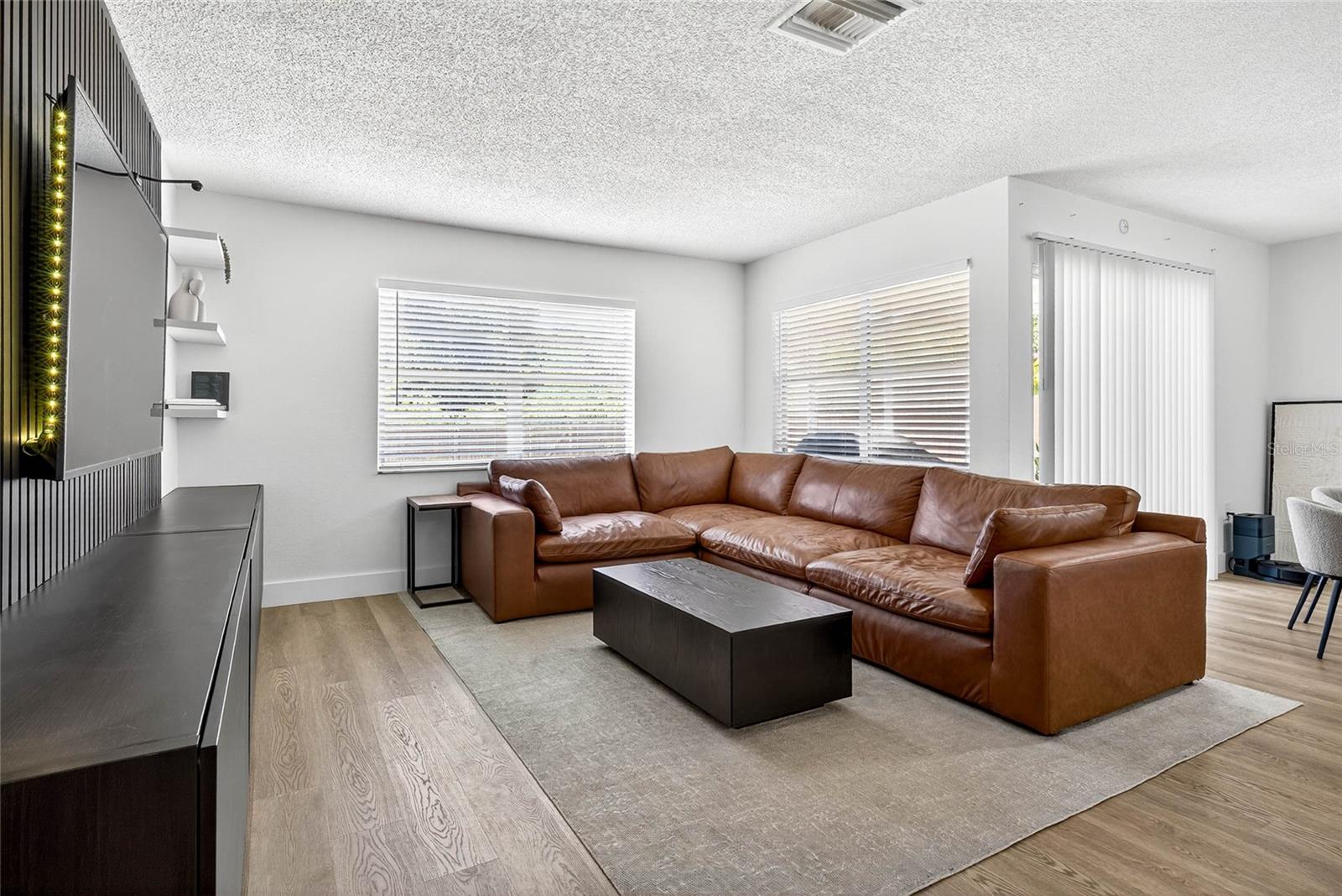 Welcome to your beautifully remodeled 2-bedroom, 2-bath home in the desirable Deer Park subdivision of New Port Richey! This home boasts major updates, including a new roof (2022), HVAC (2025) a new garage door, and fresh interior and exterior paint. Inside, you’ll find an open-concept layout with luxury vinyl flooring throughout, offering both durability and style. The modern kitchen features white cabinetry, stainless steel appliances, and a striking custom granite countertop with a waterfall edge—its natural grain flowing over the side like a work of art. A sleek glass cooktop and contemporary stainless steel hood vent seamlessly blend into the space, maintaining an open view to the dining and living areas. Step out to the screened-in back patio, perfect for relaxing or entertaining, with flexible space for a variety of furniture styles and layouts. The primary suite is generously sized, accommodating even your largest bedroom set, with space for a home office nook, exercise equipment, or a reading corner. The updated en-suite bath is a luxurious retreat, showcasing a marble tile shower, black fixtures, and a rain shower head, all complemented by an elegant white vanity and large black hexagon tile flooring. The second bedroom is also spacious—ideal as a guest room or office—and the hall bath continues the sophisticated design, with coordinating marble tile, matching vanity, and black hardware throughout. Step outside into the fully fenced backyard, a perfect canvas for your dream outdoor space. There’s plenty of room for family gatherings, a future pool, and lush green space with a privacy buffer between you and the rear neighbor. A spacious 1-car garage provides room for storage or a workshop area, and the laundry setup is conveniently located in the garage without compromising space. Located just minutes from downtown New Port Richey, you’ll enjoy the newly revitalized Main Street experience, full of shops, restaurants, and parks, including Sims Park and access to the Pithlachascotee River (Cotee River) via the public boat ramp. Schedule your private showing today and experience the charm and comfort of this thoughtfully renovated home!