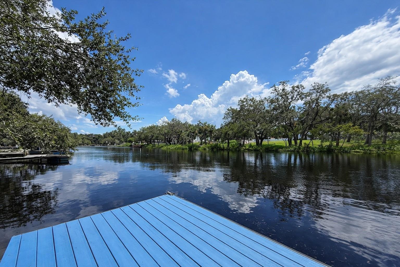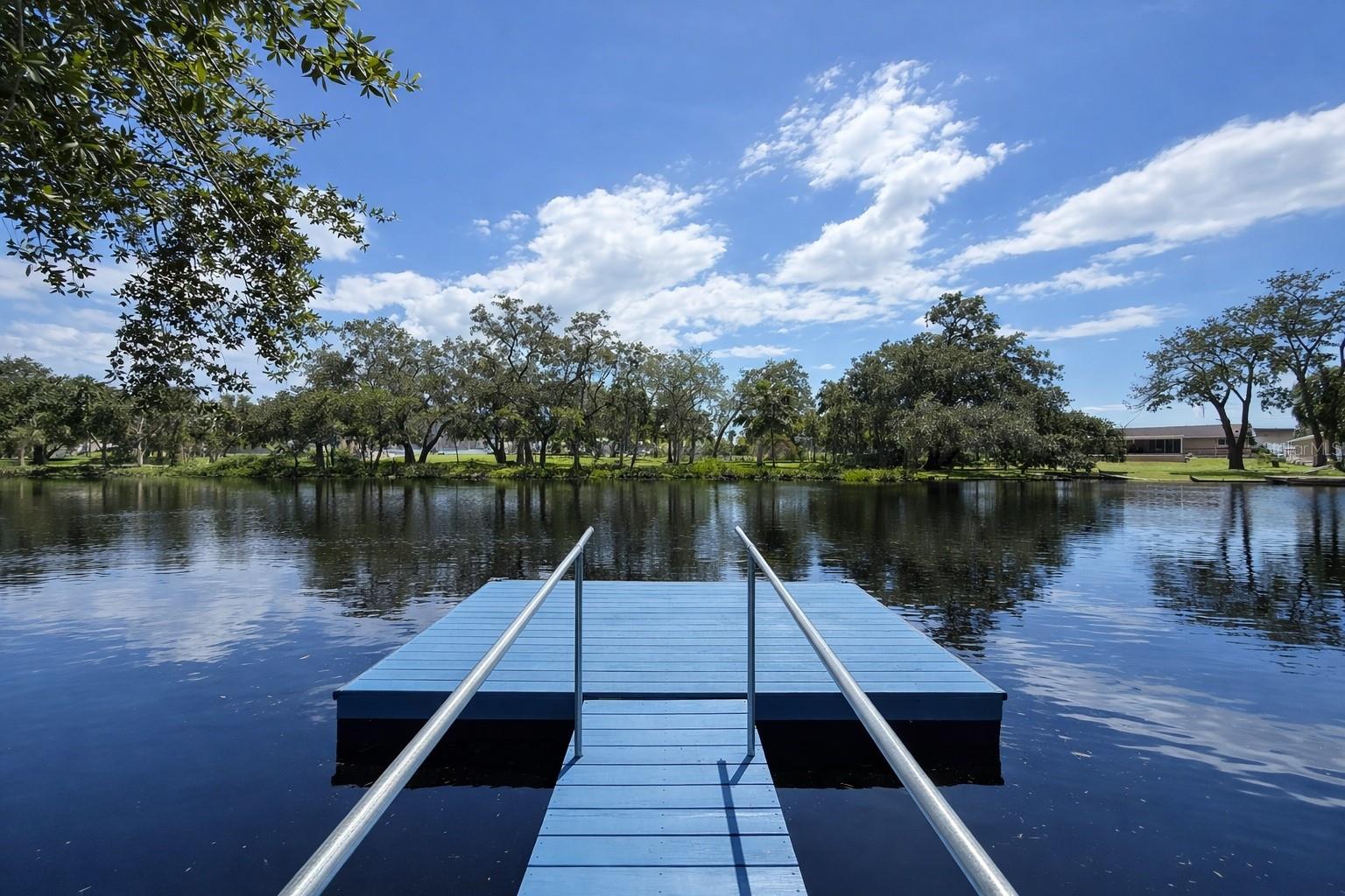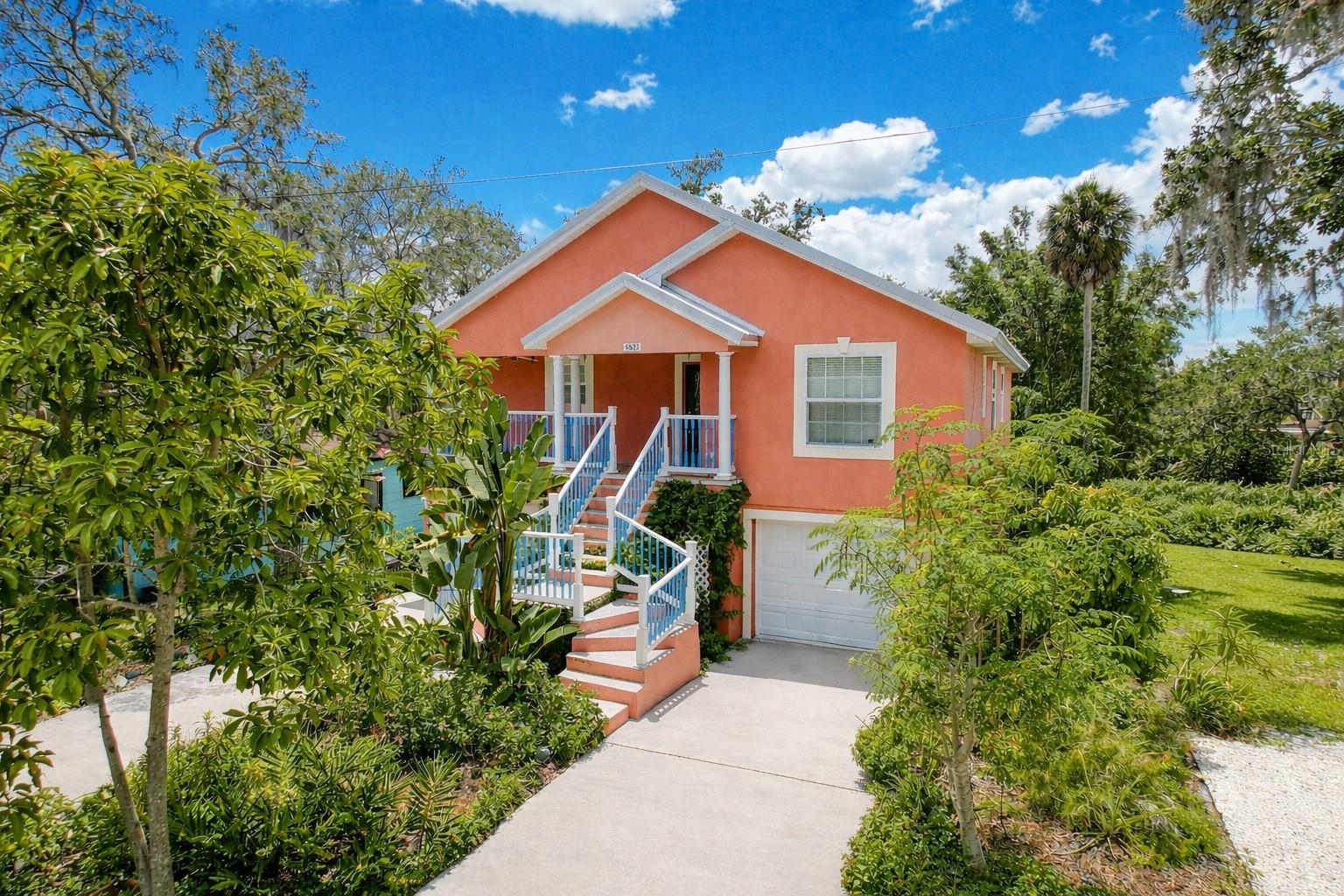 This elevated riverfront home in the heart of downtown New Port Richey, offers a rare blend of privacy, location, and lifestyle. This coastal-inspired residence features an expansive tandem garage with space for multiple vehicles, a golf cart, and water gear, while the elevated floorplan provides peace of mind. Upstairs, an open, light-filled layout showcases high ceilings, walls of glass, and calming views of the Cotee River. A fully retractable slider opens the living space to the outdoors, creating an easy, natural flow with one-of-a-kind views. The kitchen features solid wood cabinetry and quality craftsmanship, and the primary suite includes a walk in closet and an ensuite bath with a garden tub and jetted shower. Two rear balconies overlook the water, complemented by a welcoming front porch and mature tropical landscaping that creates privacy along the river. A floating dock installed in 2019 offers direct access for kayaking, fishing, or relaxing by the water, with major updates including a new metal roof and HVAC system in 2023. Located near downtown shops, restaurants, parks, and events, this is a rare opportunity to experience elevated, riverfront living in a walkable downtown setting that truly needs to be seen and experienced in person. (Roof 2023, AC 2023, Dock 2019)