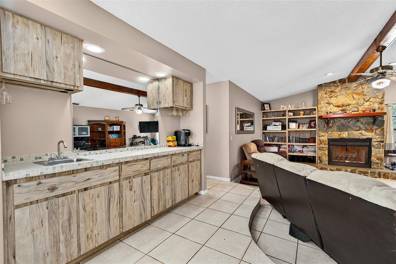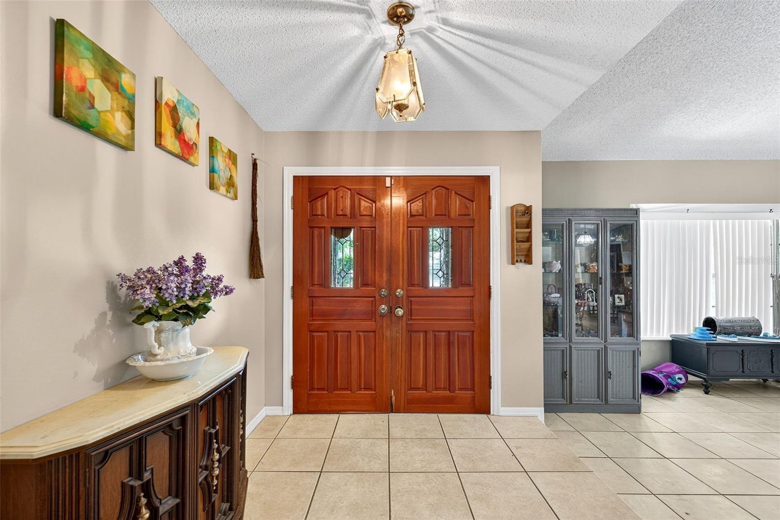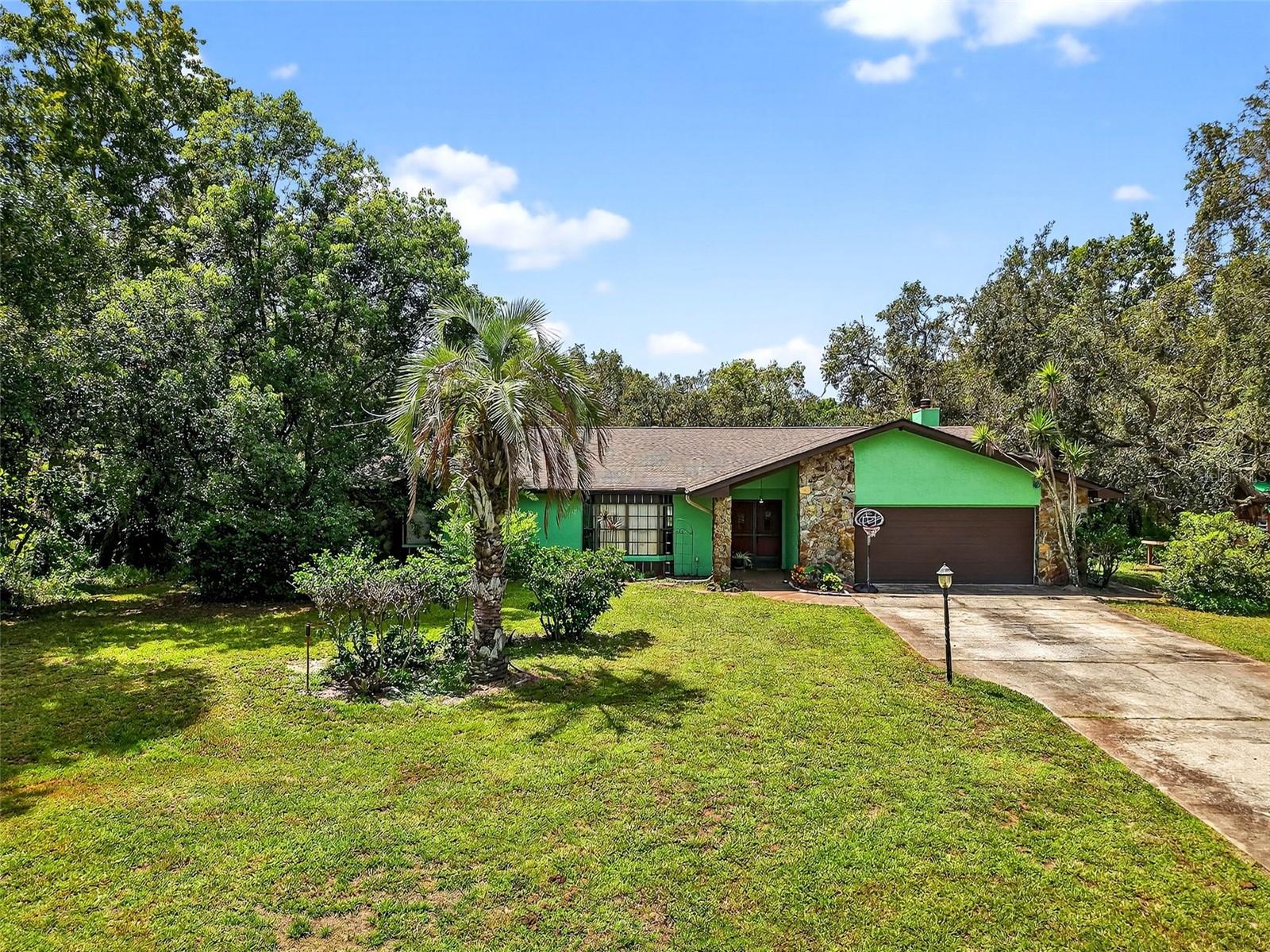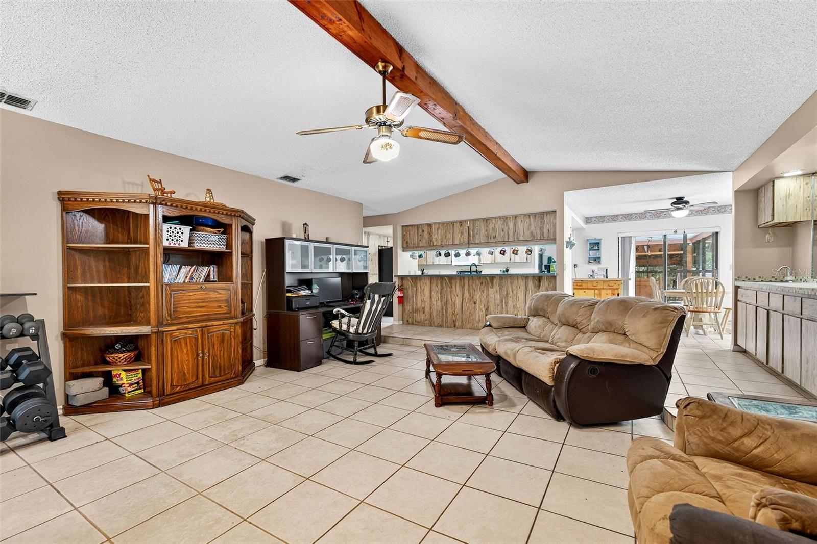 Welcome to this beautifully maintained 3-bedroom, 2-bathroom pool home with a 2-car garage, perfectly situated on a FULL ACRE of land with NO HOA and NO DEED RESTRICTIONS—giving you the freedom to park your boat, RV, or simply enjoy wide open space. Offering over 2,300 square feet of living space, this home blends comfort, functionality, and plenty of room to entertain both inside and out. Step into the inviting sunken living room, complete with a wood-burning fireplace, built-in shelving, and a wet bar—the perfect spot for gatherings with family and friends. The spacious primary suite is truly a retreat, featuring patio doors that open directly to the screened pool and lanai, a huge walk-in closet, and a luxurious ensuite bathroom with a double-sink vanity, relaxing Roman tub, and walk-in shower. The split-bedroom layout offers privacy for all. The second bedroom includes built-in desk and shelving, a large walk-in closet, and its own set of patio doors leading to the pool area—ideal for guests or a home office. The third bedroom also features a generous walk-in closet. The second bathroom is conveniently designed with an exterior door for direct pool access, making it easy to rinse off after a swim. The kitchen and dining areas offer plenty of cabinet and counter space for cooking and entertaining, while the inside laundry room adds convenience. Tile flooring runs throughout the home for easy maintenance. Additional upgrades include a whole-house water filtration system and a brand-new roof (2024), providing peace of mind for years to come. Step outside to your screened-in pool and lanai, perfect for relaxing or entertaining, all while enjoying the privacy and beauty of your 1-acre property. With no community restrictions, you have endless possibilities for gardening, storing recreational vehicles, or creating your own outdoor paradise. Don’t miss your chance to own this spacious, well-appointed home that combines indoor comfort with outdoor freedom—all just minutes from shopping, dining, and major highways. Schedule your private tour today!