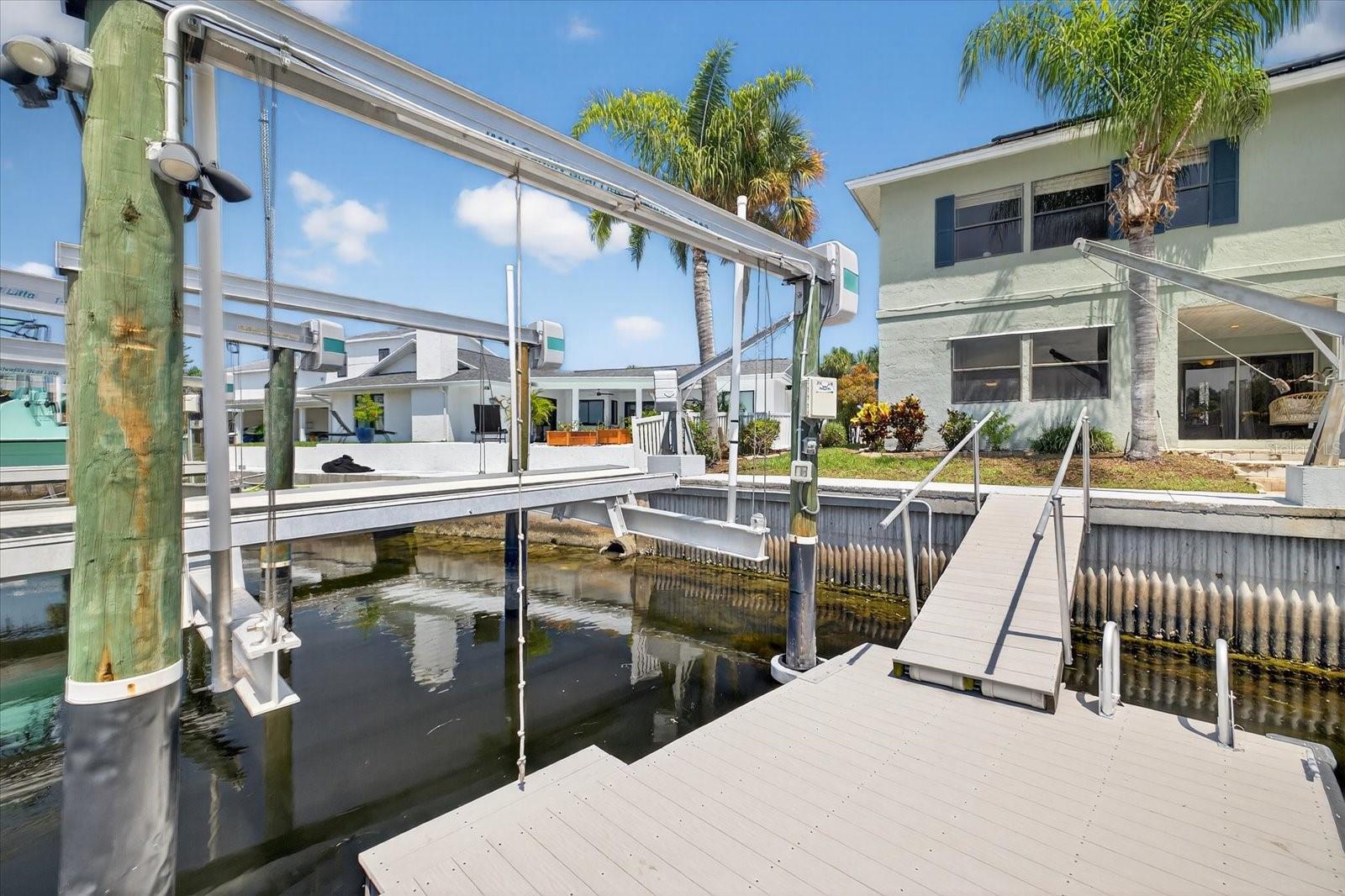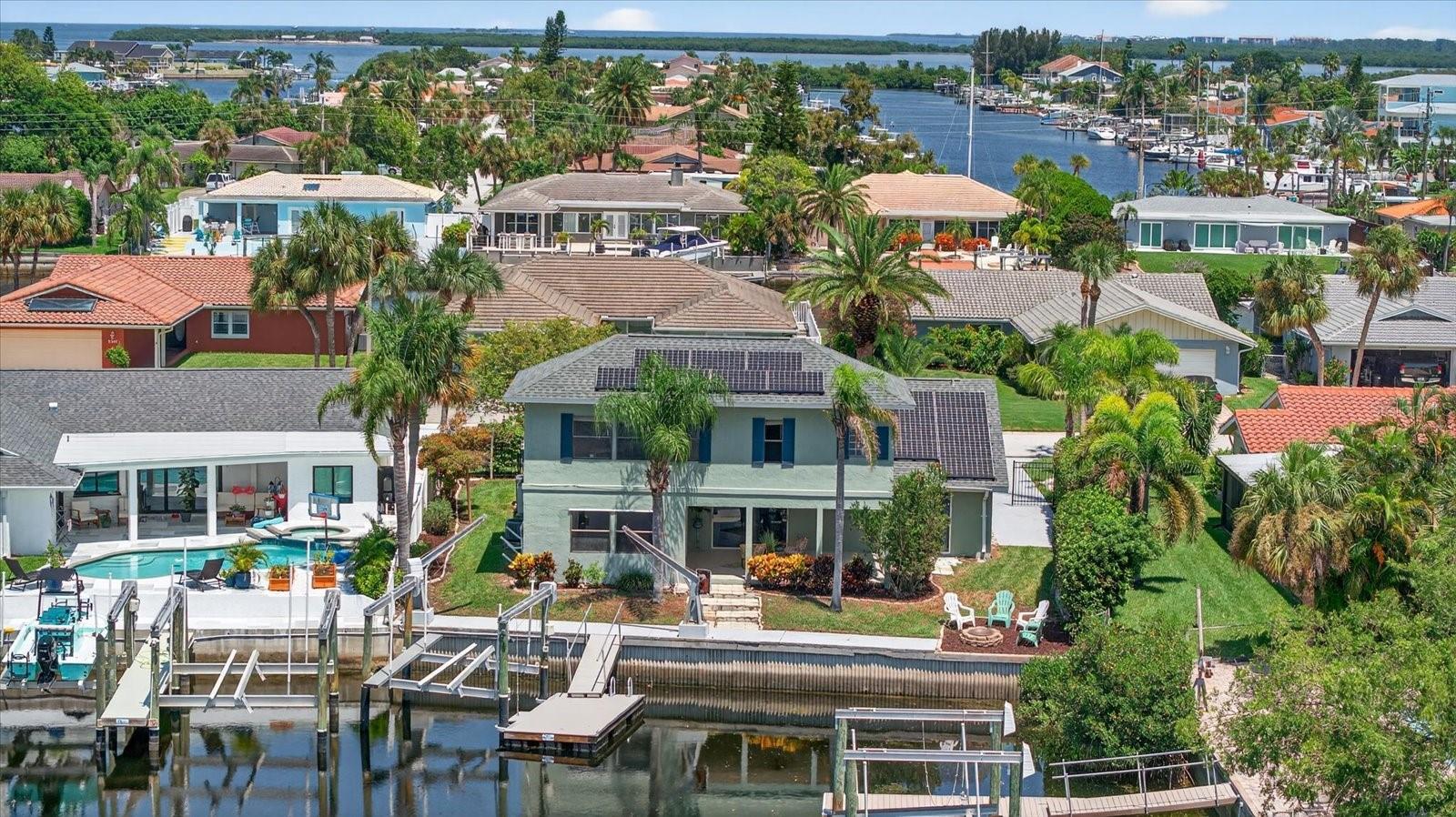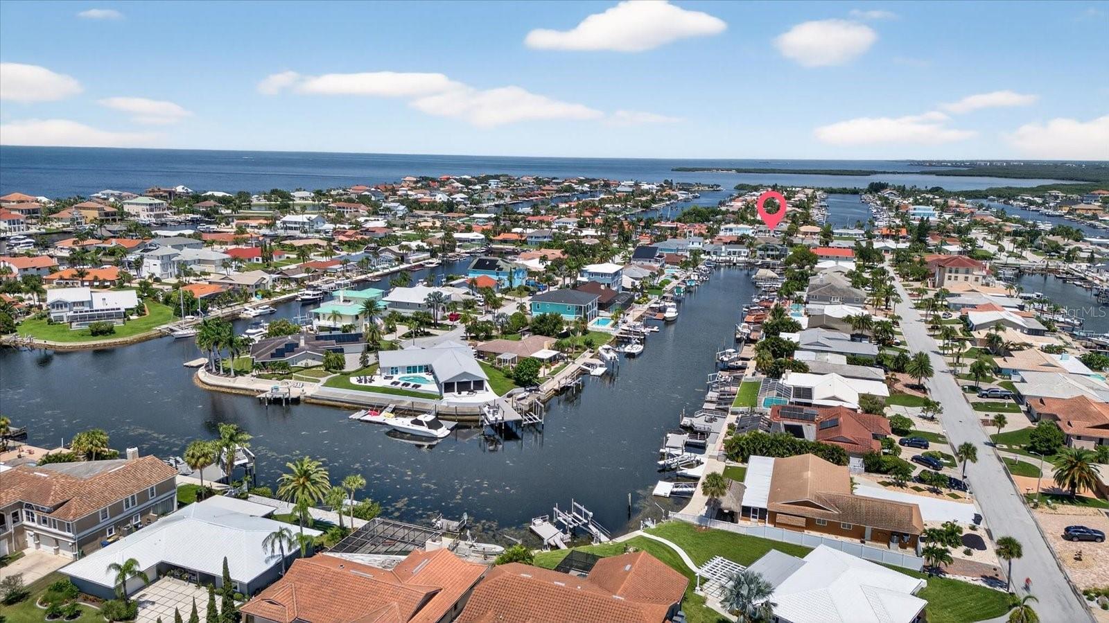 Motivated SELLER-NEW PRICE!! GREAT WATERFRONT DEEP WATER GULF ACCESS with BOAT LIFT home!! Welcome home to your own private retreat, a stunningly updated 3-bedroom, 3-bathroom Gulf Harbors’ home featuring a 10,000 pound boat lift and quick, unobstructed access to the Gulf! With 2,244 square feet of coastal charm, this 2 story home offers long water views from every corner. Set sail right from your backyard with deep-water Gulf access, the 10,000 pound boat lift, and space for a pool. The home features two primary suites—one on the main level with a walk-in closet and en-suite, and a secluded second-floor suite with a private loft overlooking the tranquil waters. This gorgeous home was completely remodeled after the storm including new kitchen with custom cabinetry, stainless steel appliances, acres of countertop and eat-in kitchen area, all open to the expansive great room. Double sliders and a large picture window create a light and bright atmosphere to enhance the gorgeous water views. Downstairs, you’ll find 2 large bedrooms and 2 baths, and a spacious, sweeping great room. Upstairs you’ll find the second primary suite featuring a loft area with an awesome view that would make a perfect home office, yoga or sitting room, a large bedroom with walk-in closet and a spacious bathroom. Solar panels, installed in 2019, come with a 15-year transferable warranty and a 25-year lifespan, ensuring a light energy footprint and an electric bill as low as $30.00 a month. A new roof was installed in 2018. One hot water heater was replaced in 2022, and the second in 2025. The home is fully fenced with room on the side for boat or trailer parking. There is a yearly termite bond. Additional features include a Ring doorbell and a Nest thermostat. There are two AC units, installed in 2019 and 2021. This property is a boater's paradise with a 10,000-pound boat lift installed in 2019 by Water Ventures, floating dock with composite Trex decking, and davits for your adventures. Whether you're entertaining in the expansive living spaces, retreating to one of the primary suites, basking in spectacular sunsets, or letting the dogs out for a run, this home captures ALL the essence of the Florida coastal lifestyle. Located in one of Pasco's finest waterfront communities on a quiet street ending in a cul-de-sac, this home also features underground utilities, and is a great walking neighborhood. Optional membership to your gated private beach club is available for just $200 a year, offering stunning sunsets nightly, and equipped with covered gazebos, picnic tables, bathrooms and grills to make your beach trip the best! The neighborhood is also golf cart-friendly and has a lot of events and parades to entertain you or involve you throughout the year. For boating enthusiasts two community ramps are available, with a key available for purchase through the Gulf Harbors Civic Association. The Association offers an OPTIONAL HOA membership for only $125 a year. This home has an existing ASSUMABLE FLOOD INSURANCE POLICY! Your boating adventures begin with a 4 minute run to the Gulf with access to the Intercoastal Waterway and Anclote barrier island, which has stunning lighthouse views and some of the best shelling around! Gulf Harbors is also conveniently close to downtown New Port Richey's top attractions. Less than 10 minutes to Sims Park or your favorite restaurants and shops. Find your slice of Paradise here at 3358 Seaway Drive today!