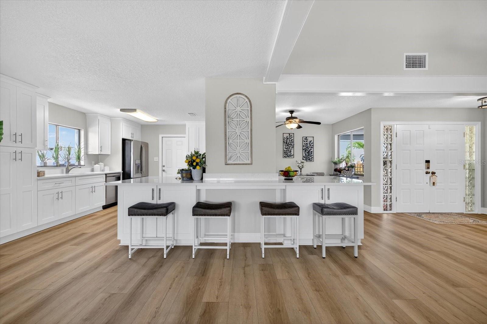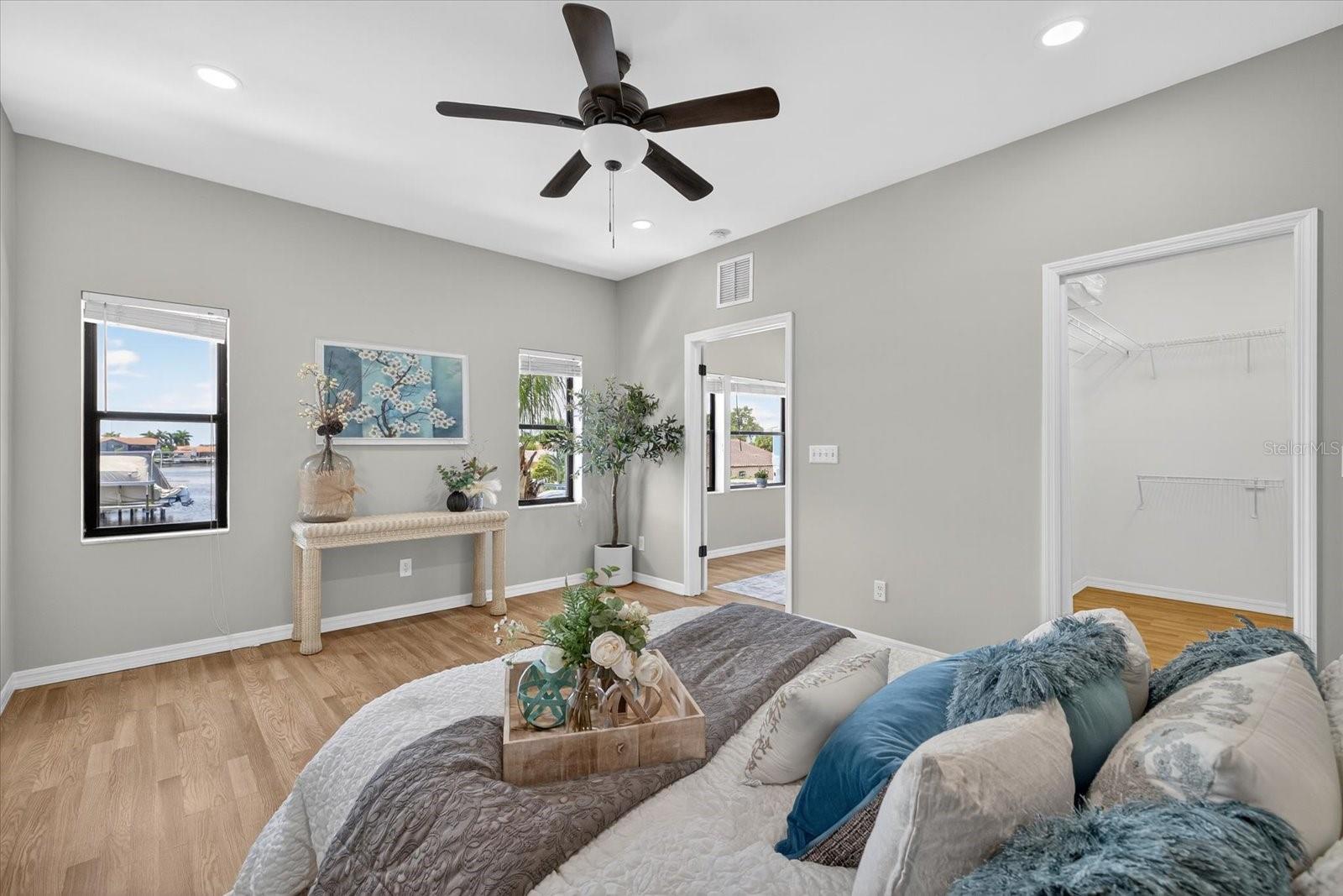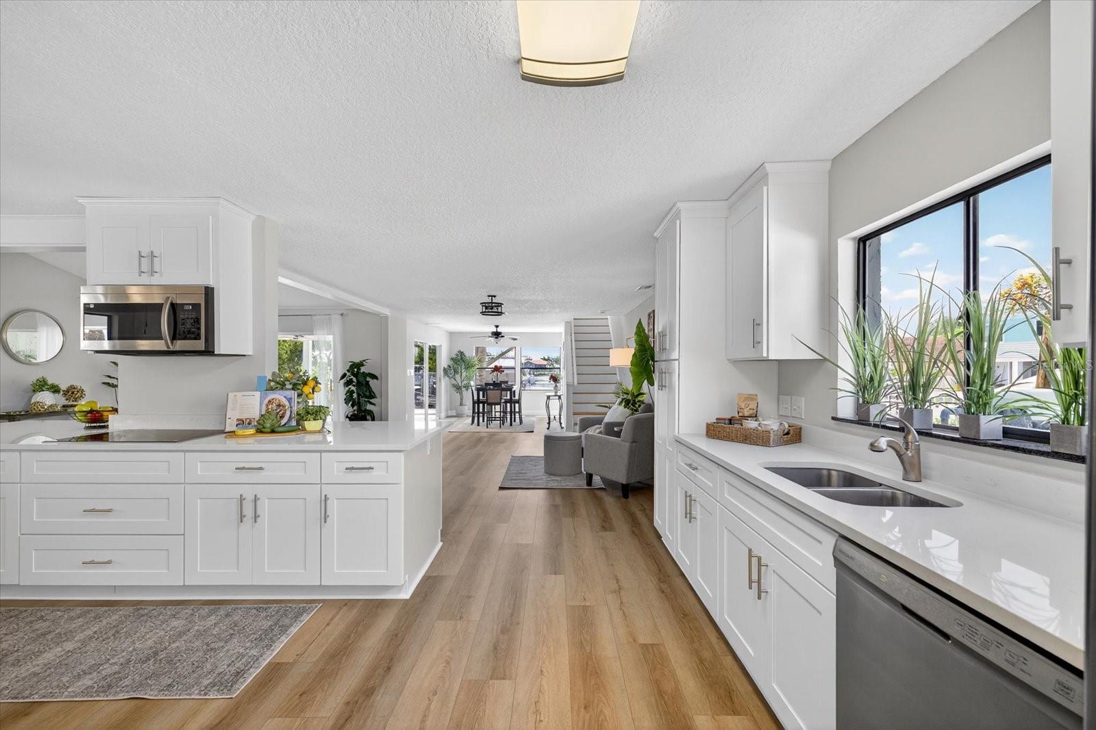 Motivated SELLER-NEW PRICE!! GREAT WATERFRONT DEEP WATER GULF ACCESS with BOAT LIFT home!! Welcome home to your own private retreat, a stunningly updated 3-bedroom, 3-bathroom Gulf Harbors’ home featuring a 10,000 pound boat lift and quick, unobstructed access to the Gulf! With 2,244 square feet of coastal charm, this 2 story home offers long water views from every corner. Set sail right from your backyard with deep-water Gulf access, the 10,000 pound boat lift, and space for a pool. The home features two primary suites—one on the main level with a walk-in closet and en-suite, and a secluded second-floor suite with a private loft overlooking the tranquil waters. This gorgeous home was completely remodeled after the storm including new kitchen with custom cabinetry, stainless steel appliances, acres of countertop and eat-in kitchen area, all open to the expansive great room. Double sliders and a large picture window create a light and bright atmosphere to enhance the gorgeous water views. Downstairs, you’ll find 2 large bedrooms and 2 baths, and a spacious, sweeping great room. Upstairs you’ll find the second primary suite featuring a loft area with an awesome view that would make a perfect home office, yoga or sitting room, a large bedroom with walk-in closet and a spacious bathroom. Solar panels, installed in 2019, come with a 15-year transferable warranty and a 25-year lifespan, ensuring a light energy footprint and an electric bill as low as $30.00 a month. A new roof was installed in 2018. One hot water heater was replaced in 2022, and the second in 2025. The home is fully fenced with room on the side for boat or trailer parking. There is a yearly termite bond. Additional features include a Ring doorbell and a Nest thermostat. There are two AC units, installed in 2019 and 2021. This property is a boater's paradise with a 10,000-pound boat lift installed in 2019 by Water Ventures, floating dock with composite Trex decking, and davits for your adventures. Whether you're entertaining in the expansive living spaces, retreating to one of the primary suites, basking in spectacular sunsets, or letting the dogs out for a run, this home captures ALL the essence of the Florida coastal lifestyle. Located in one of Pasco's finest waterfront communities on a quiet street ending in a cul-de-sac, this home also features underground utilities, and is a great walking neighborhood. Optional membership to your gated private beach club is available for just $200 a year, offering stunning sunsets nightly, and equipped with covered gazebos, picnic tables, bathrooms and grills to make your beach trip the best! The neighborhood is also golf cart-friendly and has a lot of events and parades to entertain you or involve you throughout the year. For boating enthusiasts two community ramps are available, with a key available for purchase through the Gulf Harbors Civic Association. The Association offers an OPTIONAL HOA membership for only $125 a year. This home has an existing ASSUMABLE FLOOD INSURANCE POLICY! Your boating adventures begin with a 4 minute run to the Gulf with access to the Intercoastal Waterway and Anclote barrier island, which has stunning lighthouse views and some of the best shelling around! Gulf Harbors is also conveniently close to downtown New Port Richey's top attractions. Less than 10 minutes to Sims Park or your favorite restaurants and shops. Find your slice of Paradise here at 3358 Seaway Drive today!