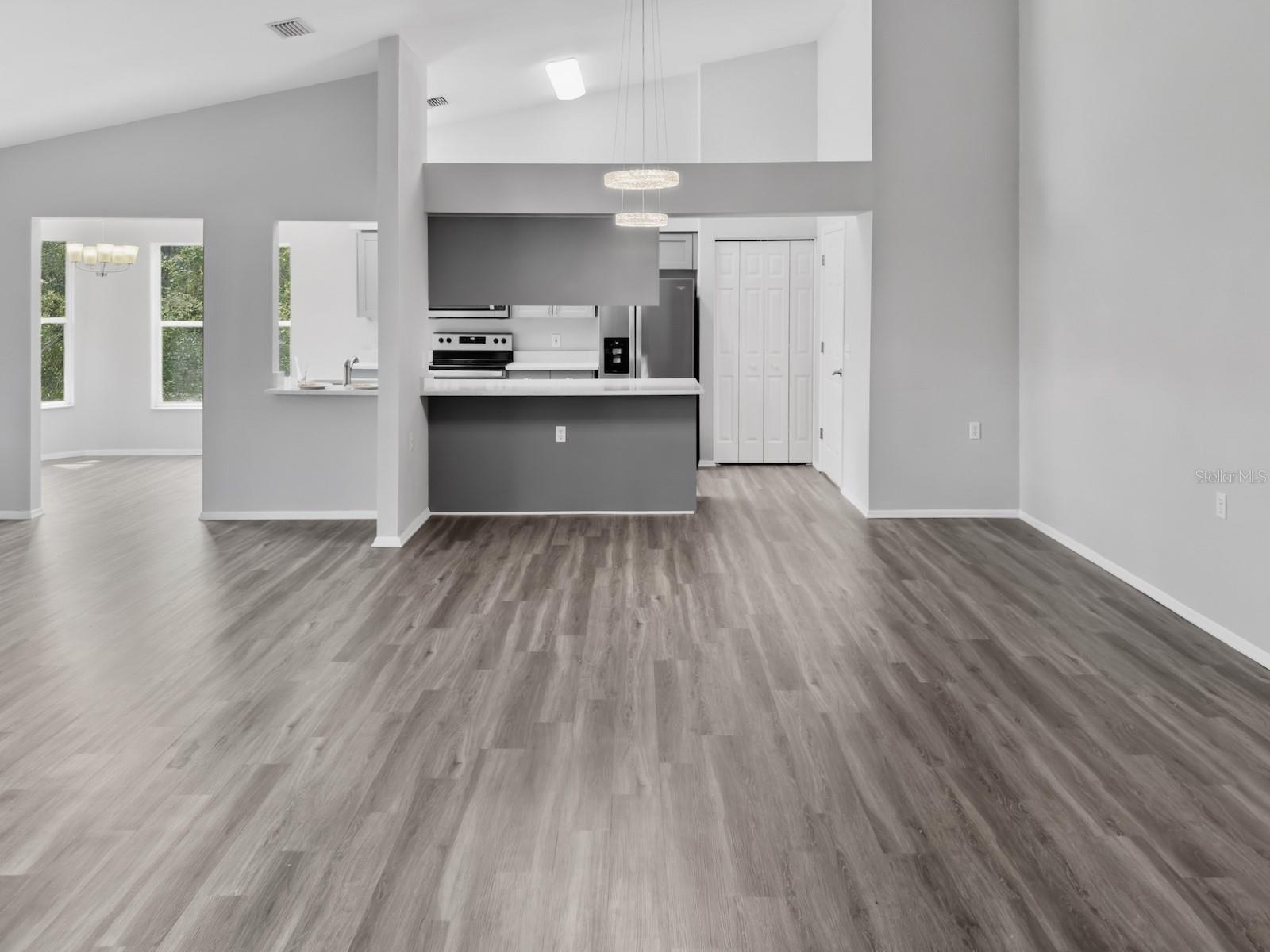 Welcome to this beautifully updated 2-bedroom, 2-bath villa located in the highly desirable Timber Greens 55+ Golf Community of New Port Richey. Perfectly positioned as an end unit beside a serene conservation area, this villa offers privacy, peace, and modern style. Inside, you’ll find soaring ceilings, a very open layout, and an array of tasteful updates. New luxury vinyl plank flooring flows seamlessly throughout the home, complemented by modern lighting and ceiling fans. Both bathrooms have been refreshed with updated vanities, lighting, and toilets, while the remodeled kitchen shines with new cabinets, quartz countertops, a farmhouse sink, and brand-new stainless steel appliances. Additional conveniences include a closet pantry, breakfast bar, and cozy dinette area. The primary suite features dual walk-in closets, while the guest bedroom also offers its own walk-in closet. A separate laundry room with washer/dryer hookups and a utility sink adds functionality. Major updates provide peace of mind, including a 2021 roof, 2020 AC (with new blower motor in 2024), and a 2022 water heater. Recent Elevation Certificate available for greatly discounted insurance. As a resident of Timber Greens, you’ll enjoy resort-style amenities including an 18-hole golf course, tennis and pickleball courts, a heated pool and spa, fitness center, clubhouse, and an on-site bar and grill. The HOA covers 24-hour guard service, trash, cable, internet, grounds maintenance, exterior paint, and full access to community facilities. So schedule your private showing today, and explore the 3D walkable virtual tour for a closer look!