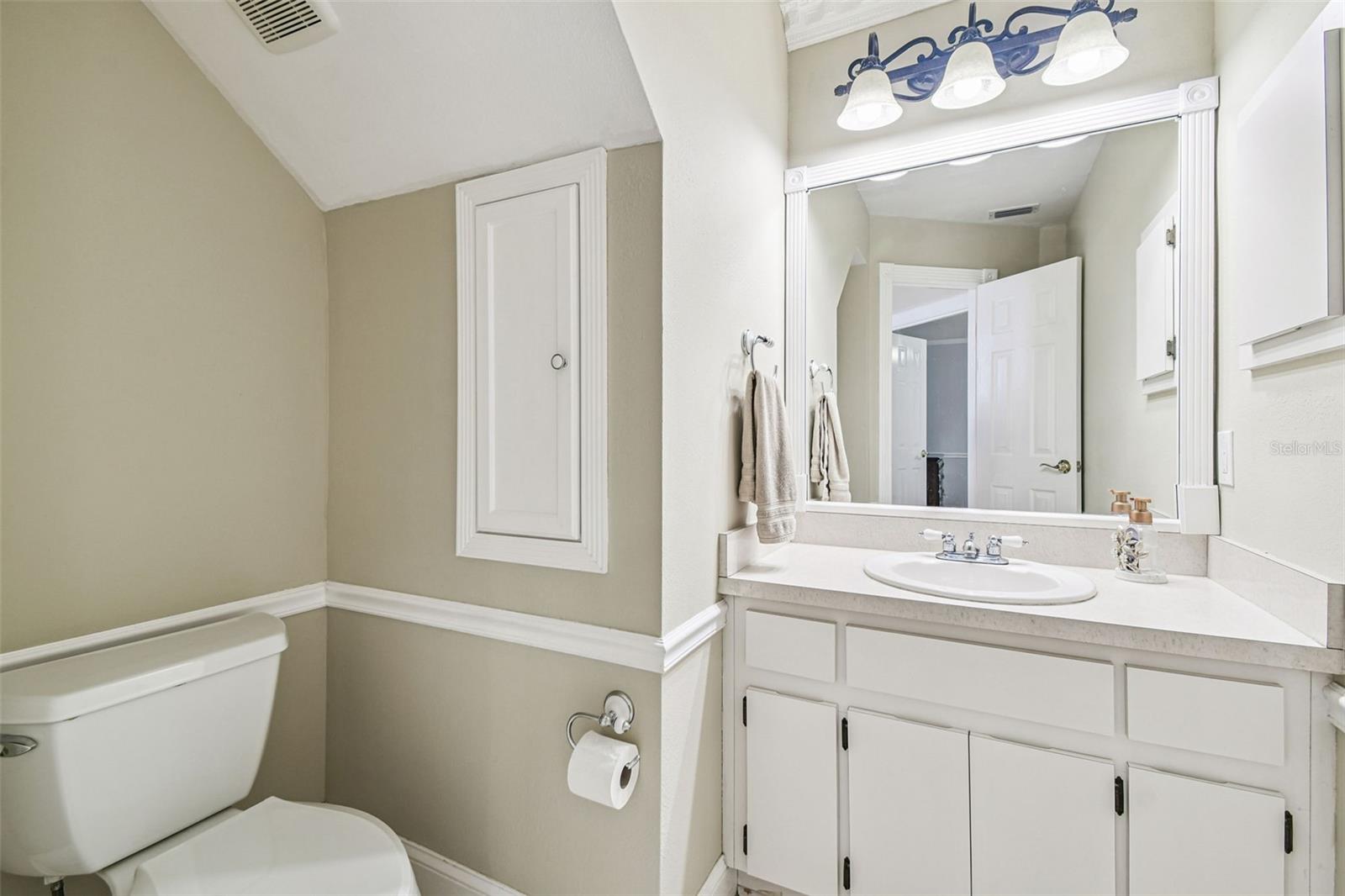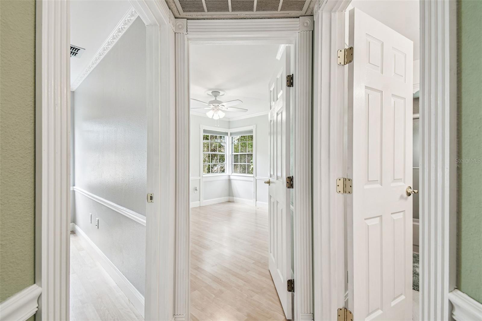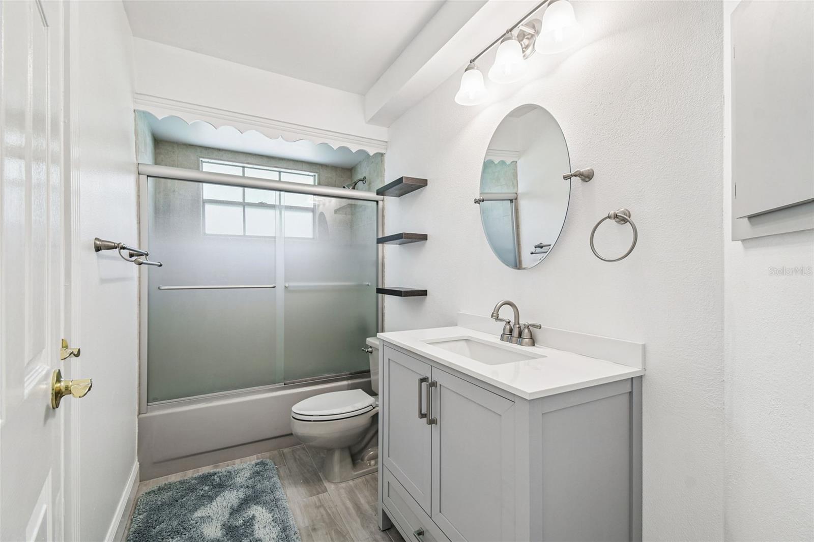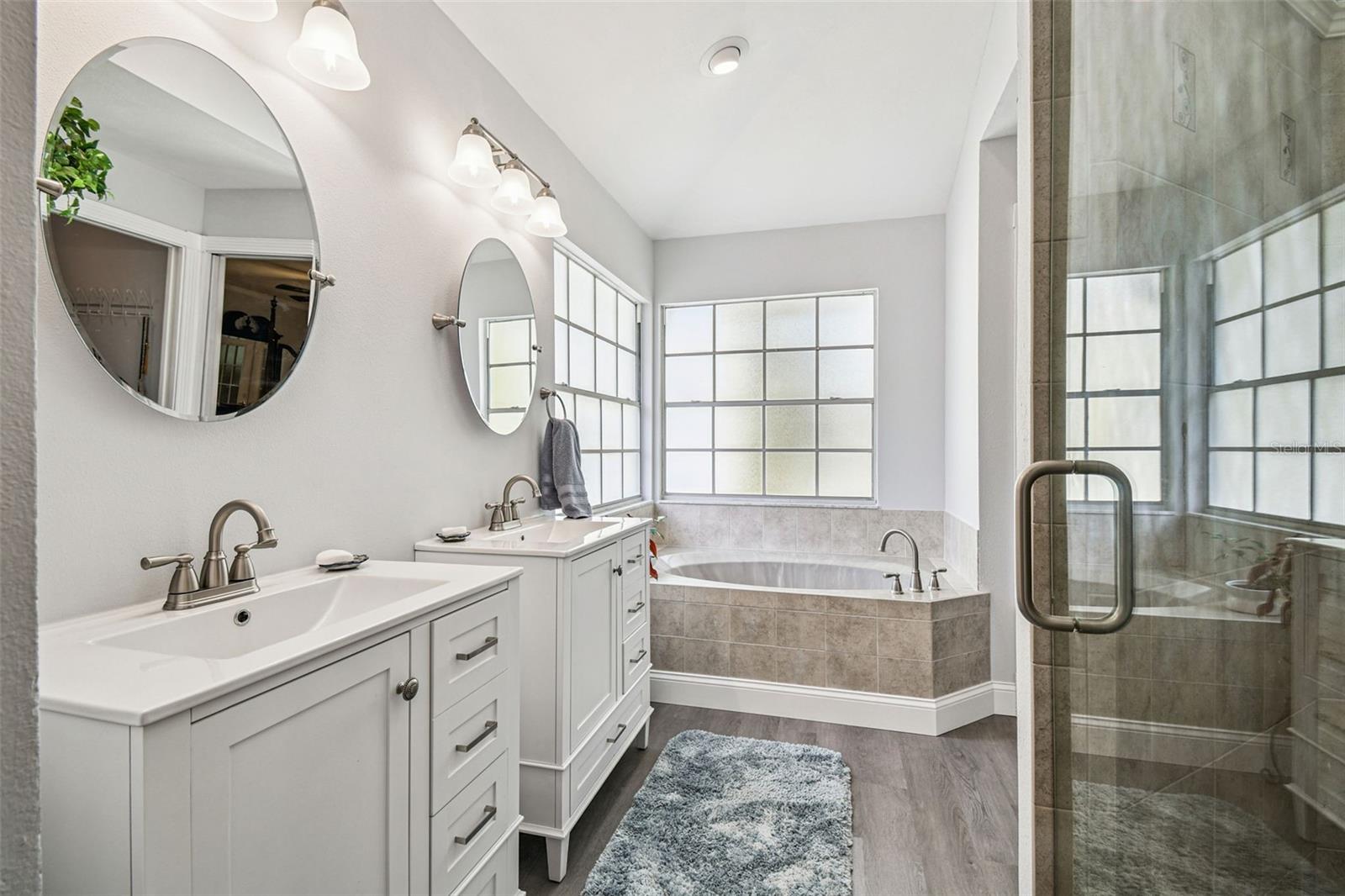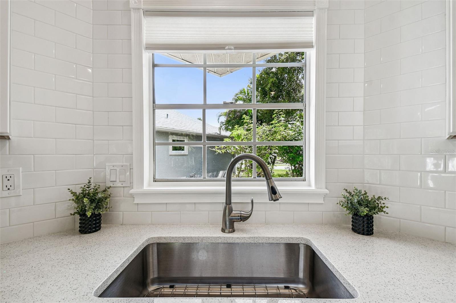 REMODELED! This distinctive 3 bedroom PLUS OFFICE or could be 4th bedroom, two-story home combines classical craftsmanship with modern luxury. Eye catching exterior is warm and inviting. Large lot with endless potential. Once inside you will appreciate the unique floor plan and design. The two-story great room features soaring 20-foot ceilings, abundant natural light, and an elegant hardwood staircase. Custom millwork throughout includes picture frame molding, chair rails, crown molding, decorative ceiling medallions, and arched doorways with decorative transoms. The living room centers around a wood-burning fireplace with custom mantle and eye-catching stained glass insert. The adjacent formal dining room flows into the completely remodeled kitchen featuring light 42-inch shaker cabinets, gleaming quartz countertops, subway tile backsplash, stainless steel appliances, stunning bay window breakfast nook, and walk-in pantry with barn door. The spacious primary suite on the main floor offers single-level living with beautiful French doors adding architectural elegance. The ensuite bathroom showcases dual vanities, tiled walk-in shower with Corian base, soaking tub, and generous walk-in closet. Upstairs, two generous bedrooms share a fully remodeled bathroom plus a versatile bonus room with vaulted ceilings and dramatic stained glass window set within custom built-in shelving—perfect as fourth bedroom, home office, or artist's studio. The 8x21-foot Florida room with ceramic tile flooring delivers 168 square feet of pure functionality: storing bikes without sacrificing garage space, beach gear accessible but organized, gardening supplies and potting area, holiday decorations properly stored, craft supplies and hobby projects that stay set up, seasonal sports equipment rotation, pet washing area, or workshop space where messes don't matter. This room keeps garages for cars, dining tables for dining, and spare bedrooms as bedrooms. No carpet throughout—luxury vinyl, tile, or plank flooring everywhere. 2024 roof, gutters, two-car garage, main floor half-bath, wired for surround sound, network cabling in 4 rooms, covered front porch, detached shed/workshop, partially fenced yard with established gardens. Within one mile of Nature's Hideaway: brand new fire station, major grocery, dining, shopping. Six major commuting routes nearby. Minutes to 20,000+ acres at Brooker Creek and Starkey Wilderness Preserves where Pinellas Trail connects to Suncoast Trail, world-class beaches at Honeymoon Island State Park, historic Tarpon Springs community, downtown New Port Richey's walkable riverfront with farmers markets and festivals, plus Caladesi Island, Anclote Key, and Werner-Boyce state parks. No CDD fees, low HOA, NO flood zone, all appliances included.