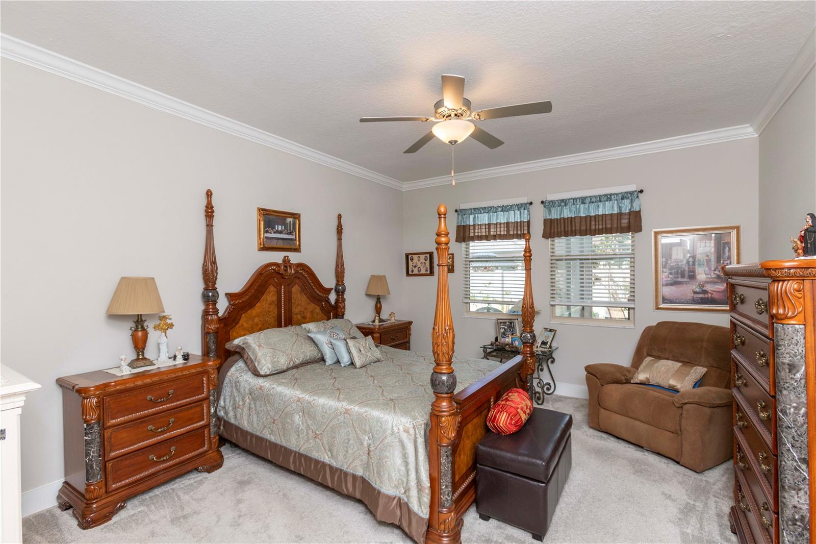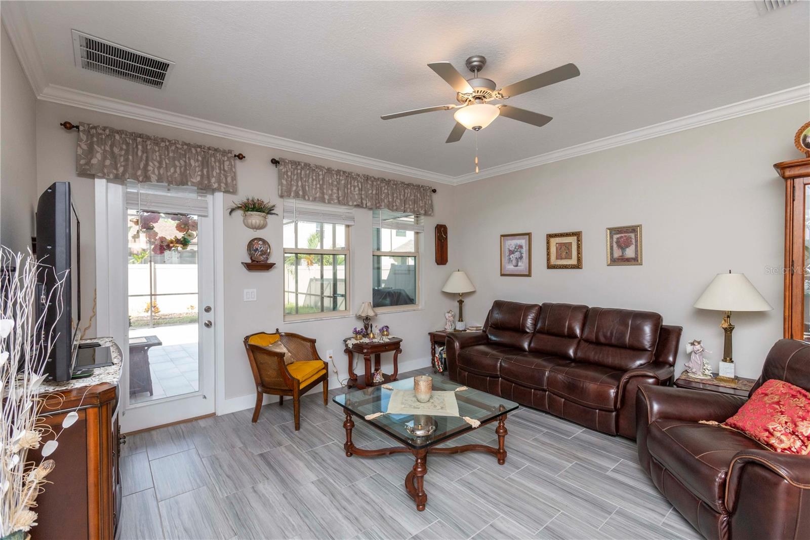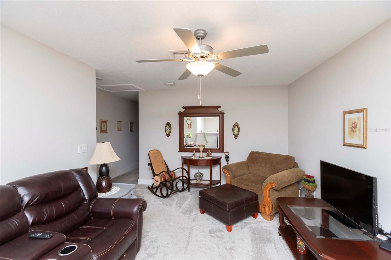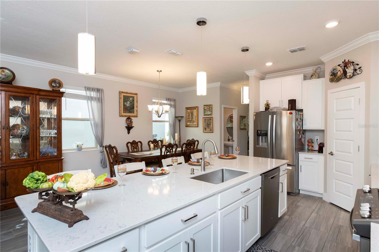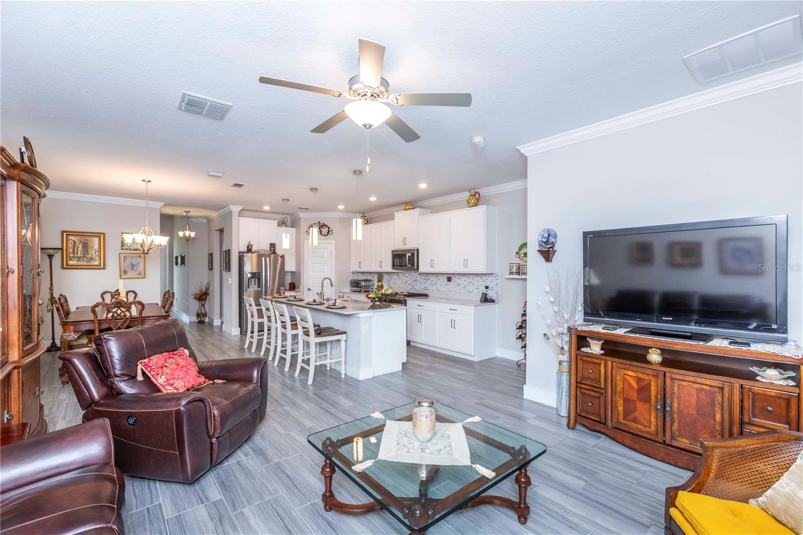 Welcome to Bryant Square! This 2021 Lennar-built Massachusetts model combines thoughtful design, modern finishes, and an unbeatable location—all in pristine, move-in ready condition. With 5 bedrooms, 3.5 baths, and a 2-car garage, there’s plenty of room to live, work, and unwind. Step inside to a bright and open layout. To the left, the kitchen is a chef’s dream, showcasing a gas range, quartz countertops, microwave, and a large island with seating for four. To the right, the dining area comfortably accommodates a full dining set. Continue into the spacious living room, accented with elegant crown molding and finished with sleek 12x24 ceramic tile. The primary suite is located on the main floor, featuring dual sinks, a walk-in closet, and a private bath designed for relaxation. The screened, tiled porch offers the perfect extension of the living space, ideal for entertaining or simply enjoying the Florida breeze. Thoughtful details like double-pane windows, a gas water heater and dryer, and a whole-house water softener enhance efficiency and convenience. A tucked-away desk area and half bath on the main level add extra flexibility. Upstairs, you’ll find four additional bedrooms, 2 with walk in closets, plus two full baths and a versatile loft that can serve as a media room, home office, or second living area. Enjoy resort-style amenities—a clubhouse with a large pool, lounge areas, shaded tables, BBQ facilities, winding walking paths, and recreation spaces for outdoor activities. Minutes from hospitals, Trinity College, shopping, and dining, with Tampa only 40 minutes away and pristine Gulf beaches 30 minutes.