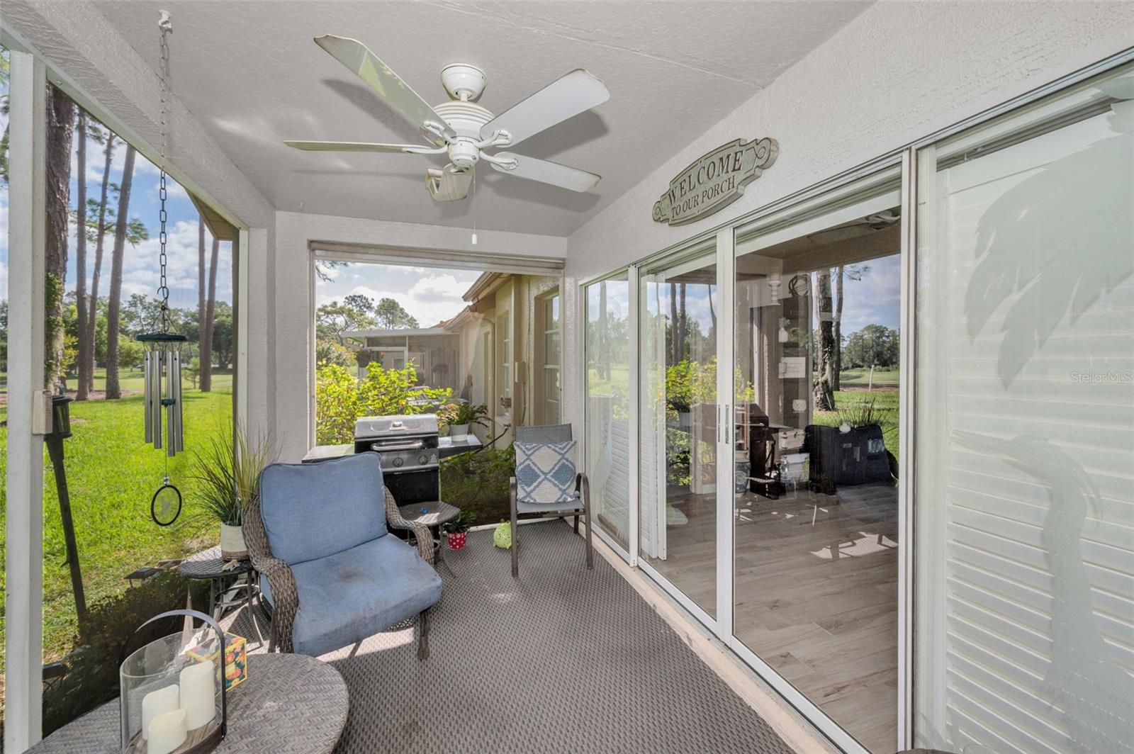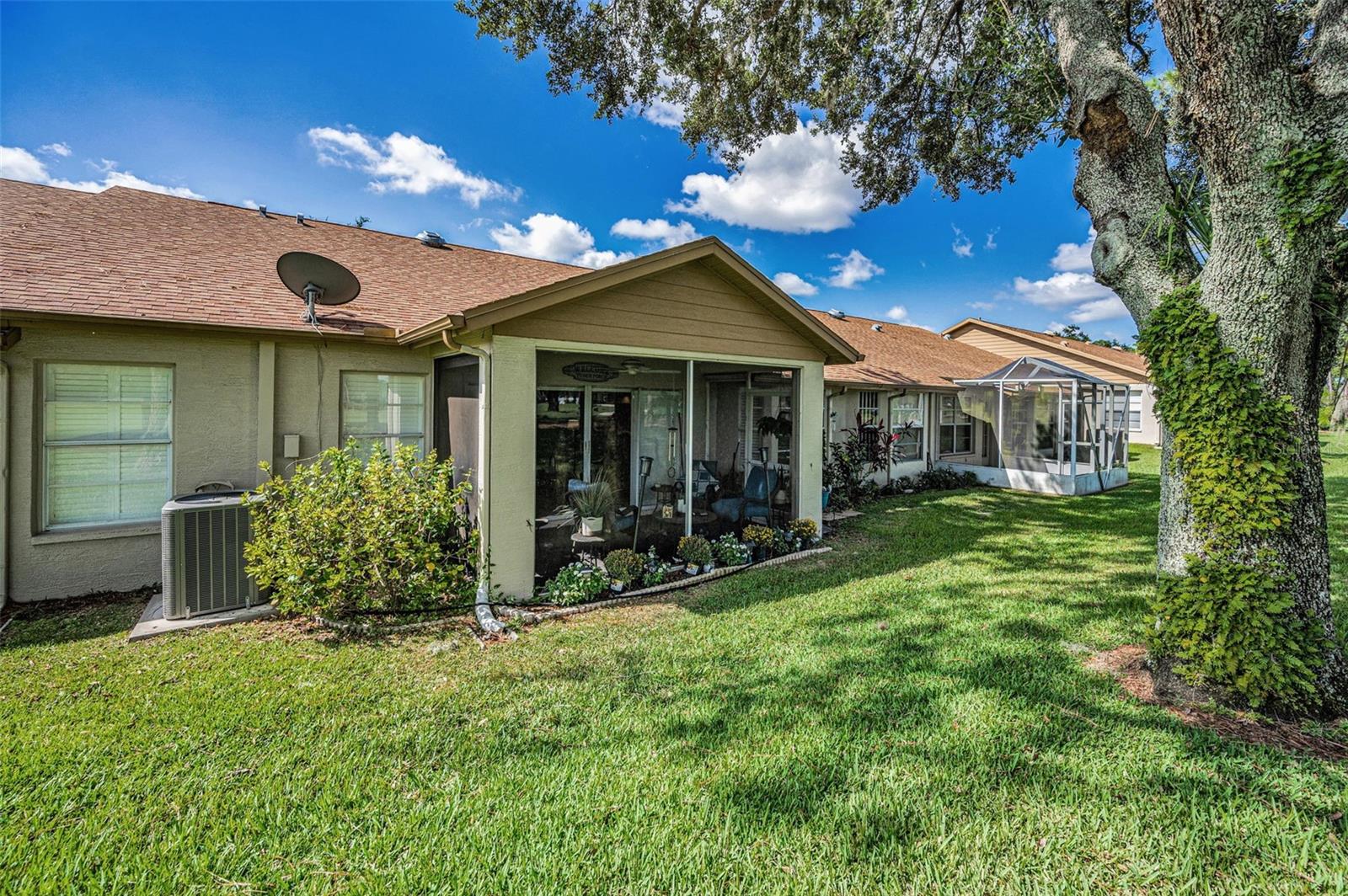 IN TIMBER GREENS ON THE GOLF COURSE OVERLOOKING THE 11TH FAIRWAY. This 2-bedroom 2 bath 2 car garage Villa, has updated flooring flowing through-out home. Kitchen with granite and wood cabinets. Plantation shutters and ceiling fans. The A/C unit is 2022. The Primary bedroom with Walkin closets and primary bath with Dual sinks. Sliding doors leading to the Screened Enclosed Lanai overlooking the Golf course. Inside Laundry room with washer and dryer. Timber Greens offers an exceptional lifestyle with lots of amenities including an 18-hole par 71 golf course, clubhouse, pro shop, community pool and spa, pickleball and tennis courts, bocce, shuffleboard, art and crafts activities, and the popular 19th hole bar and grill. Enjoy the vibrant community atmosphere while being just minutes away from all the essentials. Conveniently located, you’ll find shopping, dining, and nature parks close at hand. This home is perfect for those looking to embrace a friendly community with endless recreational opportunities. Don’t miss out on this opportunity—come see your new home today! Schedule a viewing and explore the wonderful lifestyle that awaits you. This home comes mostly furnished with the exception of a few items.